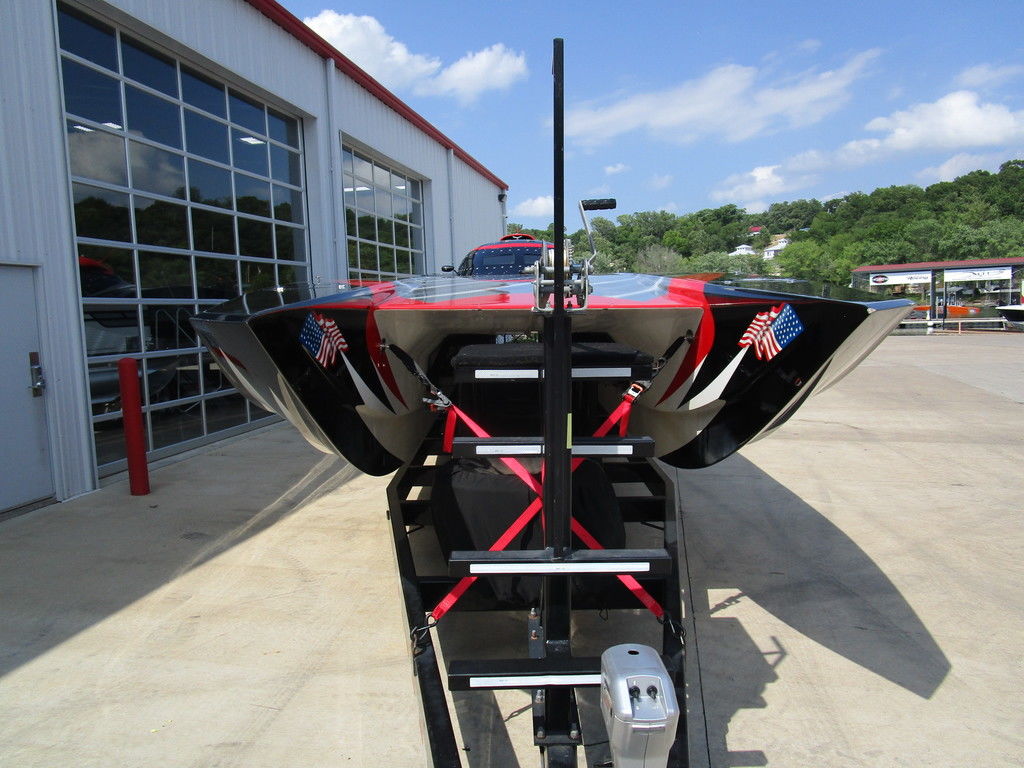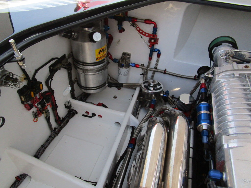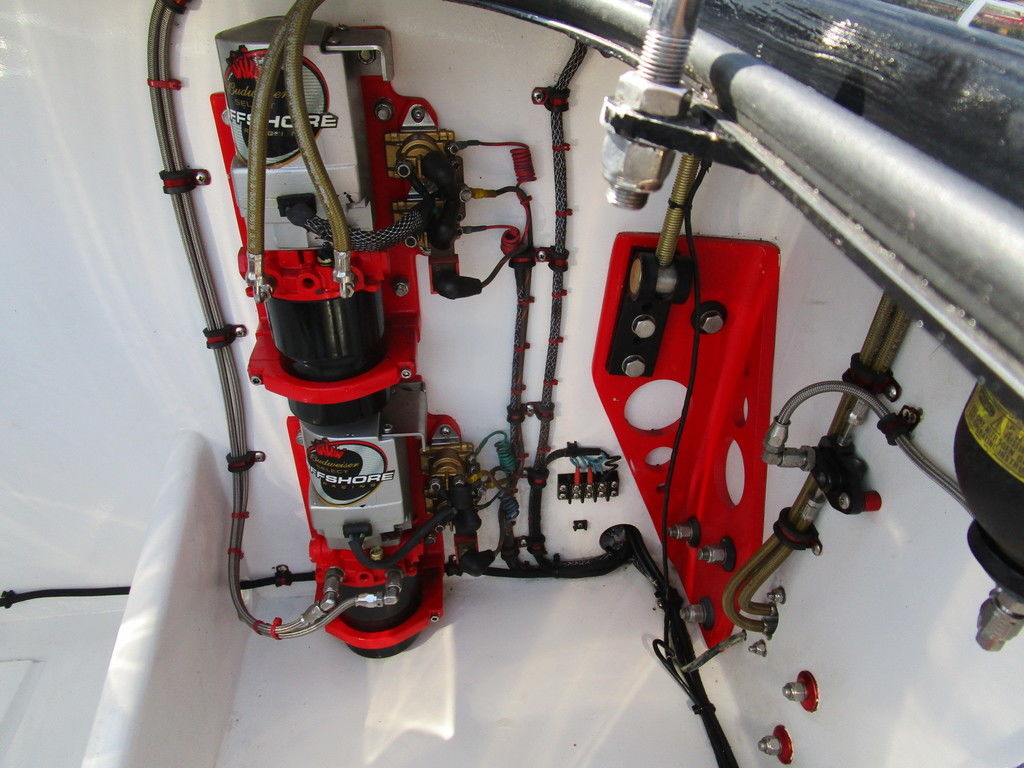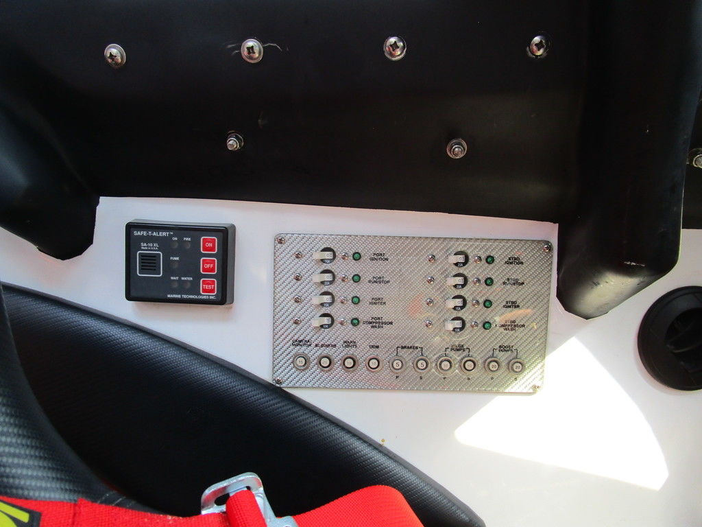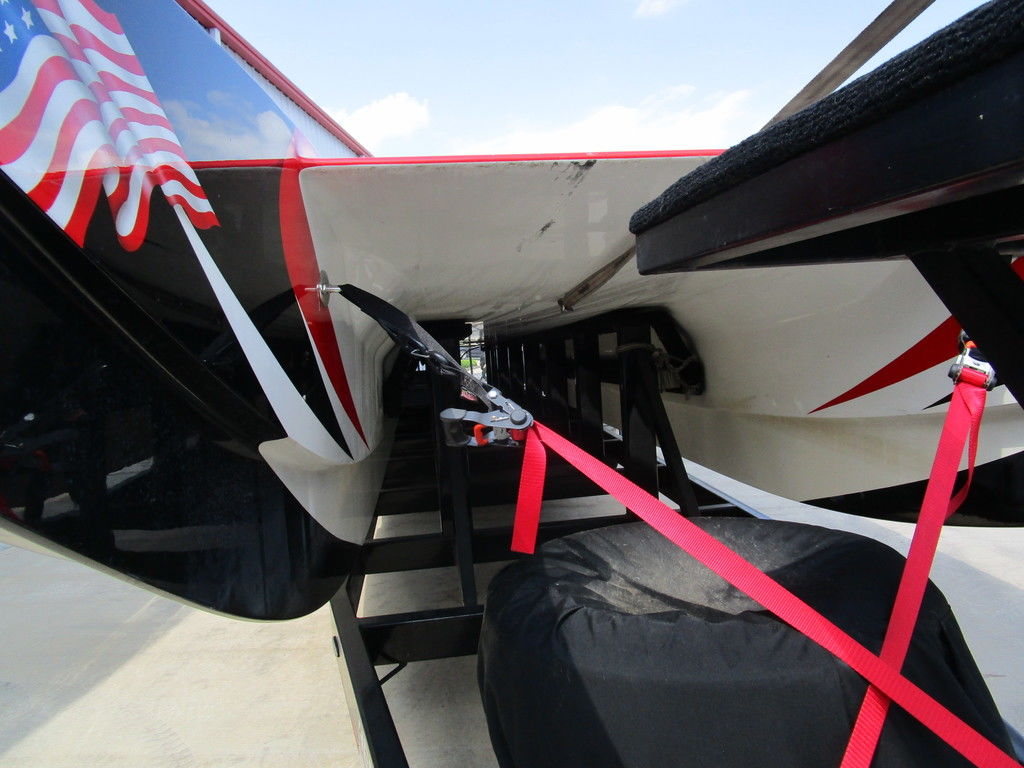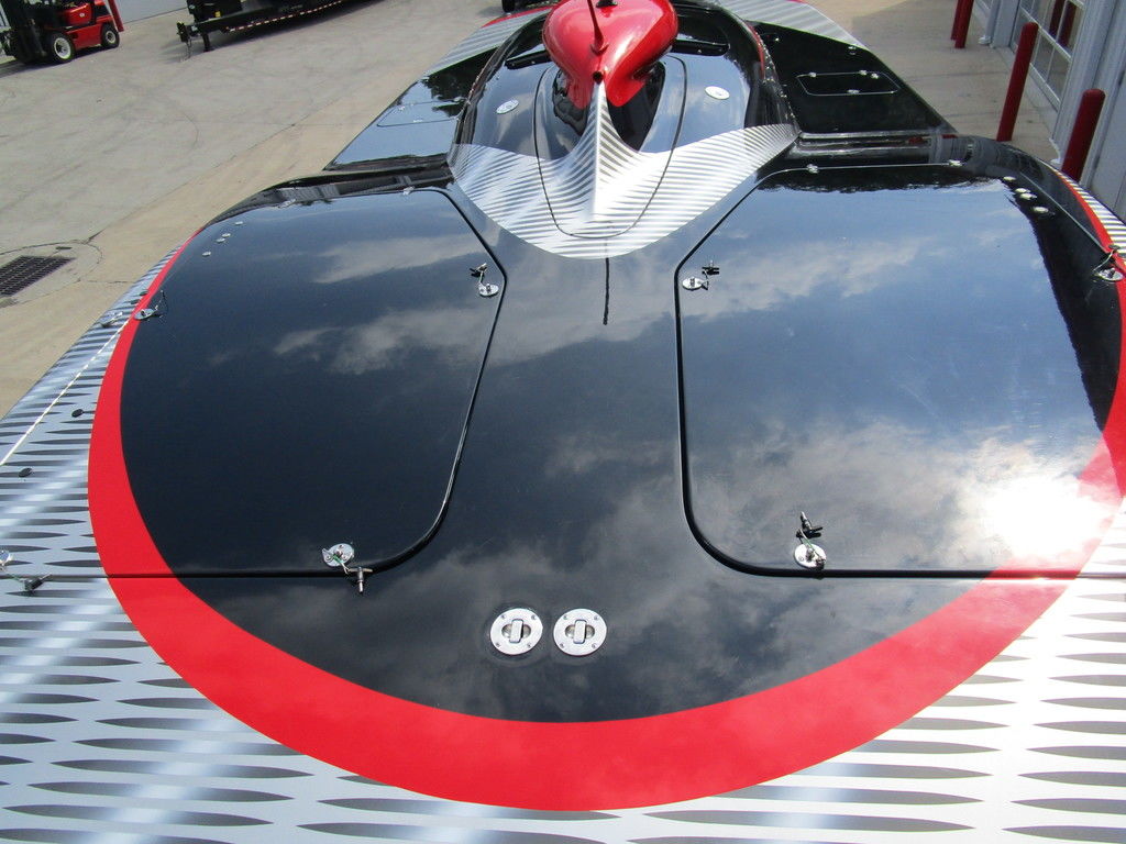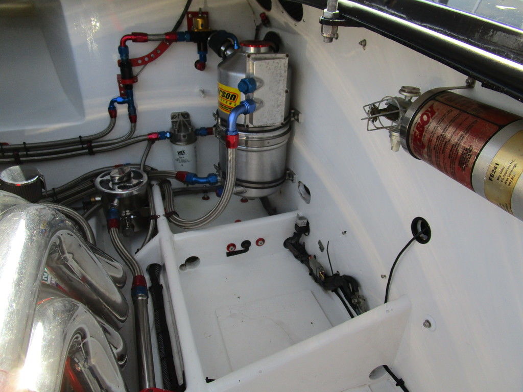 2007 MTI 44 Bud Select race boat converted to pleasure powered by twin Sterling 1200s, shaft drives with rudder, Mercury CNC props 5 blade props, tunnel tab, Racepak gauges, Raymarine GPS/Chartplotter, Livorsi gauges, GPS speedometer, mechanical indicators for shafts and tunnel tab, intercom system with headsets, vhf radio, fume detector, halon system, escape hatch in floor, and Heritage flat trailer included.