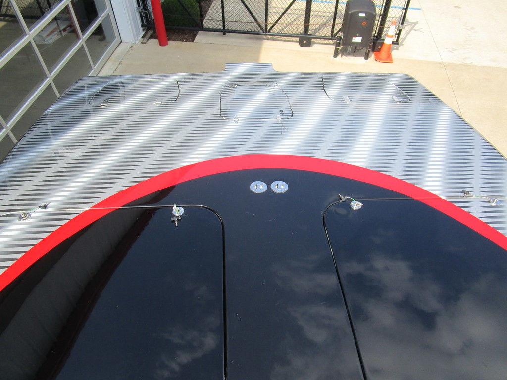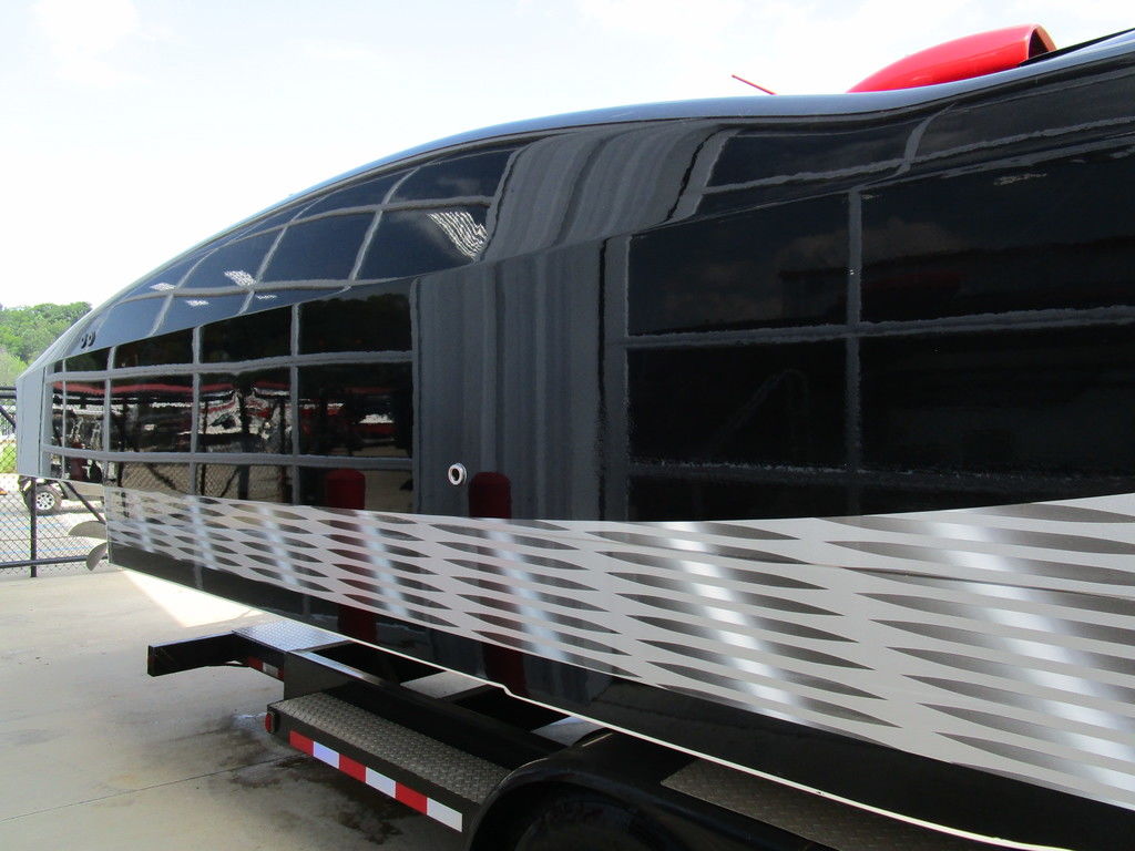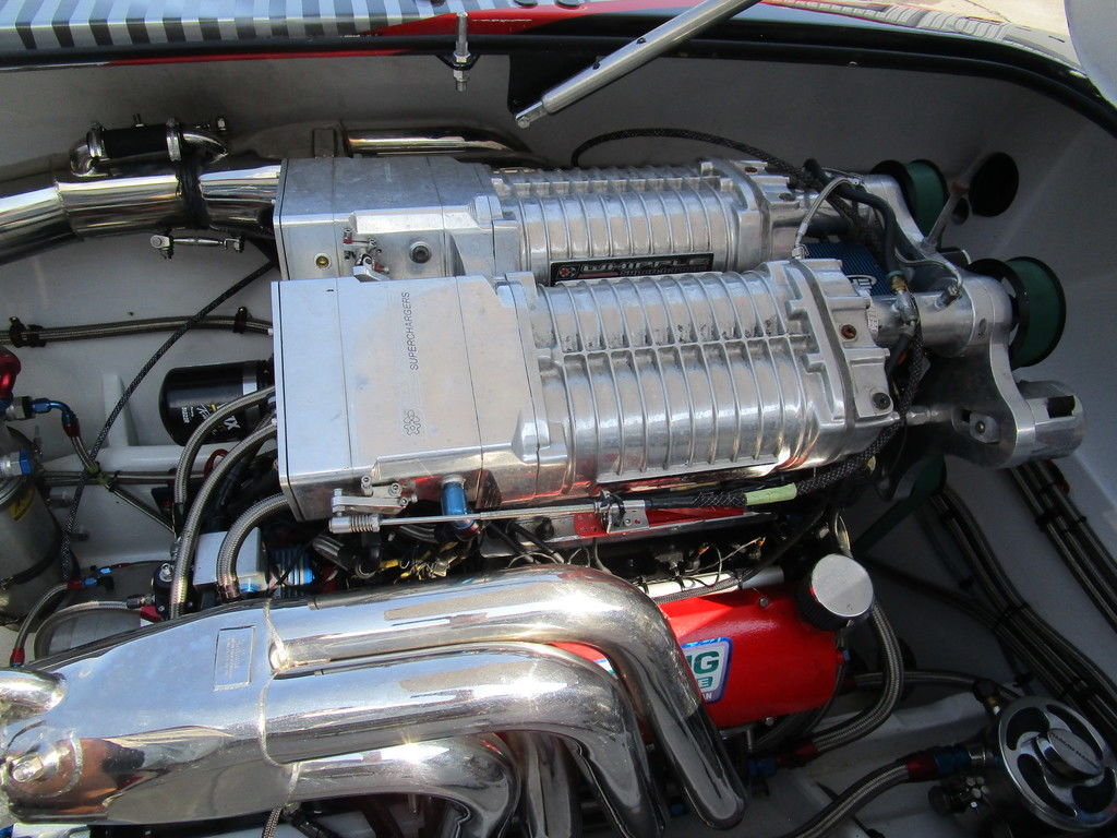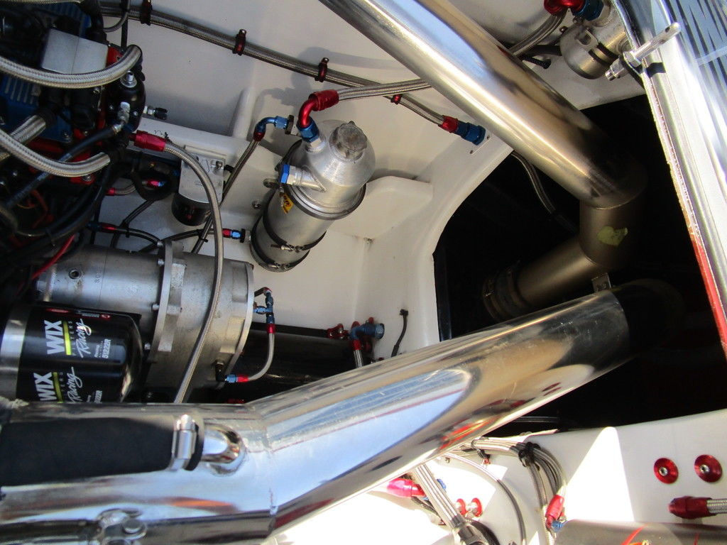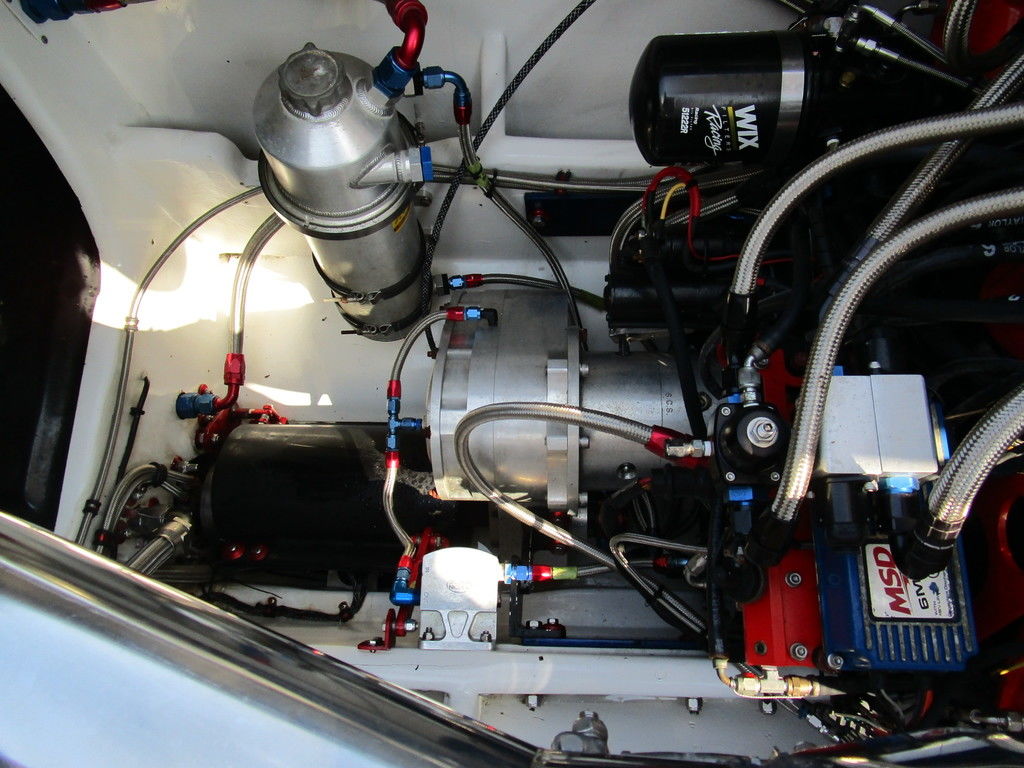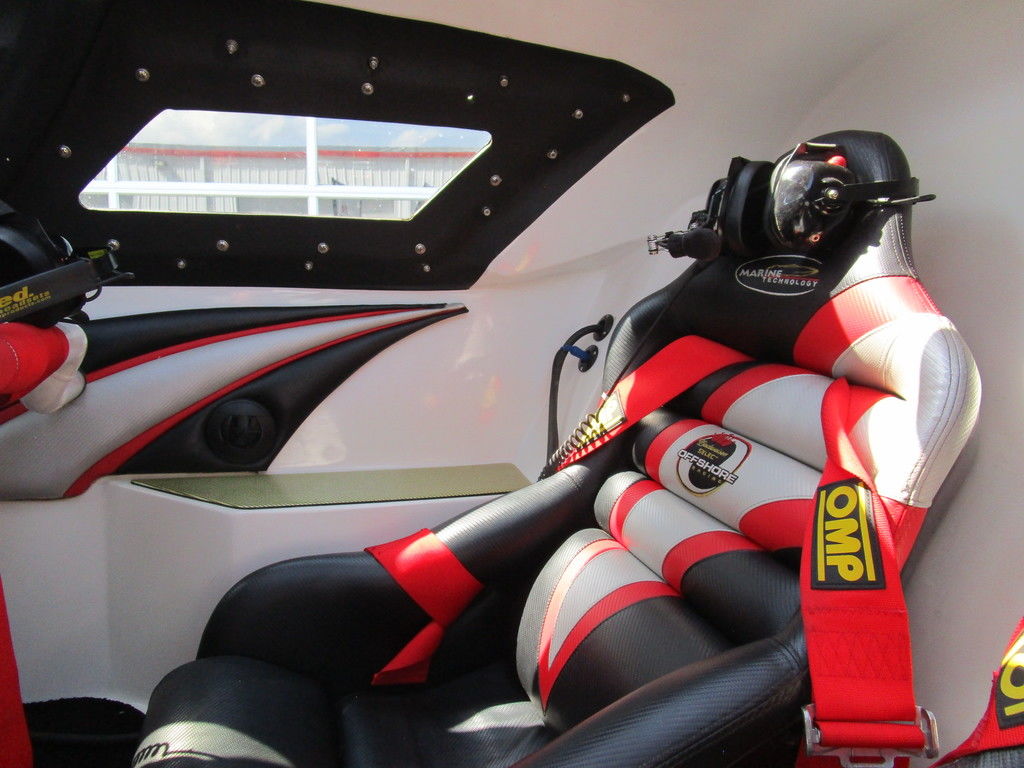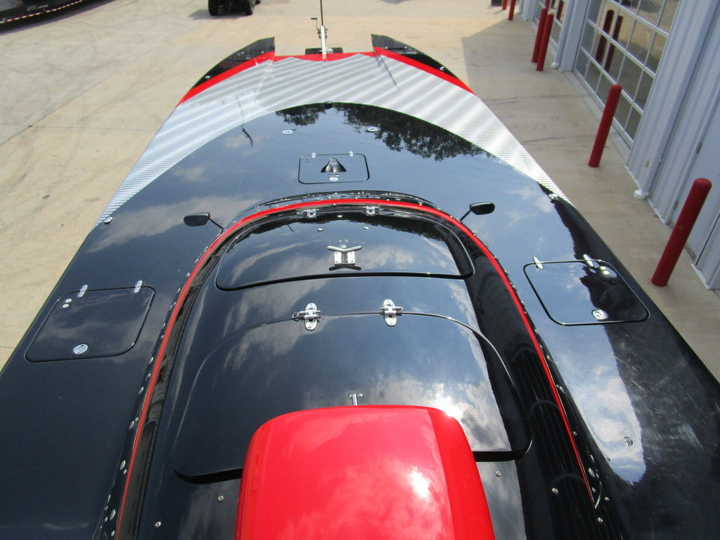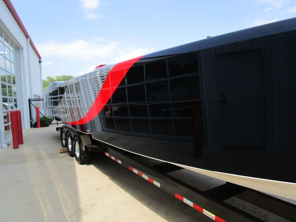 2007 MTI 44 Bud Select race boat converted to pleasure powered by twin Sterling 1200s, shaft drives with rudder, Mercury CNC props 5 blade props, tunnel tab, Racepak gauges, Raymarine GPS/Chartplotter, Livorsi gauges, GPS speedometer, mechanical indicators for shafts and tunnel tab, intercom system with headsets, vhf radio, fume detector, halon system, escape hatch in floor, and Heritage flat trailer included.