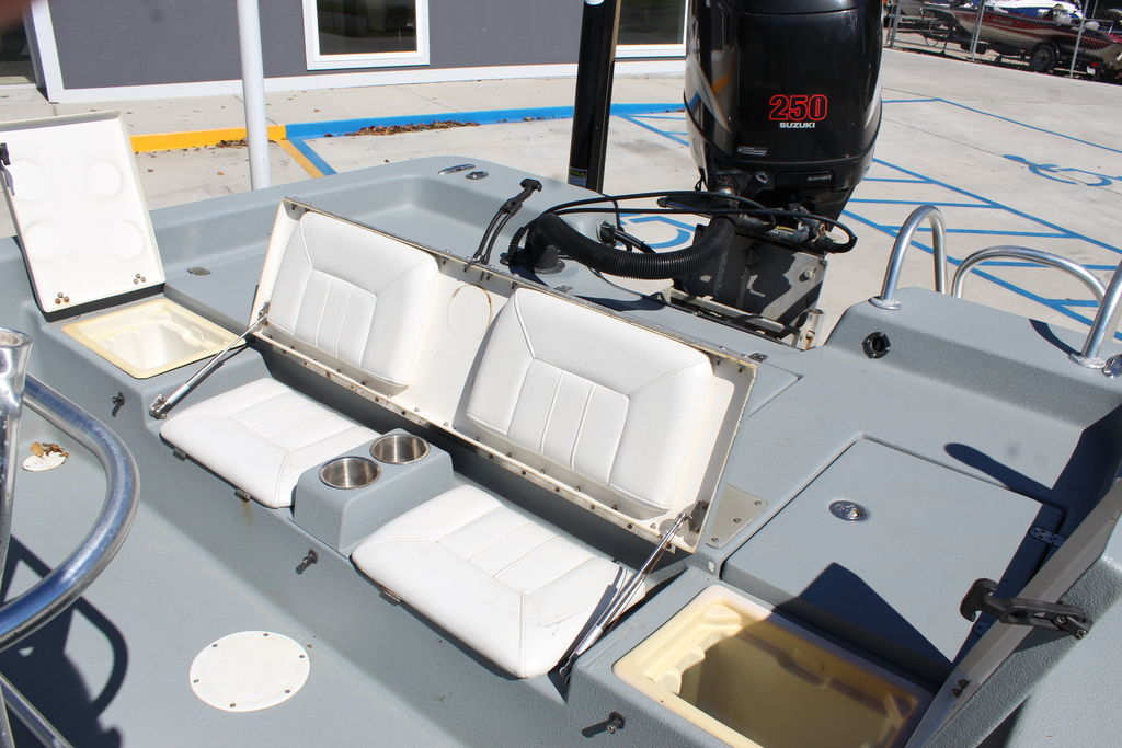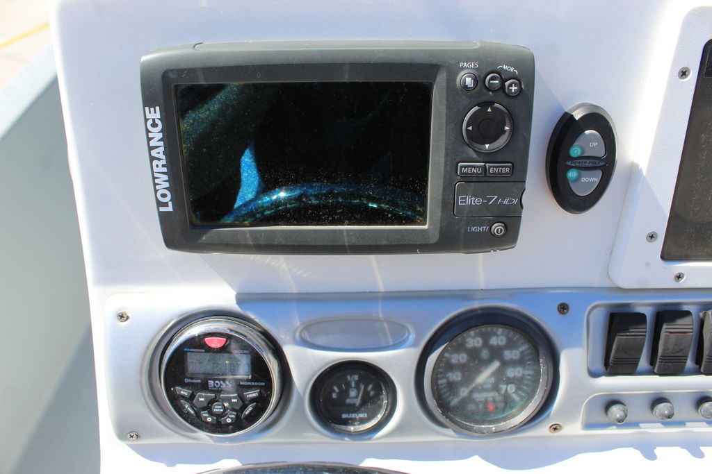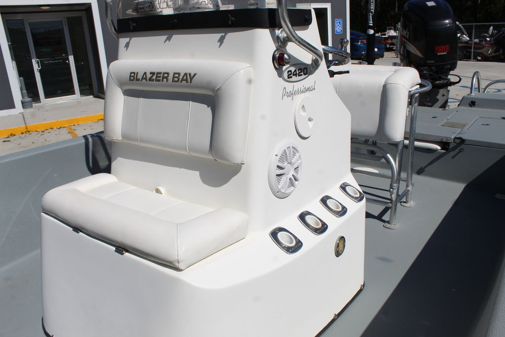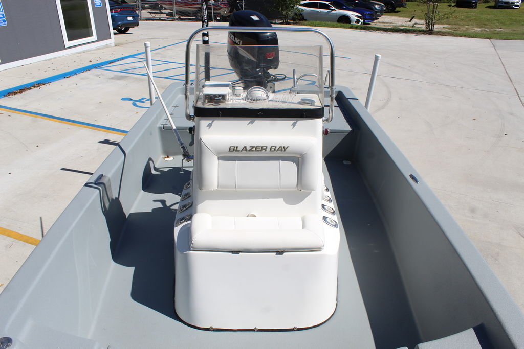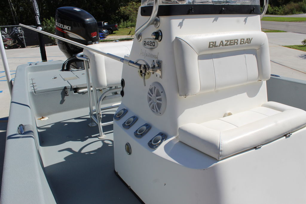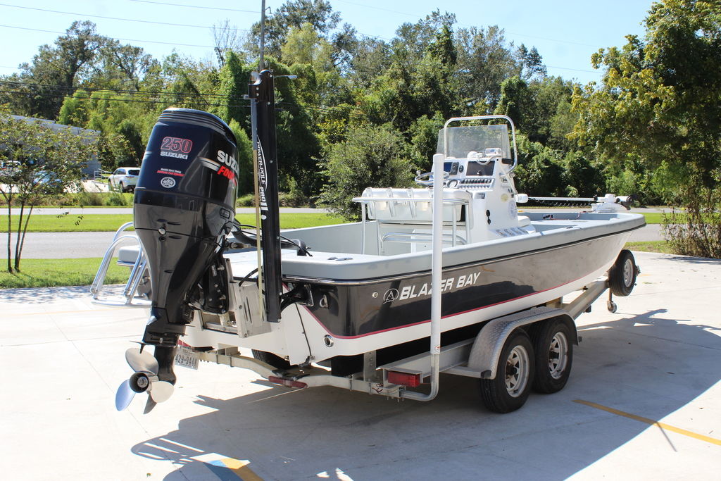 This 2008 Blazer Bay 2420 is in good condition and the motor runs strong. It is powered by a Suzuki DF250 with about 1200 hours. Comes equipped with an aluminum trailer. This 2420 has been tastefully rhino lined gray on the inside of the boat for added durability and easy cleanup. This boat features a unique design making fishability and comfort both possible. The upholstery has been recently replaced in throughout the entire boat and is in excellent condition. It comes loaded with options that will be listed below.