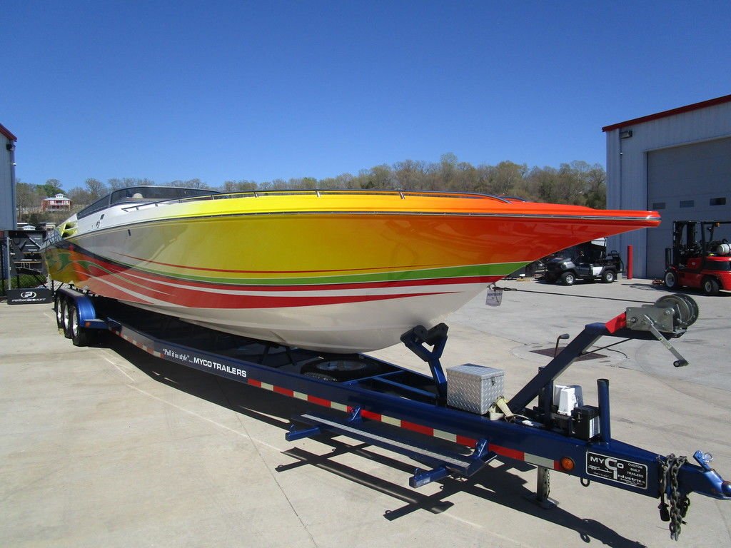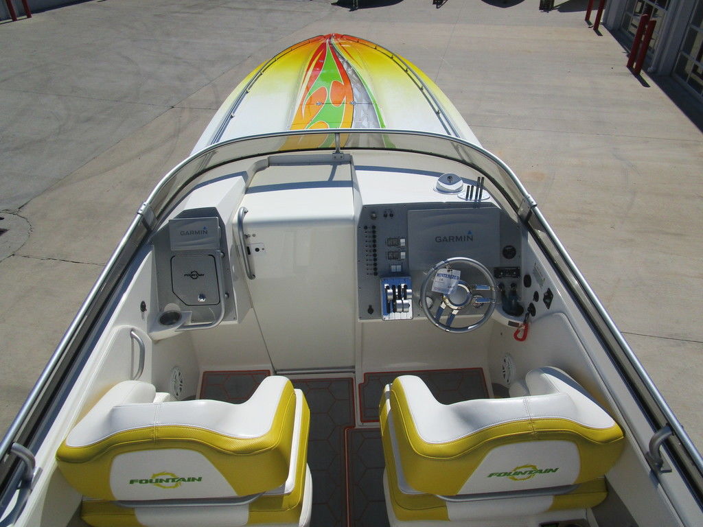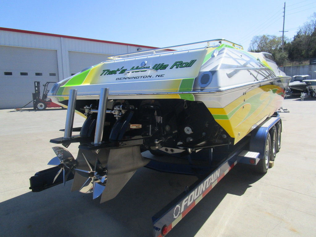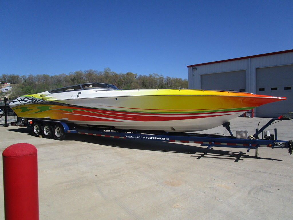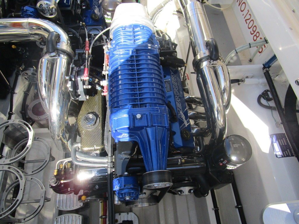 2008 Fountain 42 Lightning powered by twin HP700SCi with 113 hours on rebuilt motors from Precision Marine, 239 on boat. SSM# 6 dry sump drives, Hering 17x37.5 16° rake 6 blade props, upgraded two stage Hardin Marine stainless water pumps, upgraded intercooler stainless fitting and water flow kits, Whipple polished stainless air cleaners, upgraded stainless exhaust. NXT transmissions, rebuilt by BAM Marine- March 2017, upgraded output shafts and gears installed, April 2016 -$25k Mitcher T custom Paint job, 380 Kplanes, underwater lighting, New Garmin 7616 & 7607, Livorsi billet controls with all new cables, Tiger Performance 4 man intercom system, Bow thruster, heads up mechanical indicators, VHF radio, upgraded Fusion/JL Audio stereo, New Sea Deck flooring, new cockpit/sunpad vinyl, new Isotta steering wheel, new 3 bank battery charger, billet battery boxes, electric bolsters, Vacuflush head, and 2005 Myco custom triple axle trailer/drive guard with electric over hydraulic brakes, dual scooter racks, painted Mercury Racing Blue. New tires and bunk carpet included. Financing and transportation available.