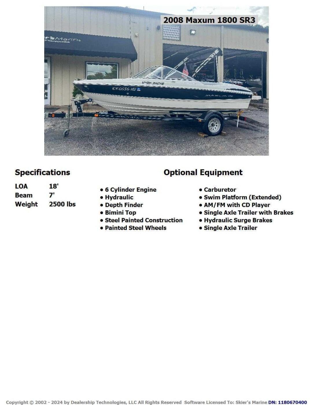 2008 Maxum 1800 SR3 (Used) #U06518BT