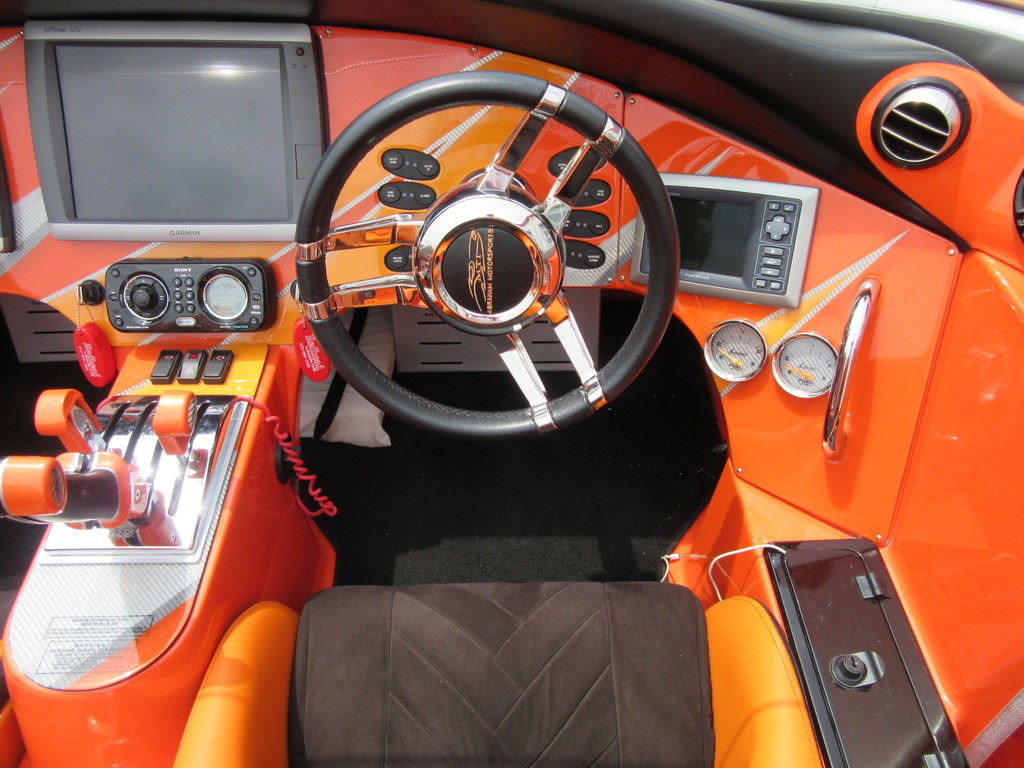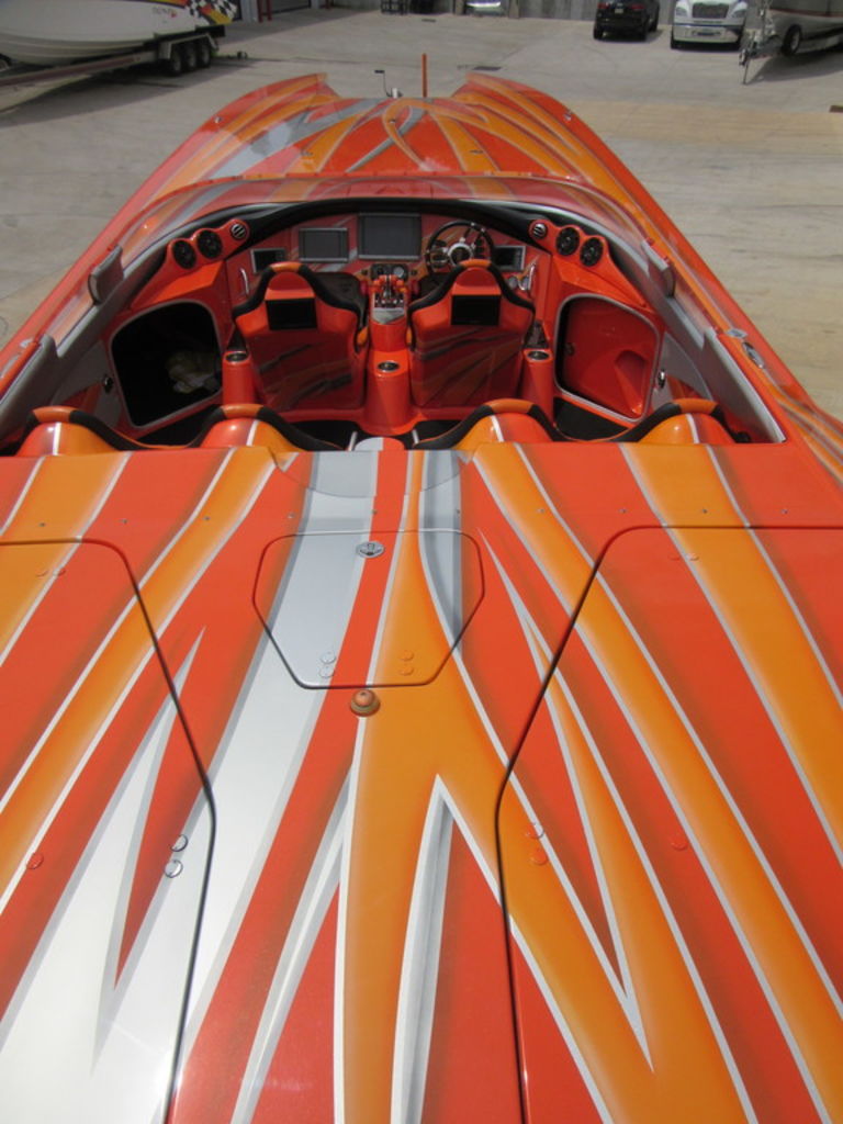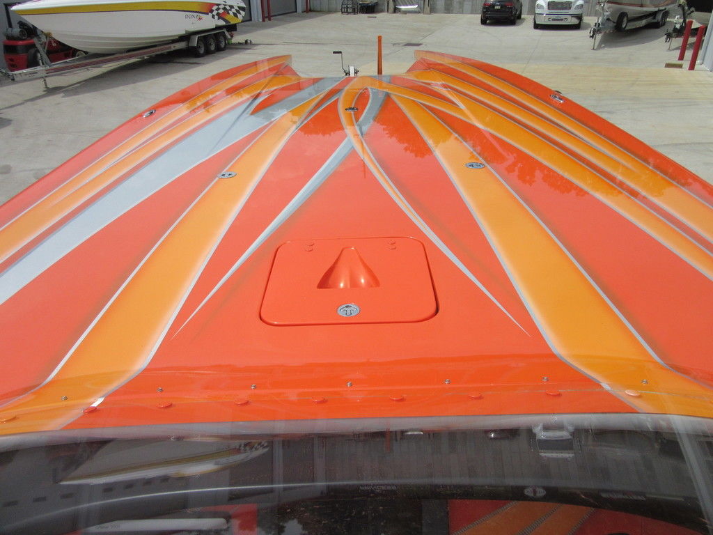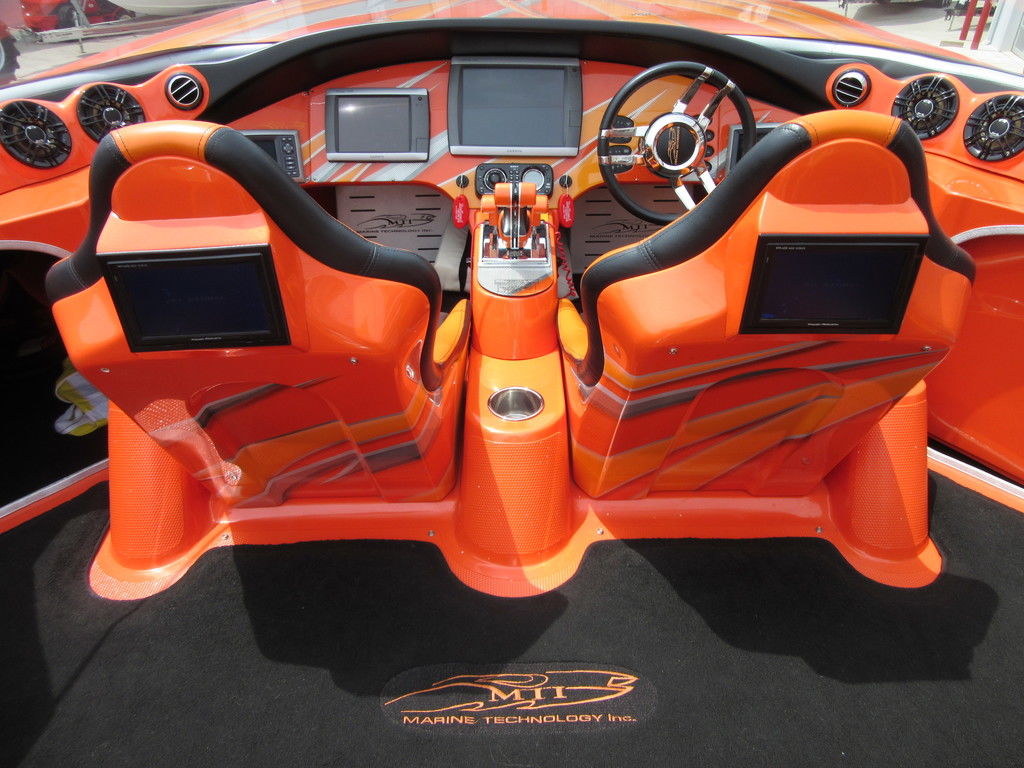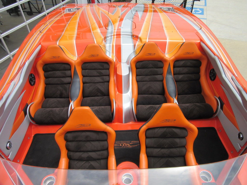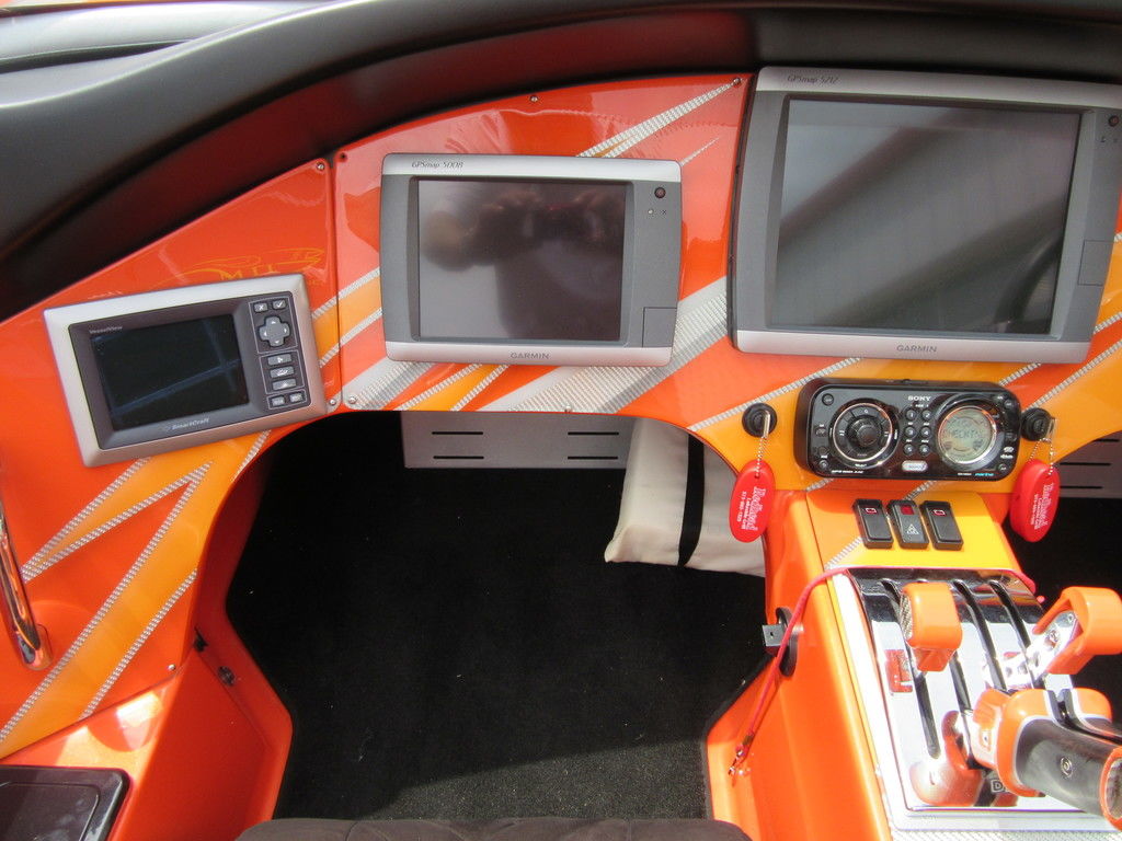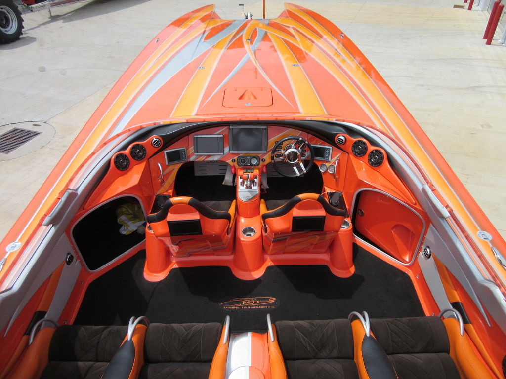 2008 MTI 42 powered by twin Mercury Racing QC4V1100 twin turbo with 152 hours, SSM#6 sterndrives with Mercury CNC 17x38 5 blade props, (2) Smartcraft Vesselview, Garmin GPSmap 5212 touchscreen, Garmin GPSmap 5008 touchscreen, Sony AM/FM/MP3 player, custom MTI throttle/shifters, video monitors in seatbacks, halon fire suppression system, LED bilge lighting, custom MTI padded cockpit carpet, cockpit cover, and Heritage triple axle trailer with toolbox. Financing and transportation available.