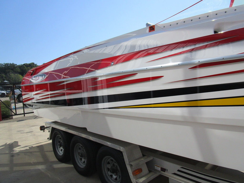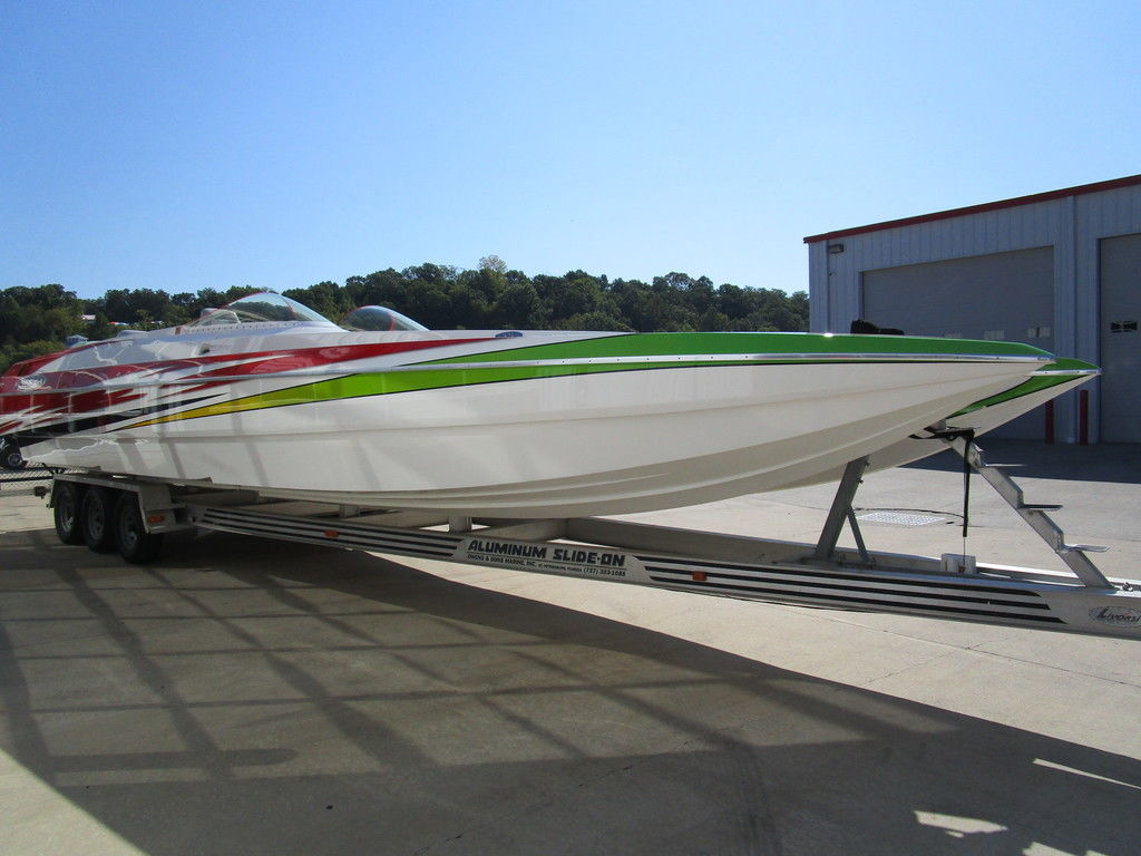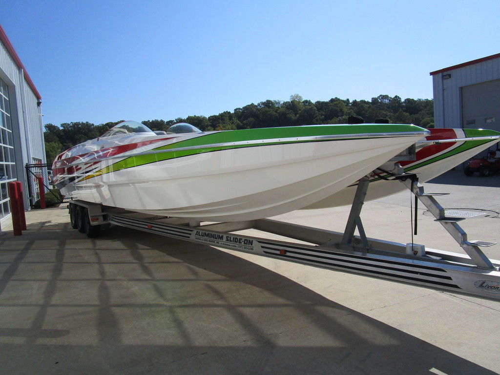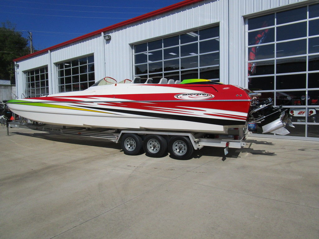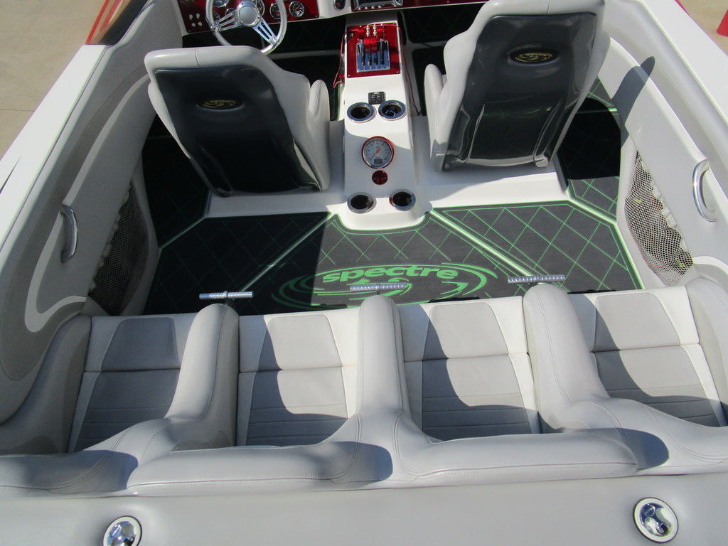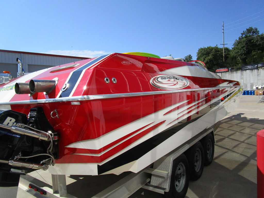 2008 Spectre 36 powered by twin Ilmor MV10-625s with 281 hours, Bmax drives, 5 blade props, hydraulic steering, underwater lights, Livorsi gauges, Livorsi digital speedometer, Garmin GPS, heads up mechanical indicators for drives, Sea Deck flooring, speedometer on rear of console, cockpit cover, and Aluminum slide on trailer included. Financing and transportation available.