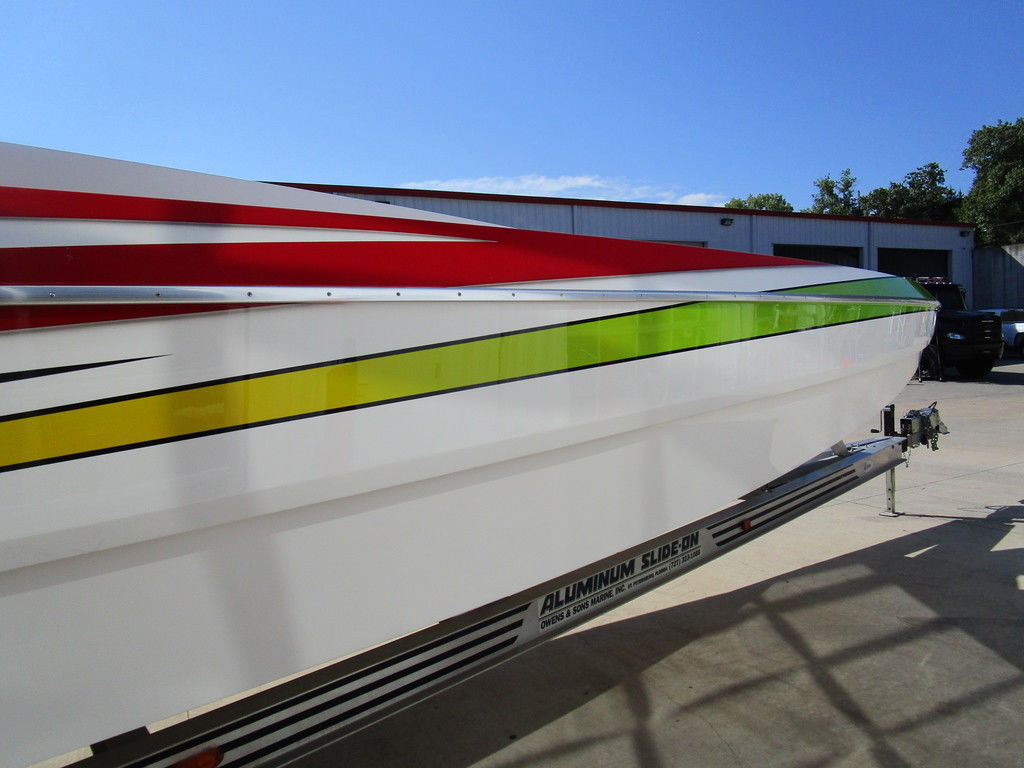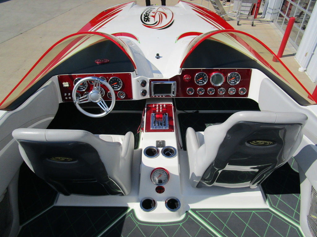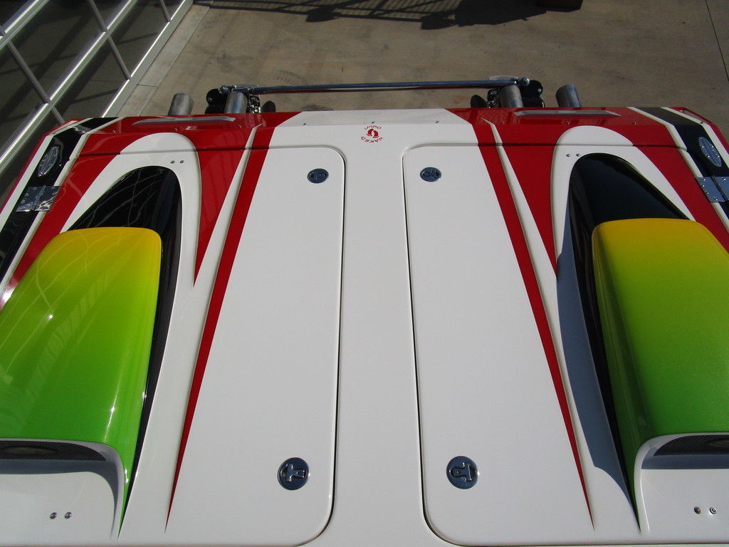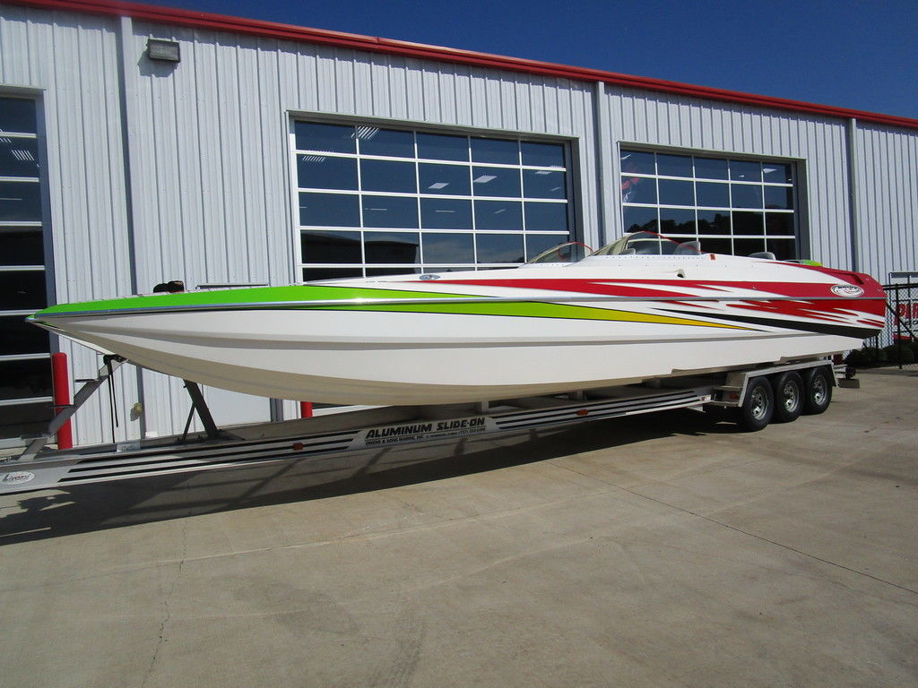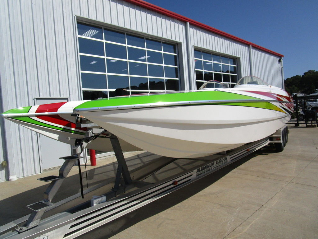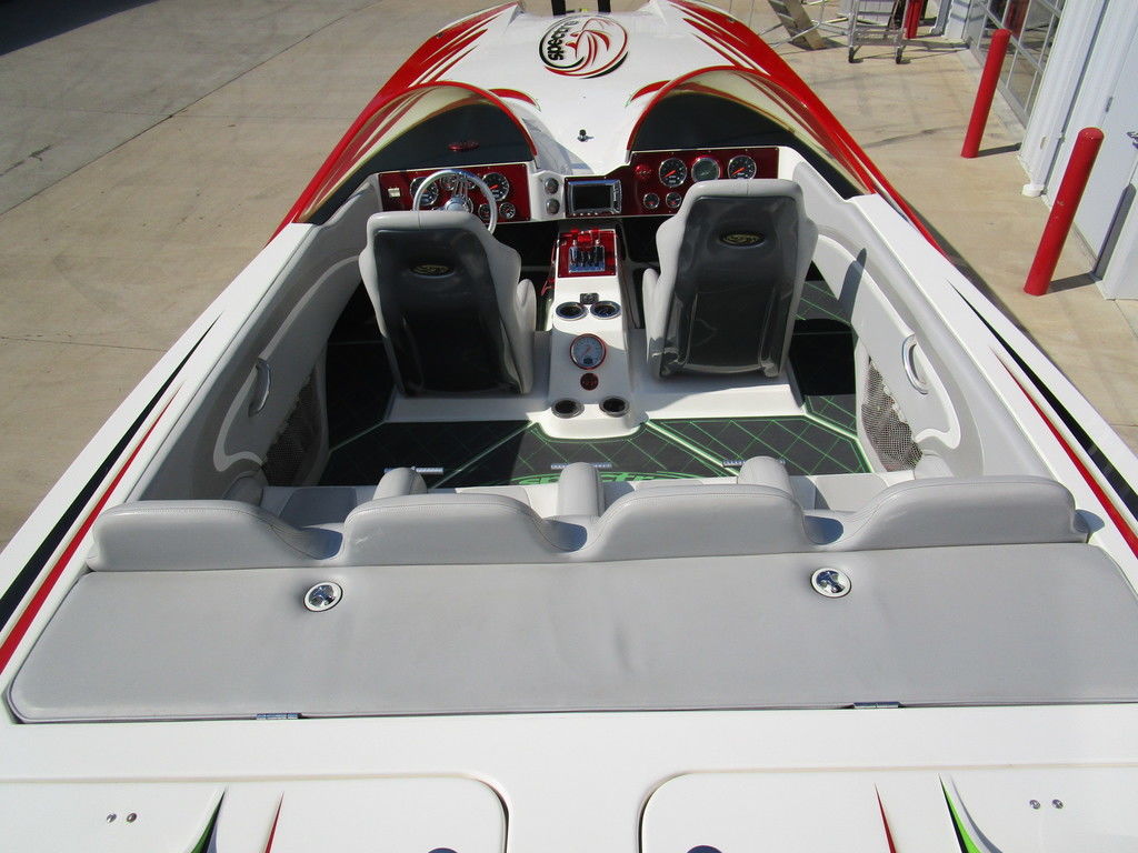 2008 Spectre 36 powered by twin Ilmor MV10-625s with 281 hours, Bmax drives, 5 blade props, hydraulic steering, underwater lights, Livorsi gauges, Livorsi digital speedometer, Garmin GPS, heads up mechanical indicators for drives, Sea Deck flooring, speedometer on rear of console, cockpit cover, and Aluminum slide on trailer included. Financing and transportation available.