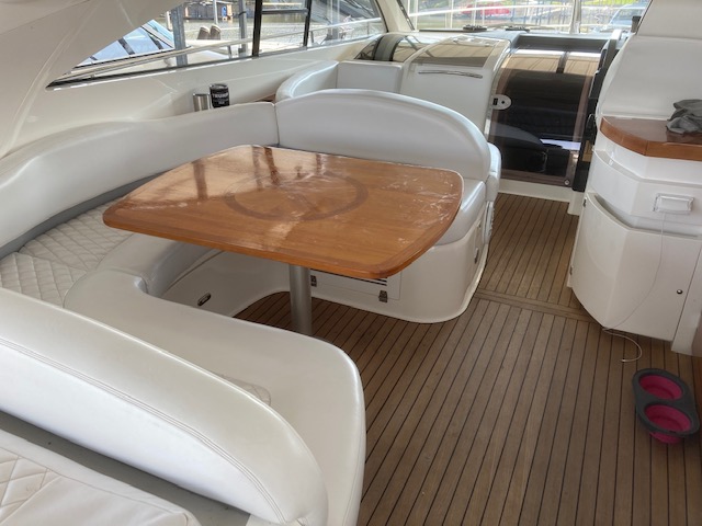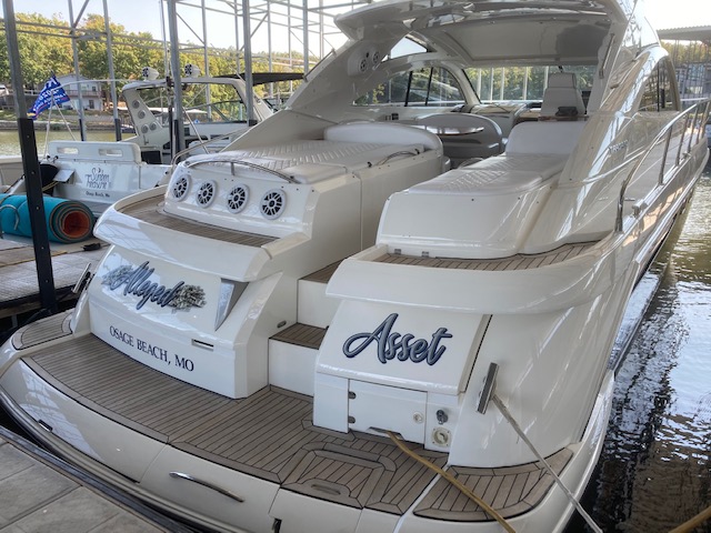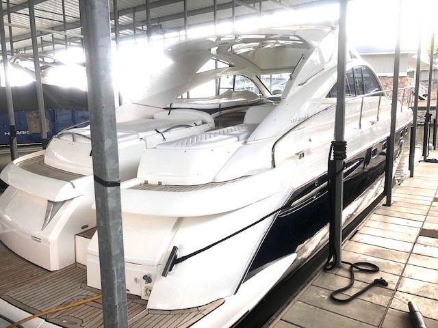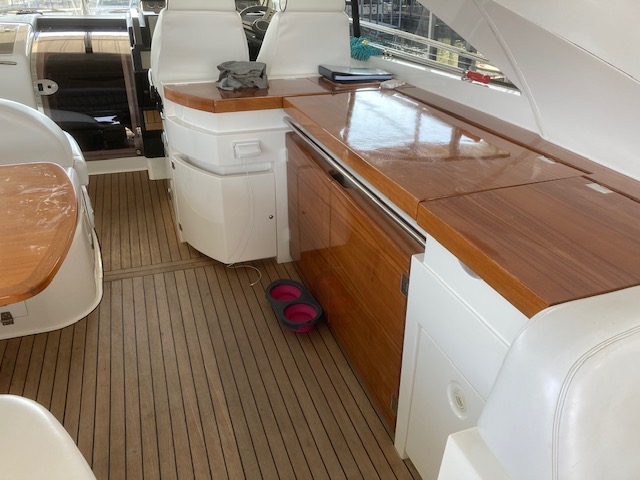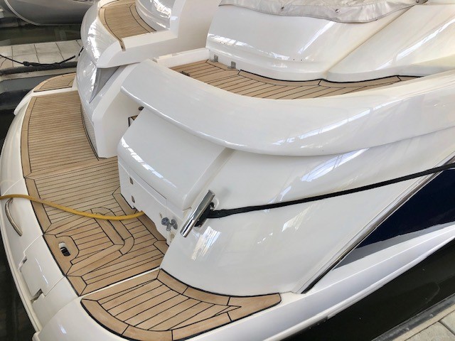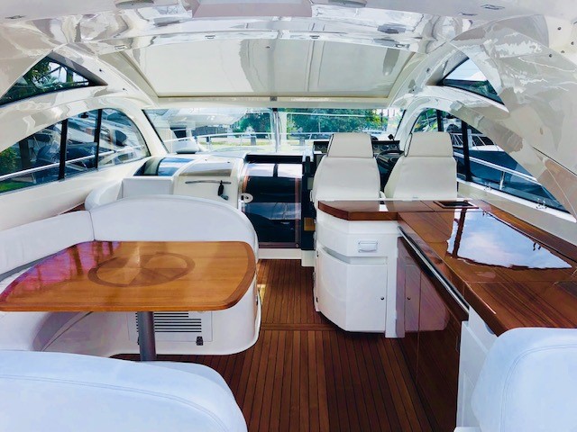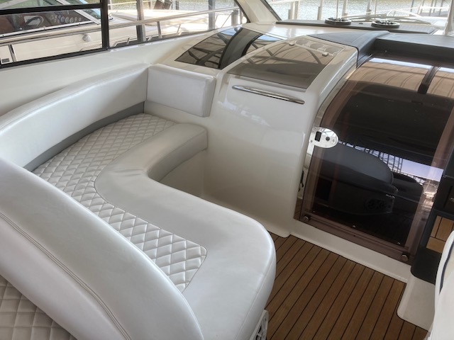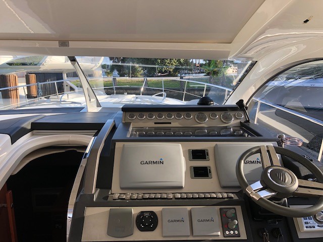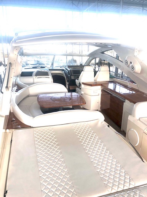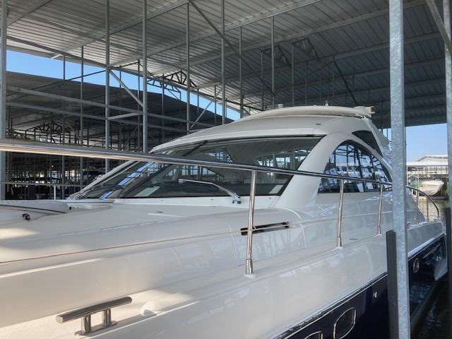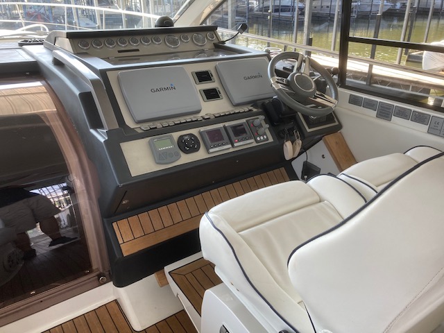 GORGEOUS 2009 Fairline 52 Targa with twin Volvo 800s with 650 hours offered for sale. Reach speeds up to 45MPH. 3 Bedrooms and 2 baths and new sound system by Waves and Wheels Audio. Has garage for waverunner or dinghy and lots of built in cooler space, Hard top is fully retractable.