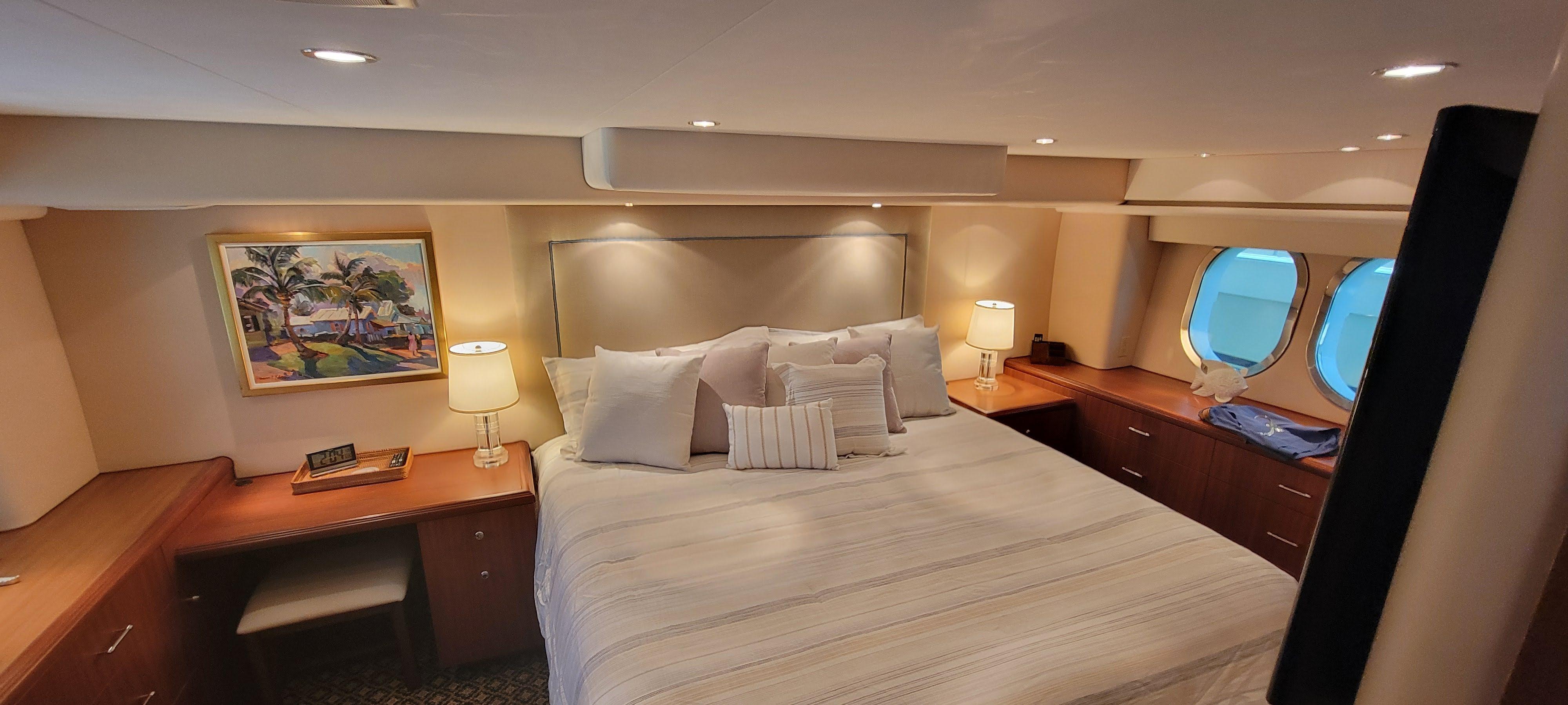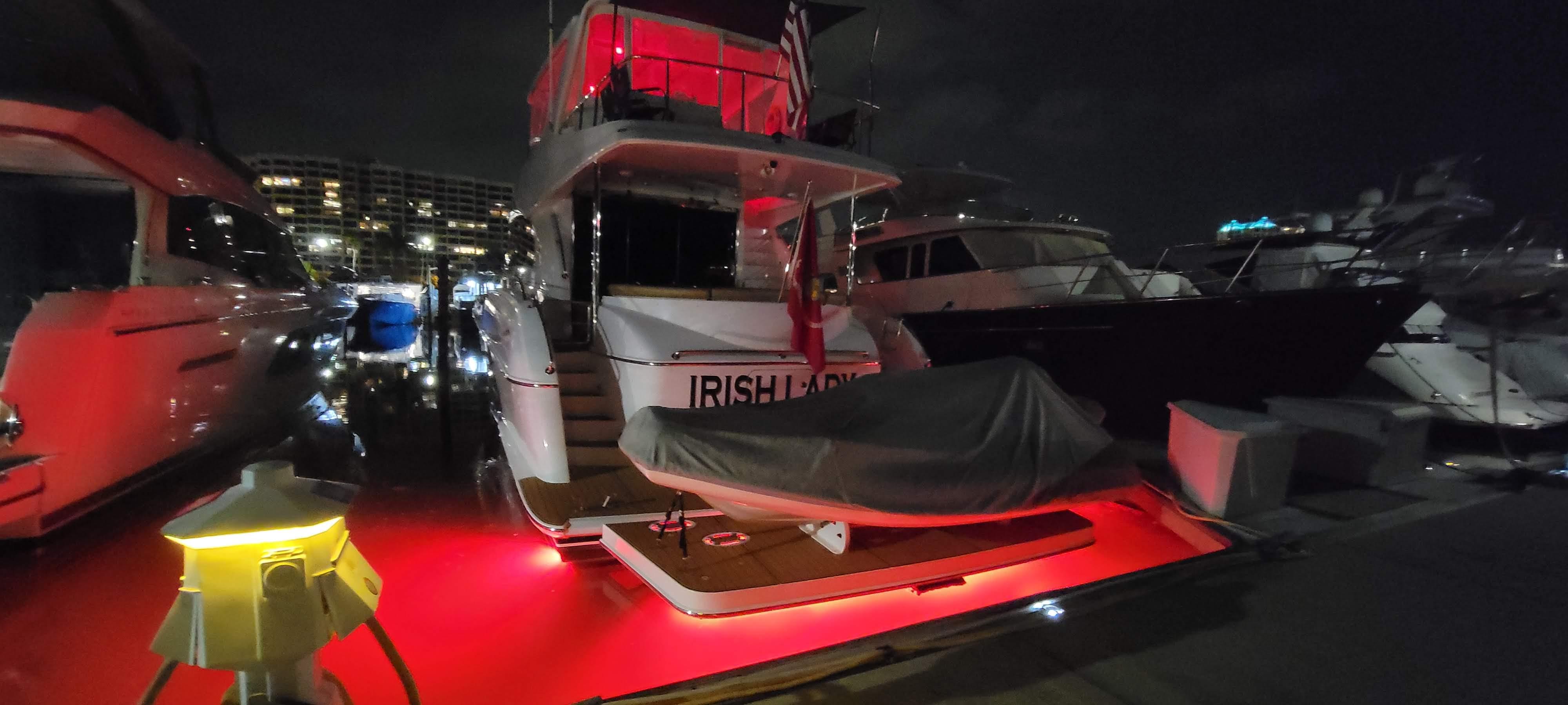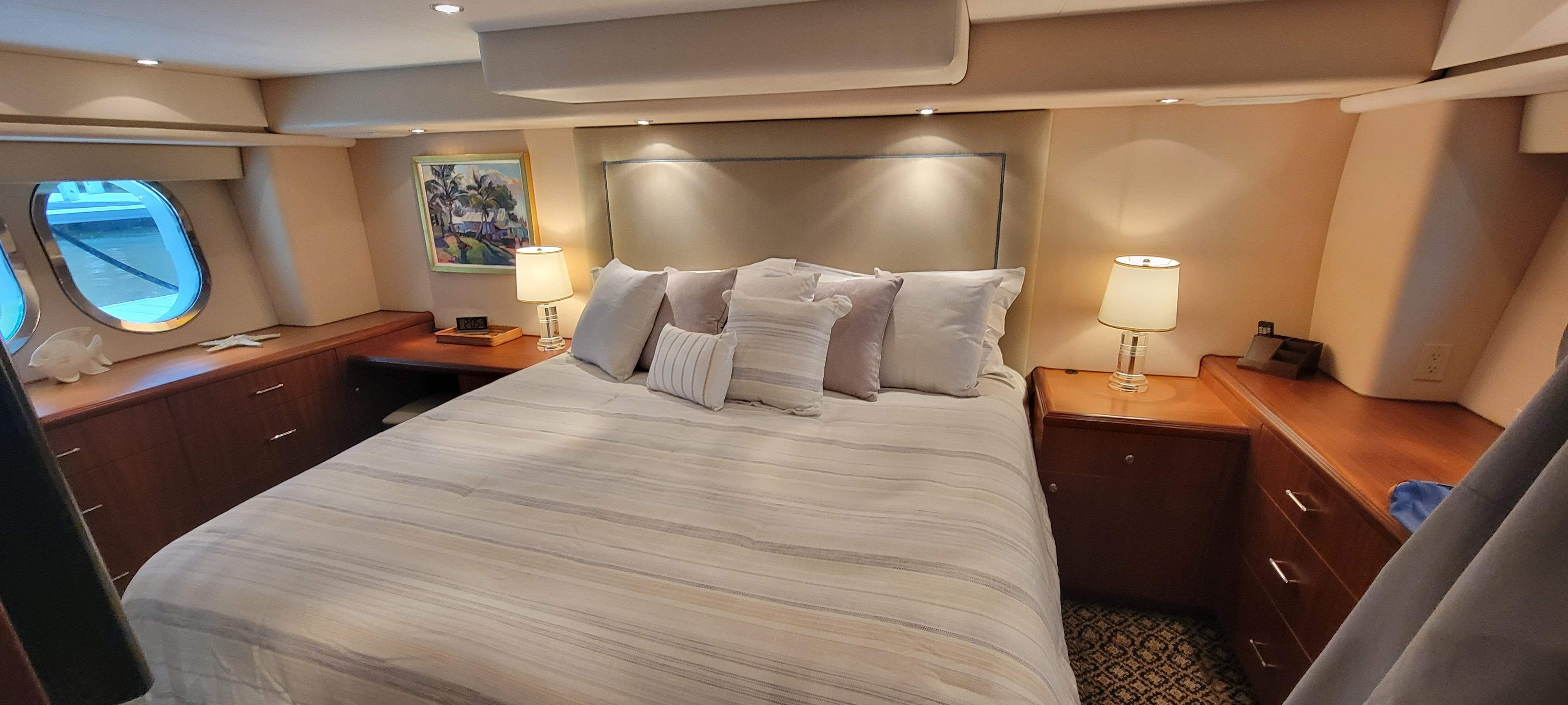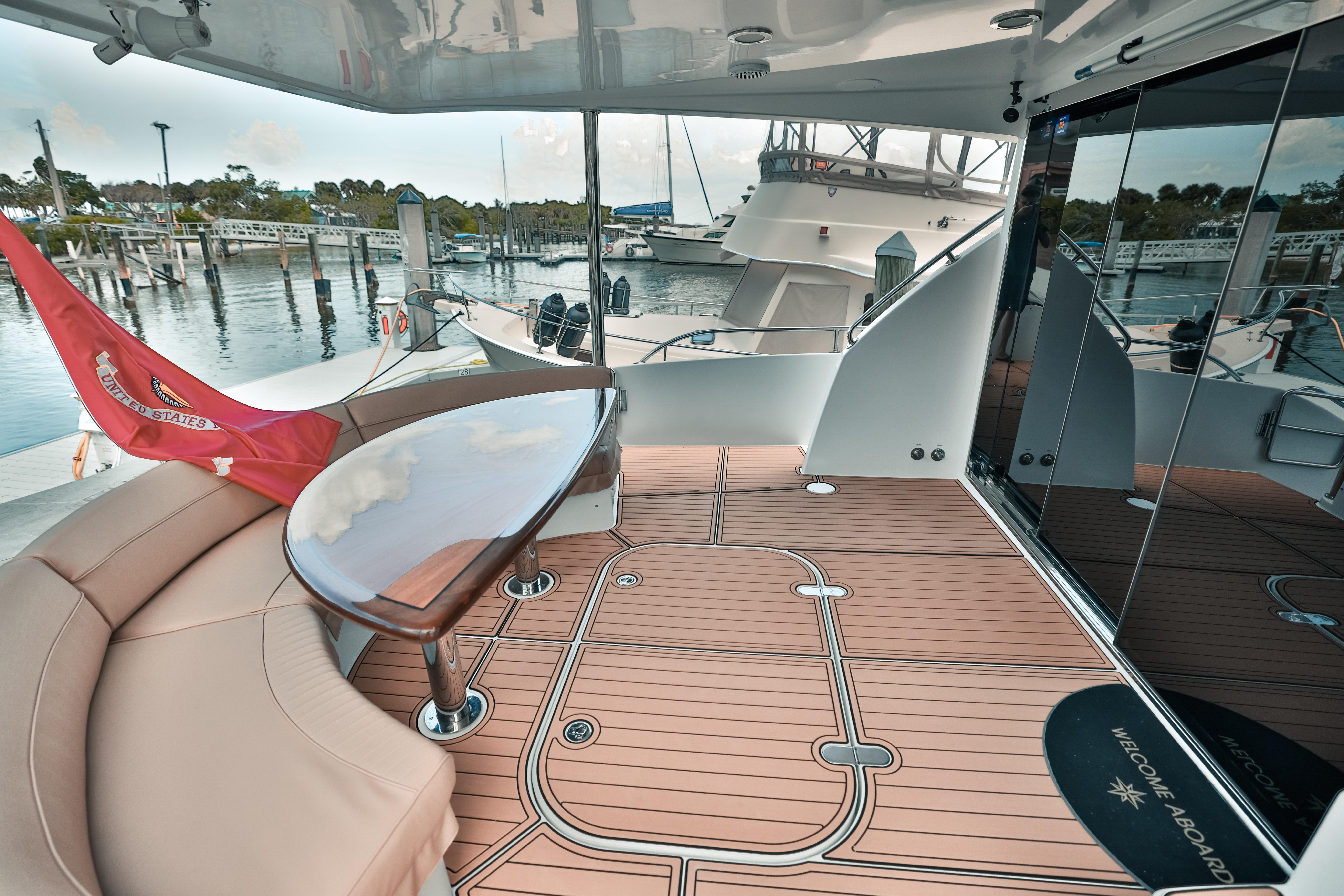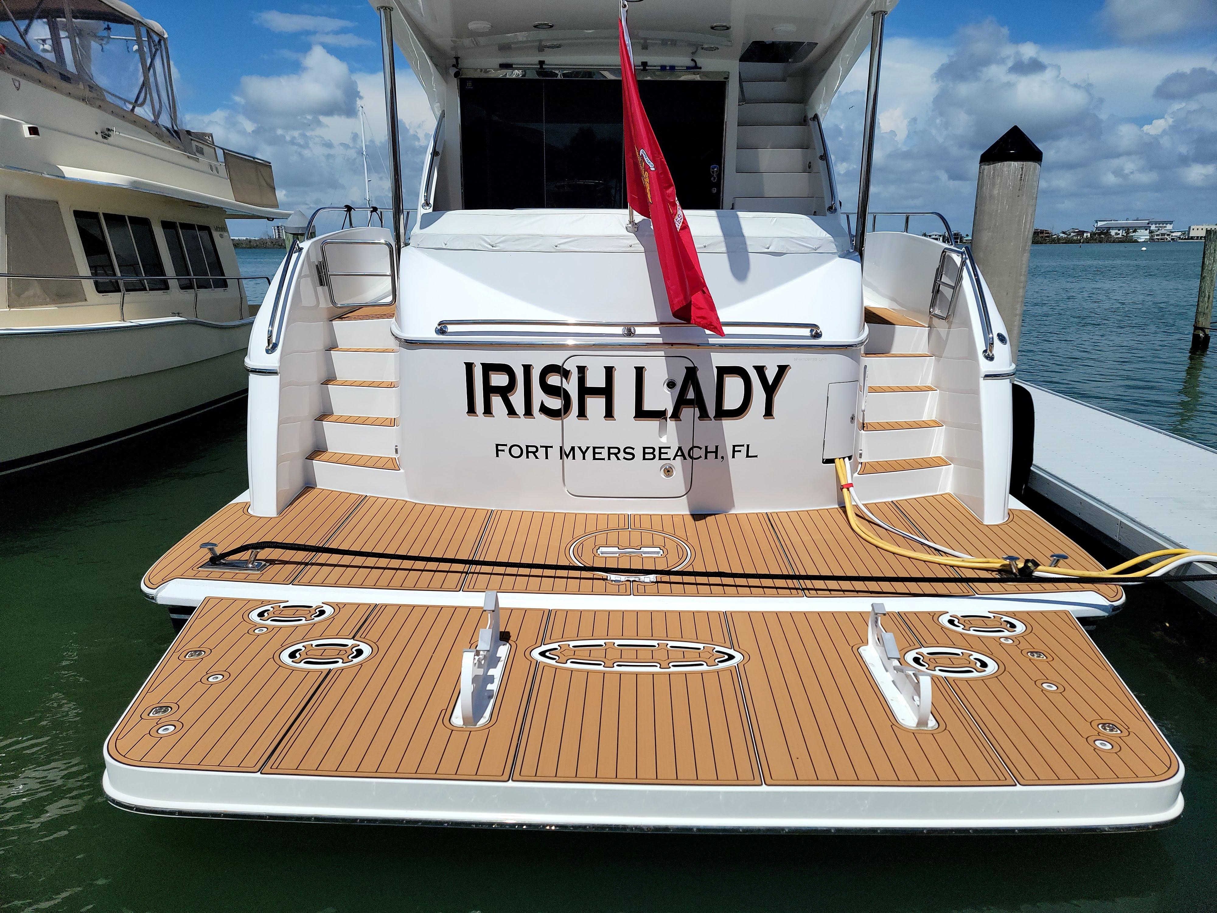 This is the best priced 60 Hatteras in the country. Located in Naples, Florida - this beautiful yacht has been meticulously maintained and updated by experienced owners. The owner holds a USCG 100 ton Masters License and is a former US Marine. After going through the boat the attention to detail and level of upkeep is instantly apparent. From the flybridge hardtop down to the lowest bilge areas she is white glove ready. She offers three staterooms and two heads, plenty of storage. If you have a large family, there is plenty of room. The current owners regularly have held gatherings from 10 up to 35. There is seating for 26 in the main seating areas not including the rear flybridge deck. Her safe dry solid ride allows for easy movement throughout the vessel. Over 18 feet of beam and nearly 65 feet of length, the Irish Lady provides exceptional space for long range travel and a high quality for living aboard. The vessel's maneuverability is efficient for her size with both bow and stern thrusters and the remote Dockmate system that allows for docking anywhere on the boat. Safety is provided with a fiberglass tender, there is a McMurdo Smartfind AIS EPIRB and a six person automatic life raft on the flybridge hardtop. The air-conditioned helm is befitting an experienced Captain, there are three large Garmin 8616 MFD, two Garmin GMI 20, 48 mile open array radar, Garmin sonar, FLIR M364 (thermal night vision), two ICOM VHF units, Airmar True Wind Weather Station, a Garmin Blackbox AIS transceiver, Apollo Fusion Sirius entertainment system with 4 zones and High Performance Starlink. The high performance Starlink provides internet both at anchor, docked, or underway up to 25mph. With two Platinum Pompanette seats centerline and a large L settee to port with a table there is room to entertain and catch the views underway. There is a refrigerator to the rear of the flybridge and easy access to the galley from the interior stairs and the rear deck from the exterior stairs. When the weather allows, the full EZ2C enclosure has panels that can be opened for the full experience of being underway. To the rear of the flybridge, the open deck area has a stainless railing for safety allowing for many different options in seating. The main level is made up the lower salon and upper galley. The salon has seating for eight with a large couch and opposite a large love seat with matching ottomans. The salon can be opened to the rear deck by opening the three full height glass doors into one panel. This creates one entertaining place including the rear deck, salon, and the galley. There are four sound zones controlled by the Apollo Fusion system to set proper levels while entertaining aboard. The flybridge, rear deck, transom decks, and all exterior stairs are covered with SeaDek. This provides safety and comfort, wet or dry, without the high cost of teak. All exterior seating is covered with top quality Sunbrella Horizon vinyl and all of them have additional heavy covers to protect them when not used or underway during in-climate weather. The lower levels hold the three sleeping staterooms. A full beam owner's suite has a king bed, both a walk-in closet and smaller closet, and both sides of storage drawers. There is a surround sound Sony system with LED television. The en-suite head has dual sinks and a full size shower. Both toilets are elongated Raritan with raised bases, and there is no holding tank. The USCG certified Raritan sanitation system treats all waste and processes it out the bottom of hull as inert material. No more pump outs and dealing with the problems that come with them. Right outside the owner's suite are the stacked Miele high capacity M1 T1 washer and dryer. These are top of the line, full size units, that can service a king mattress pad. The water heater has also been upgraded to a 38 gallon dual element tank providing 60 gallons of hot water per hour. Even with a full boat, no cold showers. From the owner's suite traveling towards the bow are the cross bed bunk room and VIP stateroom, each have hanging and drawer storage, and LED displays. They share a guest bathroom with a single sink and shower. Both the owner's suite and the guest areas have separate A/C zones. Down the rear deck steps is the transom and hydraulic lift that carries the 14' Rigid Boat tender with a 60hp Suzuki outboard. The tender has a full bimini top, dive ladder, and a integrated 16 gallon fuel tank, and a 9" Garmin MDF with Sideview and Clearview sonar. Access to the engine room is a large hatch from the rear transom opening to the lazarette or the large floor hatch located on the back deck. The full beam engine room houses two 1000hp CAT C-18 twin turbo marine engines, a CAT C2.2 Marine Generator, Aqua-Whisper Water maker, Spot Zero, and all the other mechanicals with over 7' of headroom.