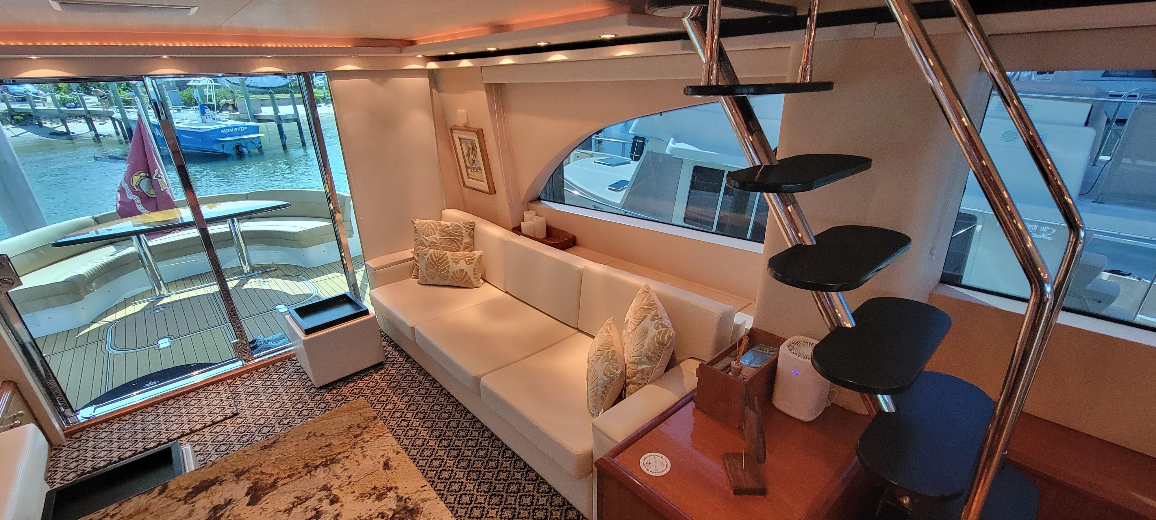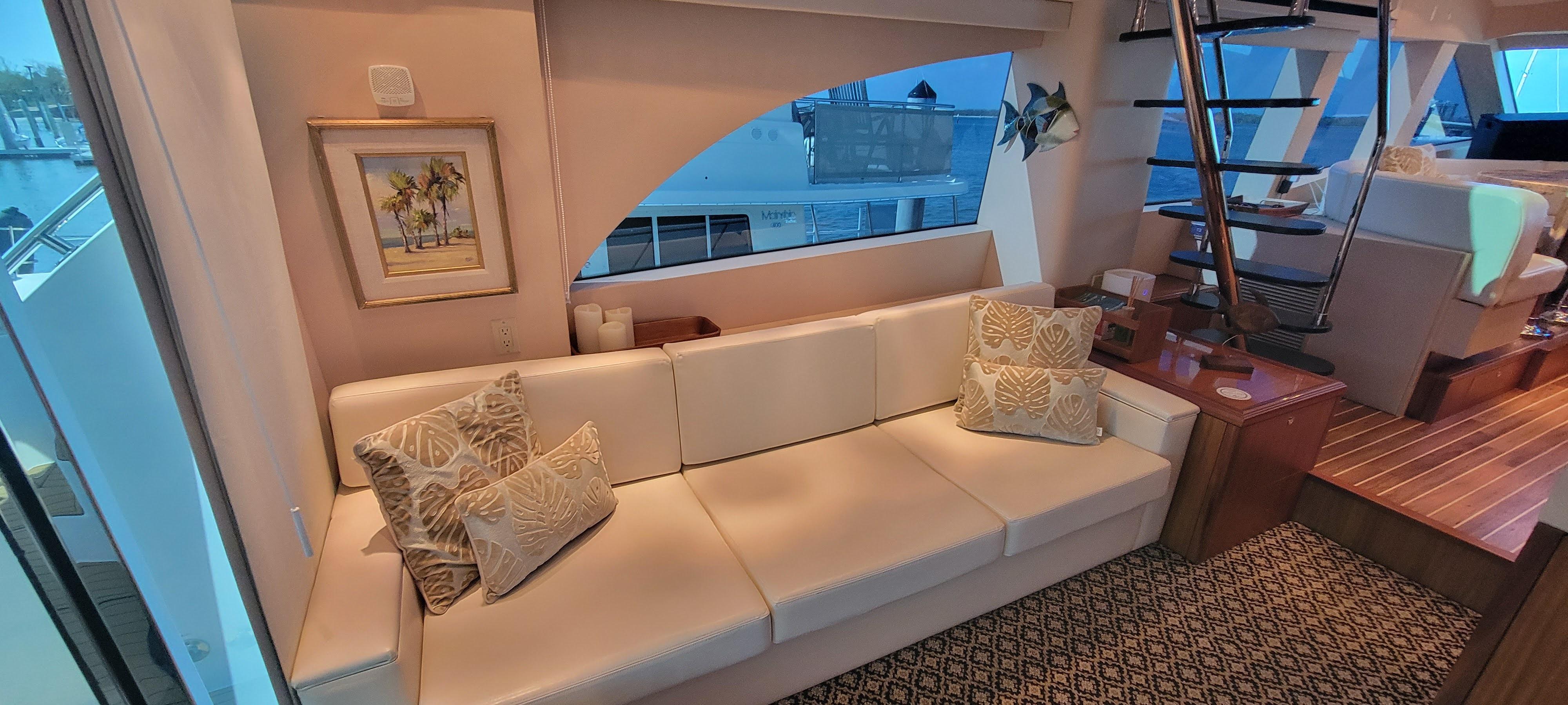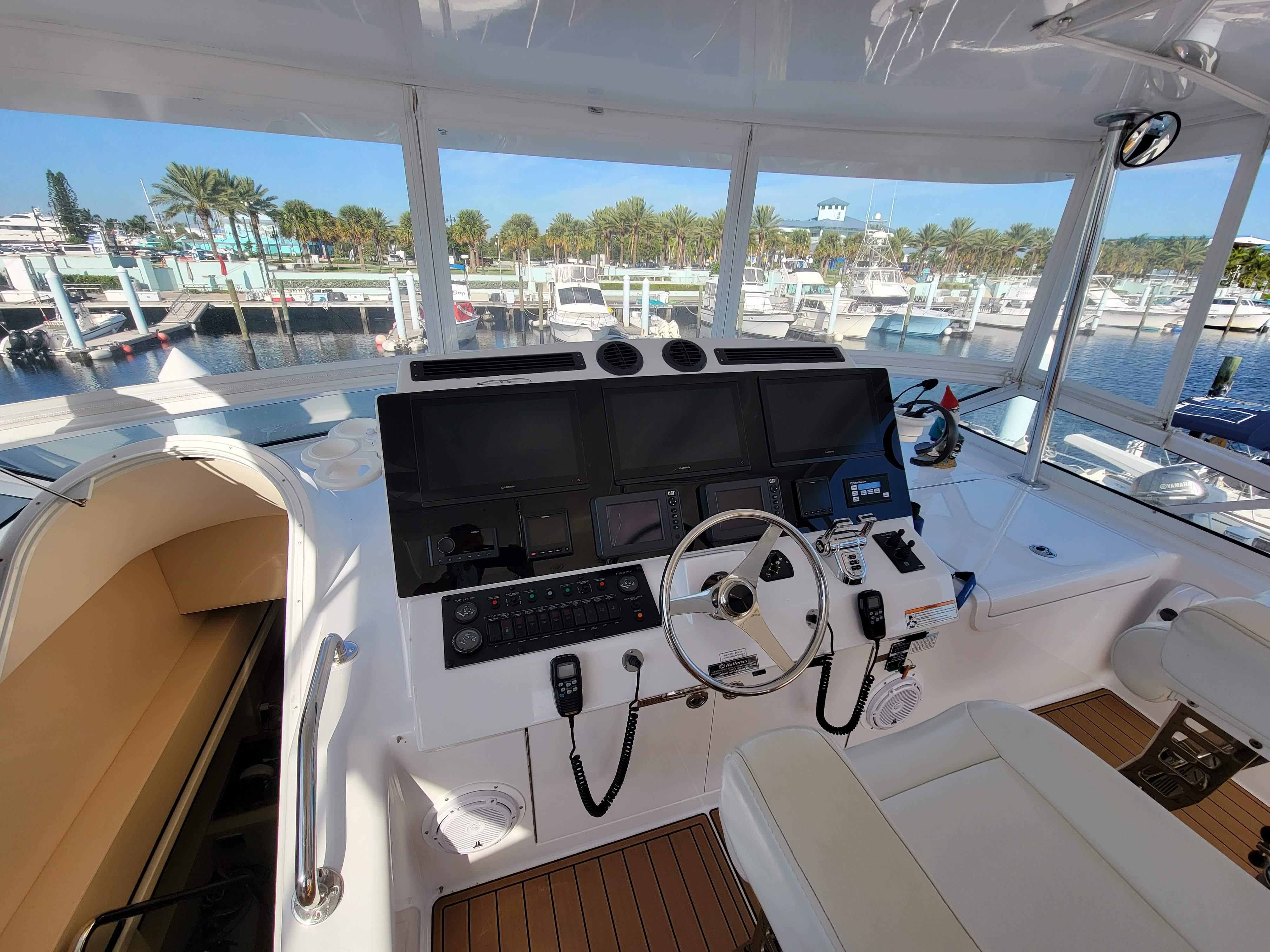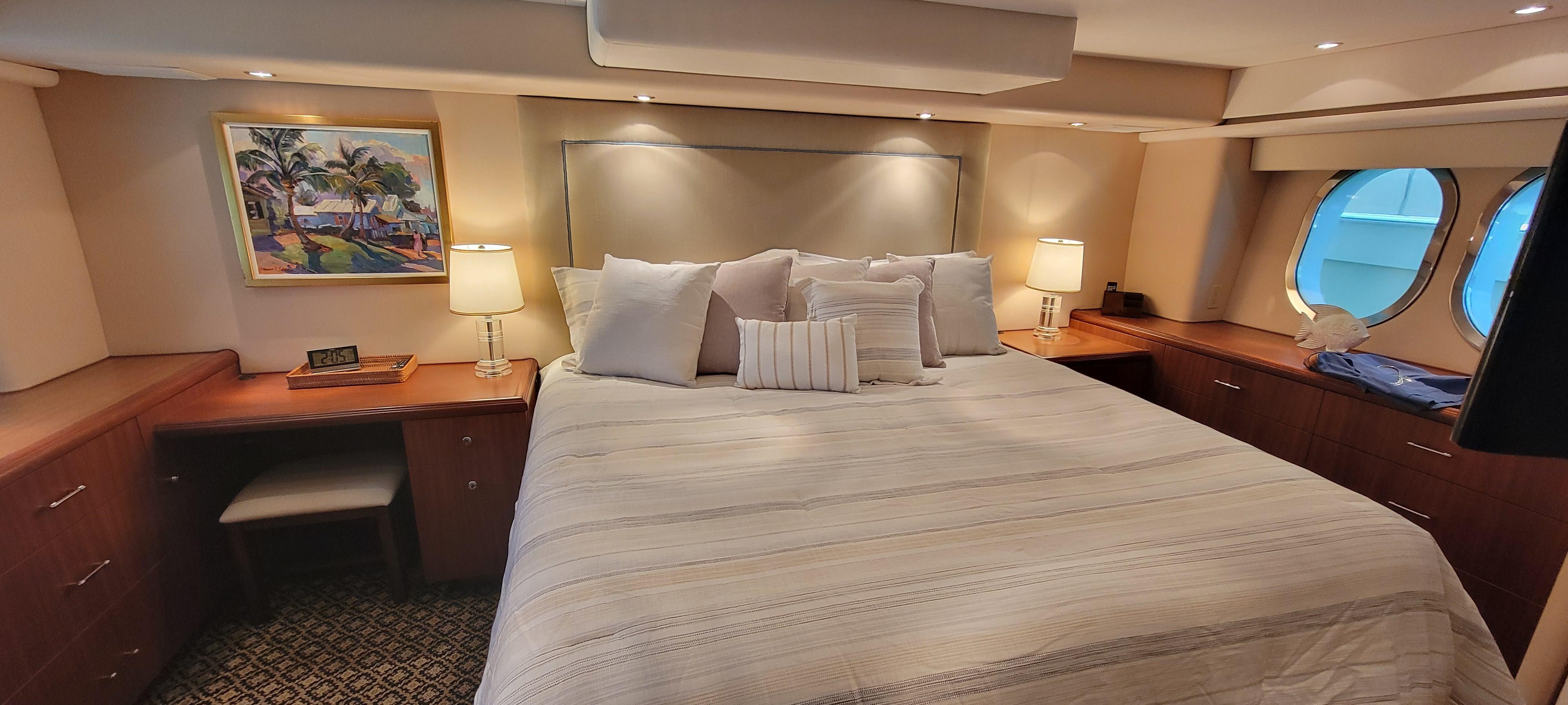 This is the best priced 60 Hatteras in the country. Located in Naples, Florida - this beautiful yacht has been meticulously maintained and updated by experienced owners. The owner holds a USCG 100 ton Masters License and is a former US Marine. After going through the boat the attention to detail and level of upkeep is instantly apparent. From the flybridge hardtop down to the lowest bilge areas she is white glove ready. She offers three staterooms and two heads, plenty of storage. If you have a large family, there is plenty of room. The current owners regularly have held gatherings from 10 up to 35. There is seating for 26 in the main seating areas not including the rear flybridge deck. Her safe dry solid ride allows for easy movement throughout the vessel. Over 18 feet of beam and nearly 65 feet of length, the Irish Lady provides exceptional space for long range travel and a high quality for living aboard. The vessel's maneuverability is efficient for her size with both bow and stern thrusters and the remote Dockmate system that allows for docking anywhere on the boat. Safety is provided with a fiberglass tender, there is a McMurdo Smartfind AIS EPIRB and a six person automatic life raft on the flybridge hardtop. The air-conditioned helm is befitting an experienced Captain, there are three large Garmin 8616 MFD, two Garmin GMI 20, 48 mile open array radar, Garmin sonar, FLIR M364 (thermal night vision), two ICOM VHF units, Airmar True Wind Weather Station, a Garmin Blackbox AIS transceiver, Apollo Fusion Sirius entertainment system with 4 zones and High Performance Starlink. The high performance Starlink provides internet both at anchor, docked, or underway up to 25mph. With two Platinum Pompanette seats centerline and a large L settee to port with a table there is room to entertain and catch the views underway. There is a refrigerator to the rear of the flybridge and easy access to the galley from the interior stairs and the rear deck from the exterior stairs. When the weather allows, the full EZ2C enclosure has panels that can be opened for the full experience of being underway. To the rear of the flybridge, the open deck area has a stainless railing for safety allowing for many different options in seating. The main level is made up the lower salon and upper galley. The salon has seating for eight with a large couch and opposite a large love seat with matching ottomans. The salon can be opened to the rear deck by opening the three full height glass doors into one panel. This creates one entertaining place including the rear deck, salon, and the galley. There are four sound zones controlled by the Apollo Fusion system to set proper levels while entertaining aboard. The flybridge, rear deck, transom decks, and all exterior stairs are covered with SeaDek. This provides safety and comfort, wet or dry, without the high cost of teak. All exterior seating is covered with top quality Sunbrella Horizon vinyl and all of them have additional heavy covers to protect them when not used or underway during in-climate weather. The lower levels hold the three sleeping staterooms. A full beam owner's suite has a king bed, both a walk-in closet and smaller closet, and both sides of storage drawers. There is a surround sound Sony system with LED television. The en-suite head has dual sinks and a full size shower. Both toilets are elongated Raritan with raised bases, and there is no holding tank. The USCG certified Raritan sanitation system treats all waste and processes it out the bottom of hull as inert material. No more pump outs and dealing with the problems that come with them. Right outside the owner's suite are the stacked Miele high capacity M1 T1 washer and dryer. These are top of the line, full size units, that can service a king mattress pad. The water heater has also been upgraded to a 38 gallon dual element tank providing 60 gallons of hot water per hour. Even with a full boat, no cold showers. From the owner's suite traveling towards the bow are the cross bed bunk room and VIP stateroom, each have hanging and drawer storage, and LED displays. They share a guest bathroom with a single sink and shower. Both the owner's suite and the guest areas have separate A/C zones. Down the rear deck steps is the transom and hydraulic lift that carries the 14' Rigid Boat tender with a 60hp Suzuki outboard. The tender has a full bimini top, dive ladder, and a integrated 16 gallon fuel tank, and a 9" Garmin MDF with Sideview and Clearview sonar. Access to the engine room is a large hatch from the rear transom opening to the lazarette or the large floor hatch located on the back deck. The full beam engine room houses two 1000hp CAT C-18 twin turbo marine engines, a CAT C2.2 Marine Generator, Aqua-Whisper Water maker, Spot Zero, and all the other mechanicals with over 7' of headroom.