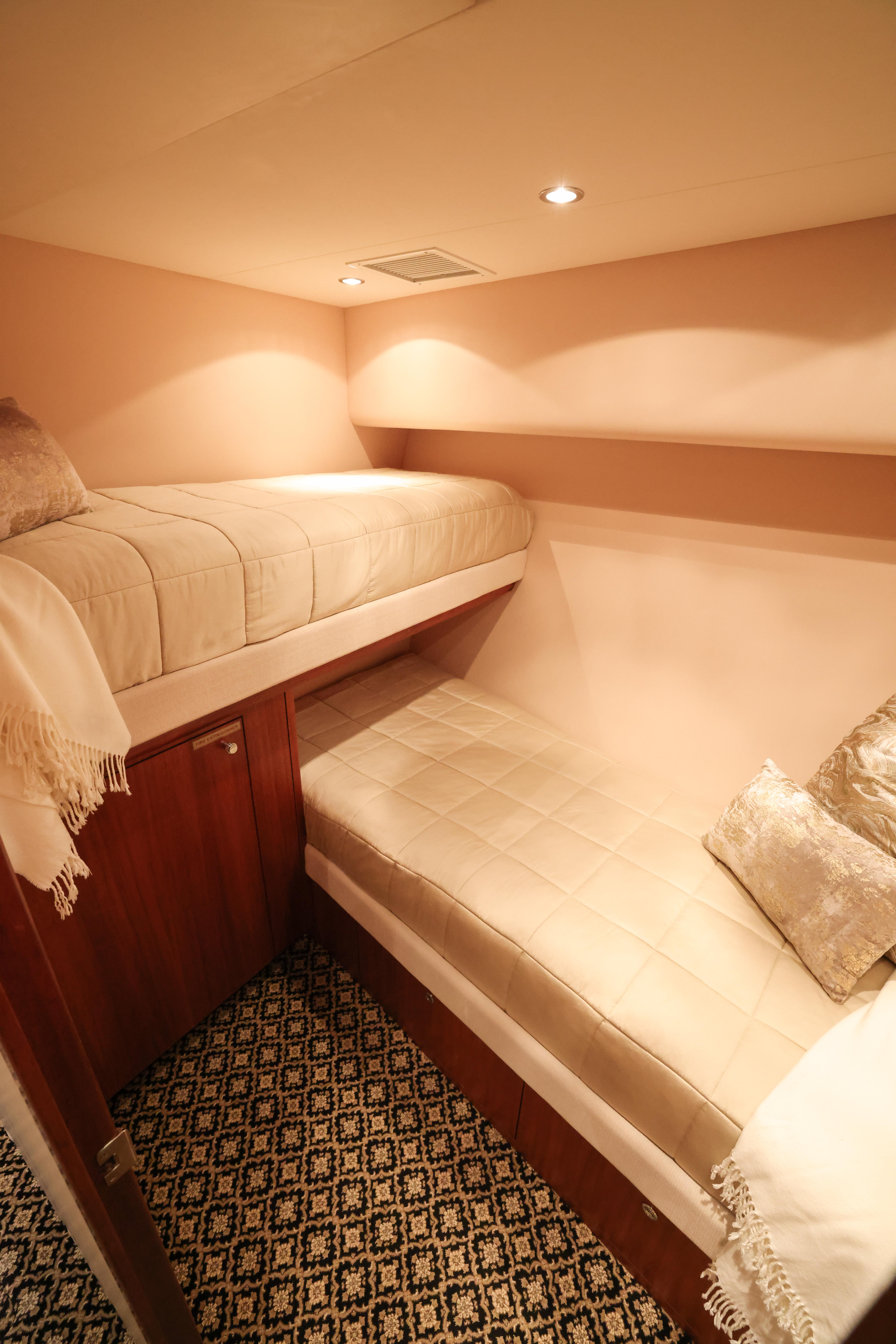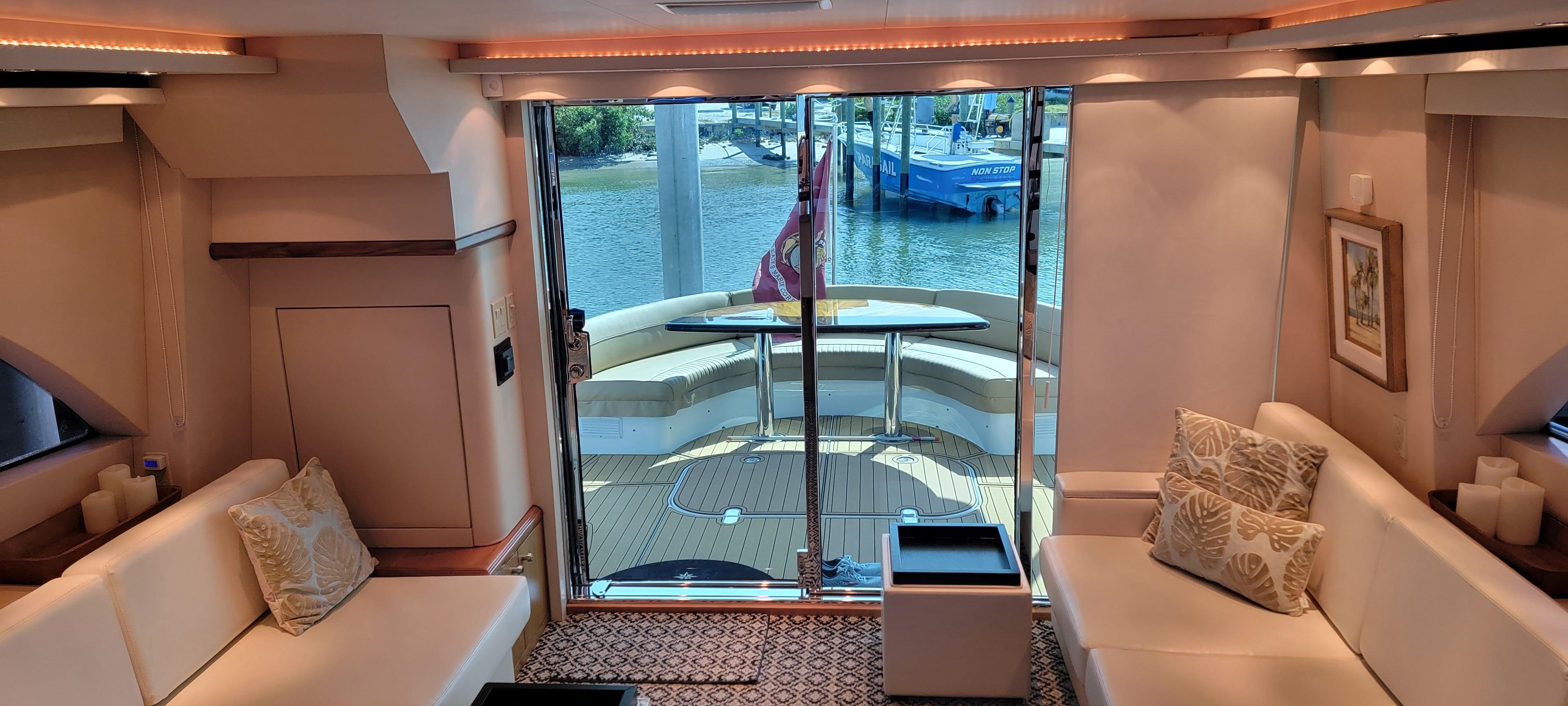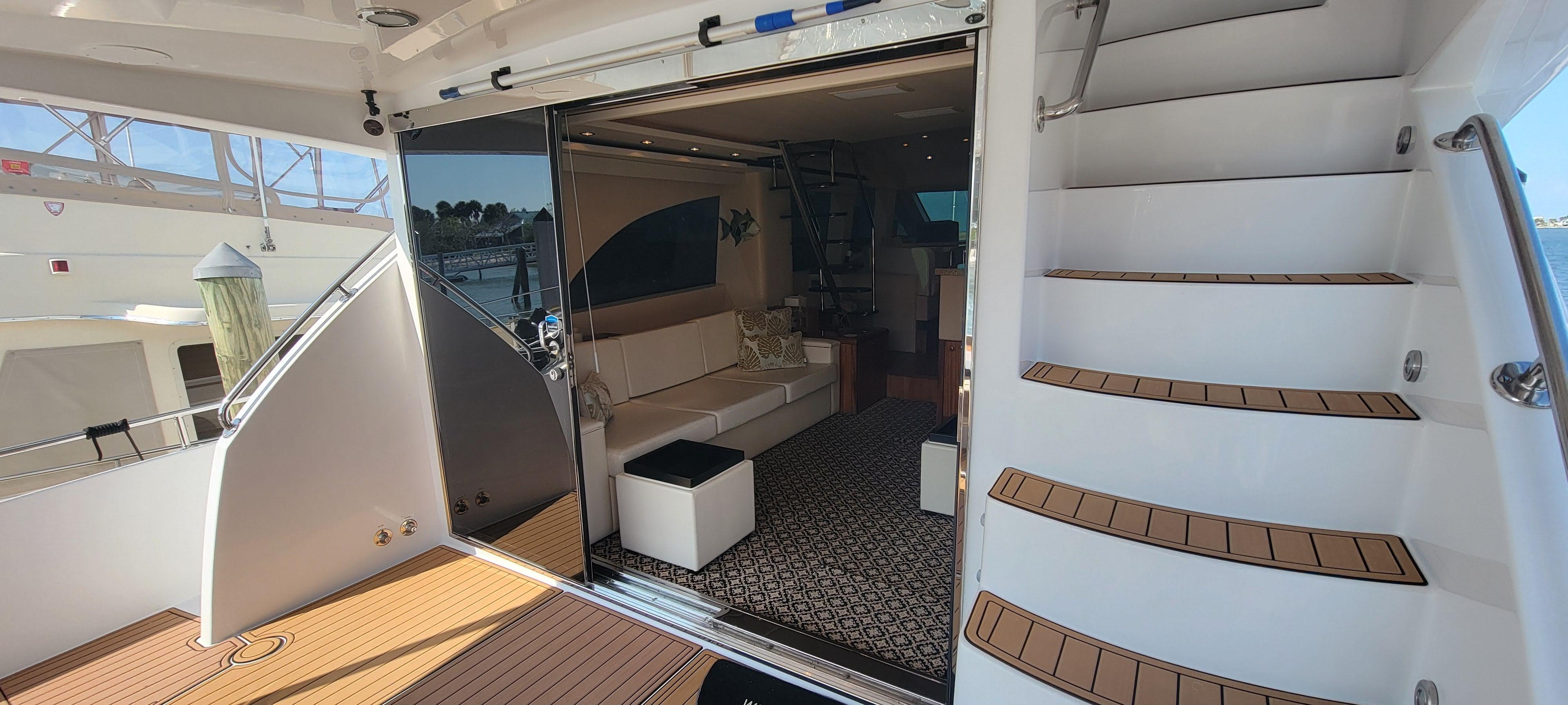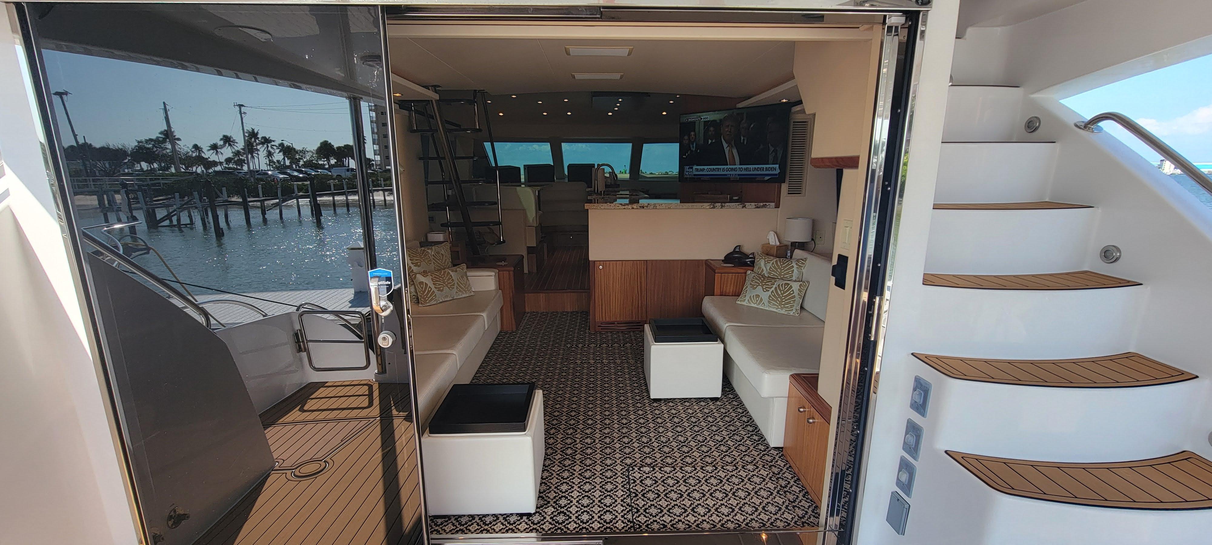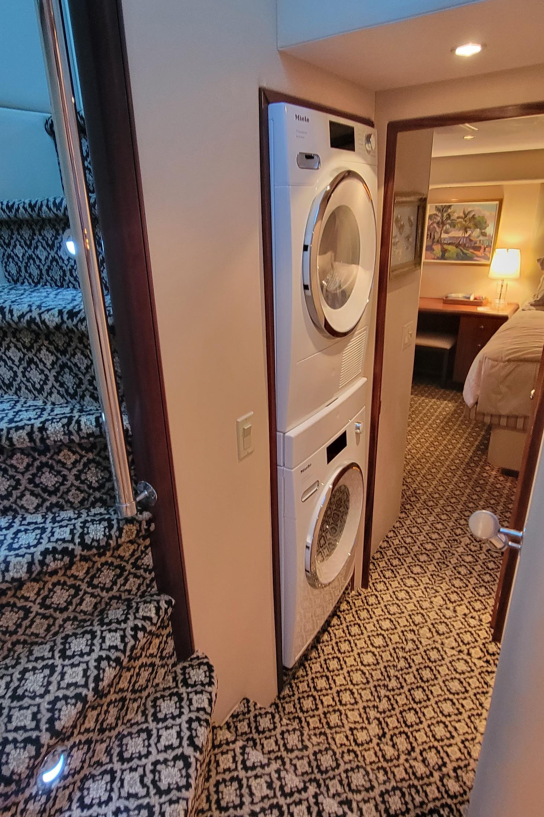 This is the best priced 60 Hatteras in the country. Located in Naples, Florida - this beautiful yacht has been meticulously maintained and updated by experienced owners. The owner holds a USCG 100 ton Masters License and is a former US Marine. After going through the boat the attention to detail and level of upkeep is instantly apparent. From the flybridge hardtop down to the lowest bilge areas she is white glove ready. She offers three staterooms and two heads, plenty of storage. If you have a large family, there is plenty of room. The current owners regularly have held gatherings from 10 up to 35. There is seating for 26 in the main seating areas not including the rear flybridge deck. Her safe dry solid ride allows for easy movement throughout the vessel. Over 18 feet of beam and nearly 65 feet of length, the Irish Lady provides exceptional space for long range travel and a high quality for living aboard. The vessel's maneuverability is efficient for her size with both bow and stern thrusters and the remote Dockmate system that allows for docking anywhere on the boat. Safety is provided with a fiberglass tender, there is a McMurdo Smartfind AIS EPIRB and a six person automatic life raft on the flybridge hardtop. The air-conditioned helm is befitting an experienced Captain, there are three large Garmin 8616 MFD, two Garmin GMI 20, 48 mile open array radar, Garmin sonar, FLIR M364 (thermal night vision), two ICOM VHF units, Airmar True Wind Weather Station, a Garmin Blackbox AIS transceiver, Apollo Fusion Sirius entertainment system with 4 zones and High Performance Starlink. The high performance Starlink provides internet both at anchor, docked, or underway up to 25mph. With two Platinum Pompanette seats centerline and a large L settee to port with a table there is room to entertain and catch the views underway. There is a refrigerator to the rear of the flybridge and easy access to the galley from the interior stairs and the rear deck from the exterior stairs. When the weather allows, the full EZ2C enclosure has panels that can be opened for the full experience of being underway. To the rear of the flybridge, the open deck area has a stainless railing for safety allowing for many different options in seating. The main level is made up the lower salon and upper galley. The salon has seating for eight with a large couch and opposite a large love seat with matching ottomans. The salon can be opened to the rear deck by opening the three full height glass doors into one panel. This creates one entertaining place including the rear deck, salon, and the galley. There are four sound zones controlled by the Apollo Fusion system to set proper levels while entertaining aboard. The flybridge, rear deck, transom decks, and all exterior stairs are covered with SeaDek. This provides safety and comfort, wet or dry, without the high cost of teak. All exterior seating is covered with top quality Sunbrella Horizon vinyl and all of them have additional heavy covers to protect them when not used or underway during in-climate weather. The lower levels hold the three sleeping staterooms. A full beam owner's suite has a king bed, both a walk-in closet and smaller closet, and both sides of storage drawers. There is a surround sound Sony system with LED television. The en-suite head has dual sinks and a full size shower. Both toilets are elongated Raritan with raised bases, and there is no holding tank. The USCG certified Raritan sanitation system treats all waste and processes it out the bottom of hull as inert material. No more pump outs and dealing with the problems that come with them. Right outside the owner's suite are the stacked Miele high capacity M1 T1 washer and dryer. These are top of the line, full size units, that can service a king mattress pad. The water heater has also been upgraded to a 38 gallon dual element tank providing 60 gallons of hot water per hour. Even with a full boat, no cold showers. From the owner's suite traveling towards the bow are the cross bed bunk room and VIP stateroom, each have hanging and drawer storage, and LED displays. They share a guest bathroom with a single sink and shower. Both the owner's suite and the guest areas have separate A/C zones. Down the rear deck steps is the transom and hydraulic lift that carries the 14' Rigid Boat tender with a 60hp Suzuki outboard. The tender has a full bimini top, dive ladder, and a integrated 16 gallon fuel tank, and a 9" Garmin MDF with Sideview and Clearview sonar. Access to the engine room is a large hatch from the rear transom opening to the lazarette or the large floor hatch located on the back deck. The full beam engine room houses two 1000hp CAT C-18 twin turbo marine engines, a CAT C2.2 Marine Generator, Aqua-Whisper Water maker, Spot Zero, and all the other mechanicals with over 7' of headroom.