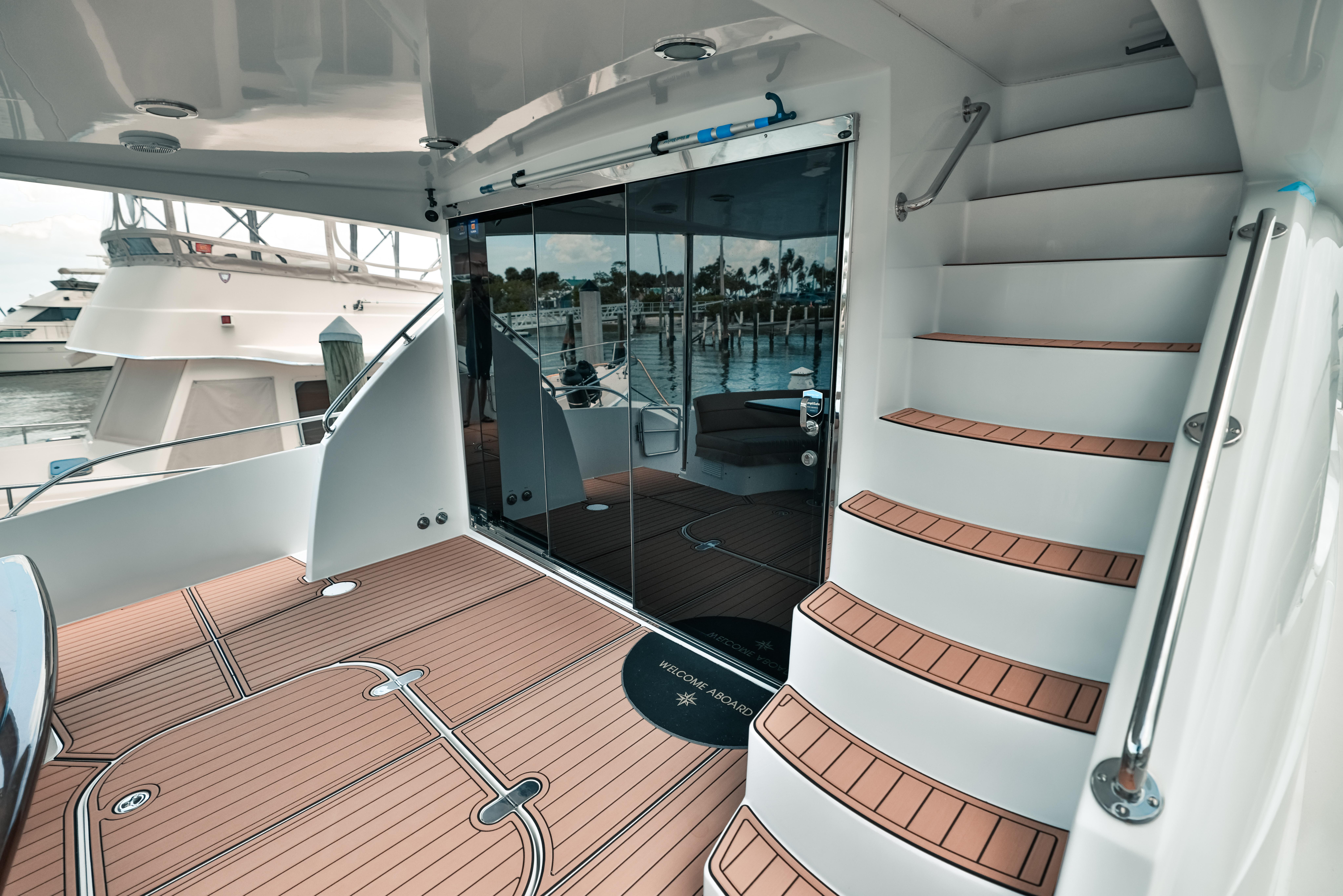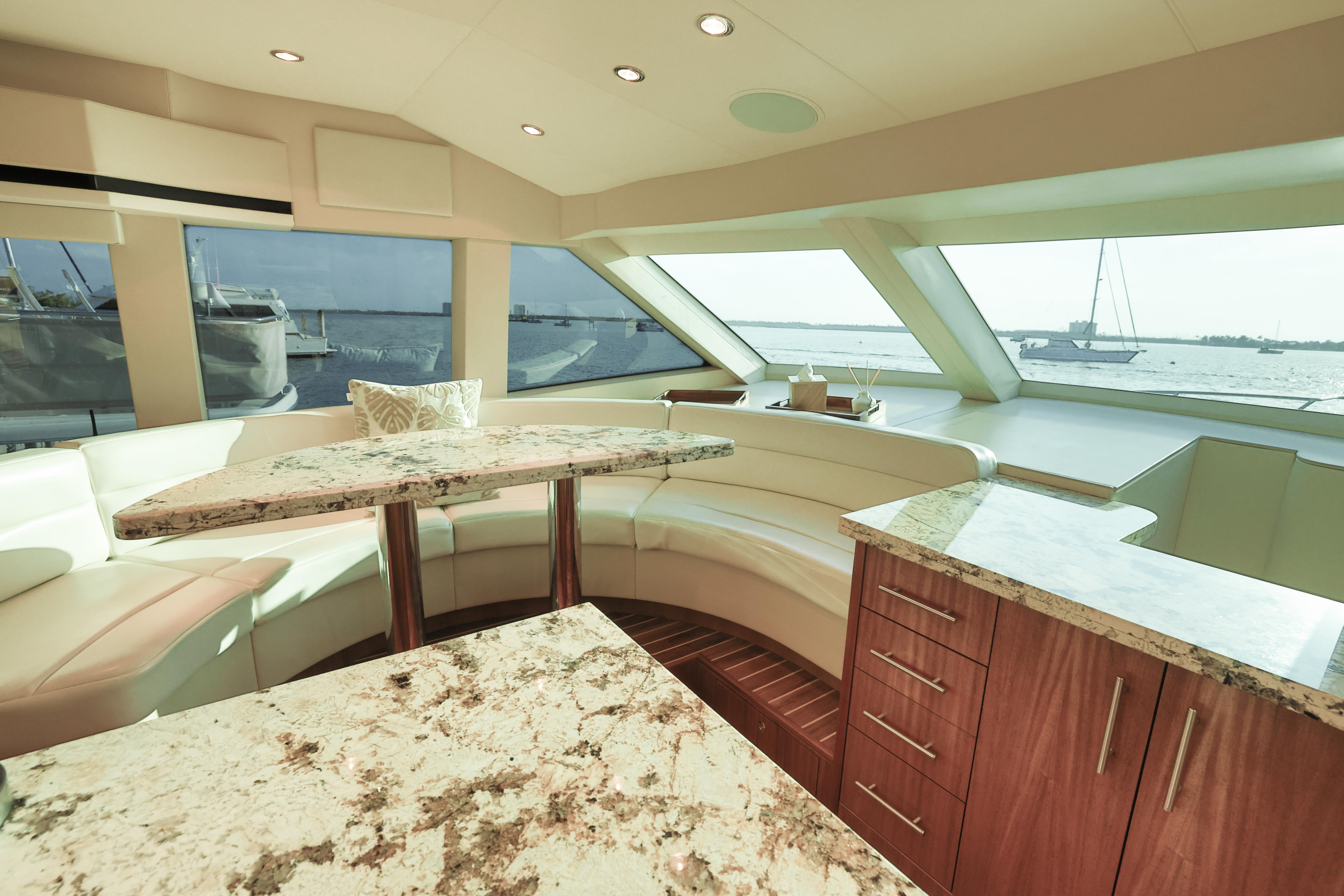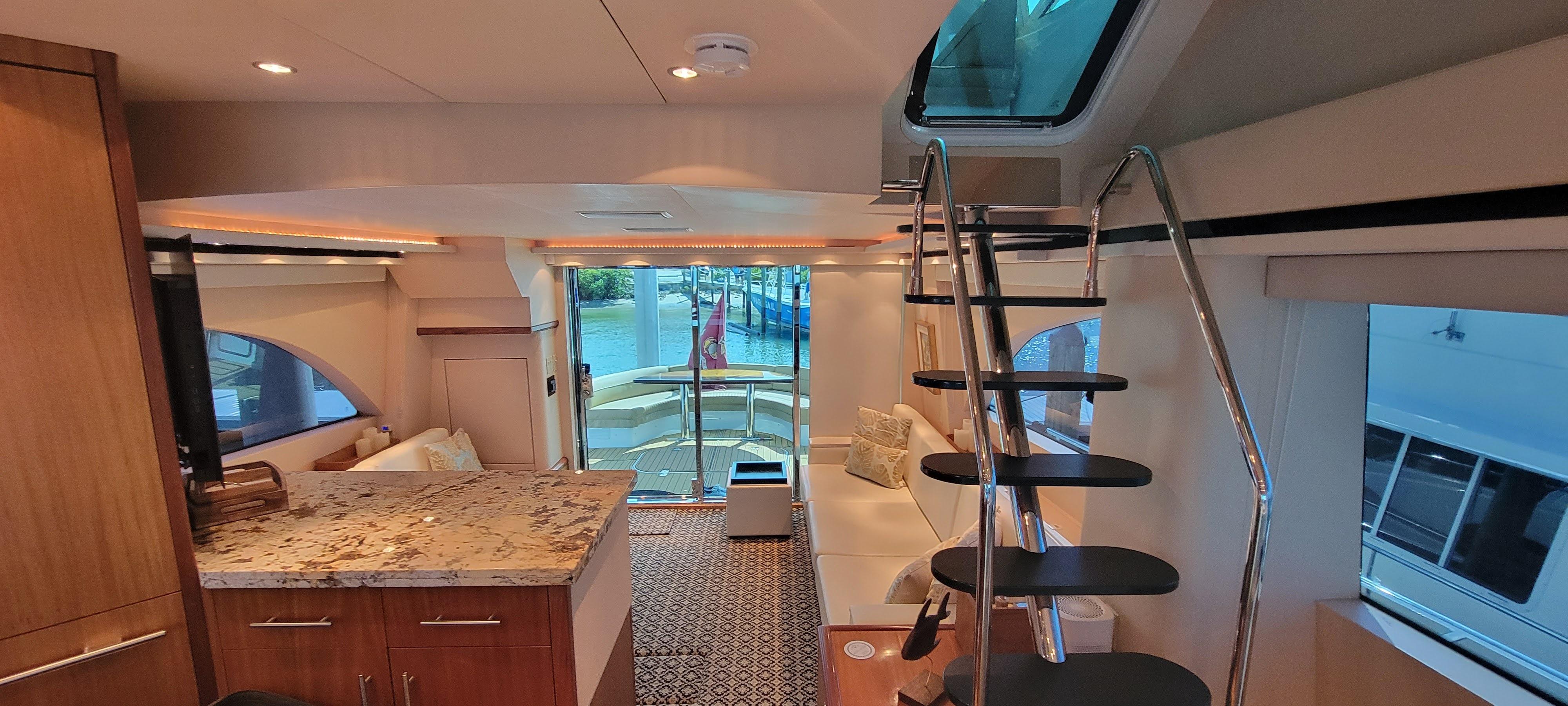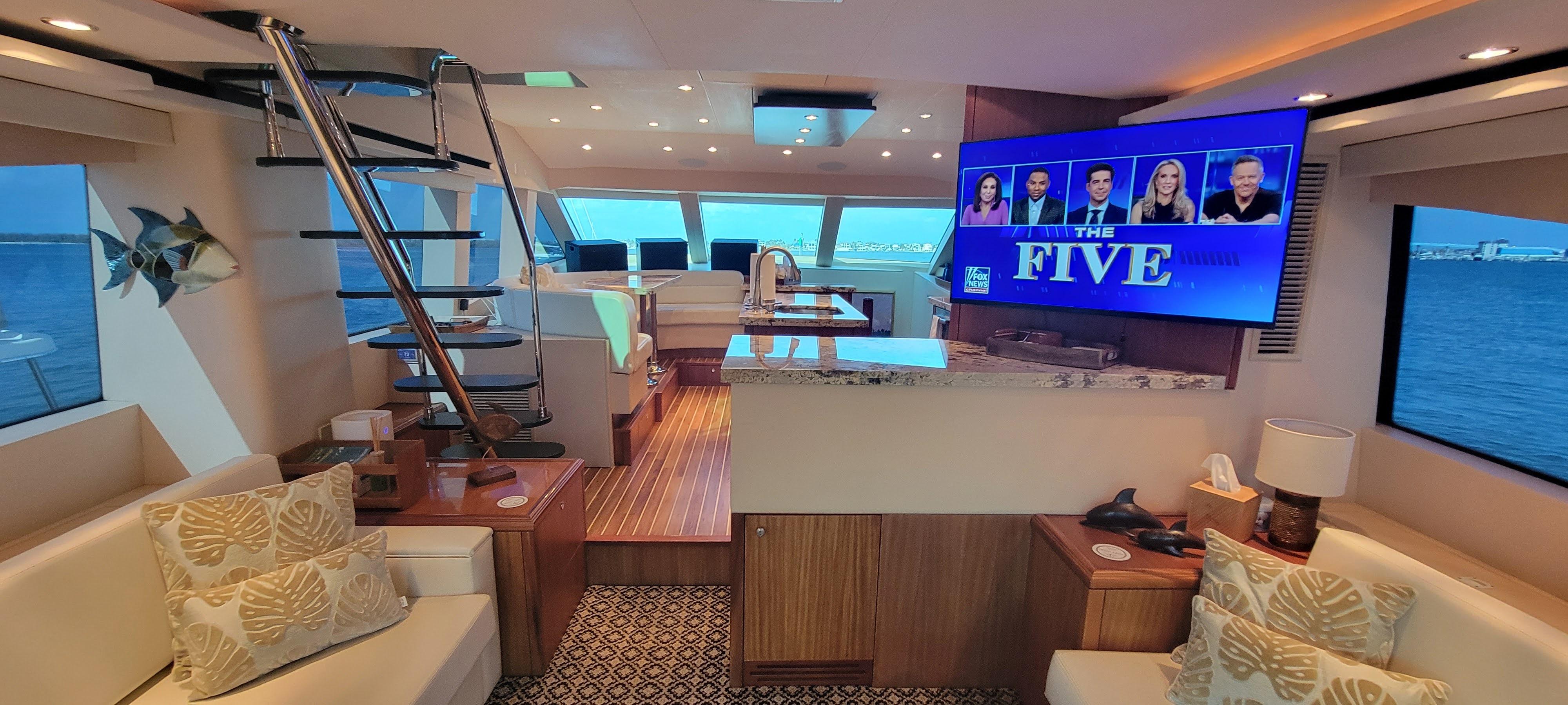 This is the best priced 60 Hatteras in the country. Located in Naples, Florida - this beautiful yacht has been meticulously maintained and updated by experienced owners. The owner holds a USCG 100 ton Masters License and is a former US Marine. After going through the boat the attention to detail and level of upkeep is instantly apparent. From the flybridge hardtop down to the lowest bilge areas she is white glove ready. She offers three staterooms and two heads, plenty of storage. If you have a large family, there is plenty of room. The current owners regularly have held gatherings from 10 up to 35. There is seating for 26 in the main seating areas not including the rear flybridge deck. Her safe dry solid ride allows for easy movement throughout the vessel. Over 18 feet of beam and nearly 65 feet of length, the Irish Lady provides exceptional space for long range travel and a high quality for living aboard. The vessel's maneuverability is efficient for her size with both bow and stern thrusters and the remote Dockmate system that allows for docking anywhere on the boat. Safety is provided with a fiberglass tender, there is a McMurdo Smartfind AIS EPIRB and a six person automatic life raft on the flybridge hardtop. The air-conditioned helm is befitting an experienced Captain, there are three large Garmin 8616 MFD, two Garmin GMI 20, 48 mile open array radar, Garmin sonar, FLIR M364 (thermal night vision), two ICOM VHF units, Airmar True Wind Weather Station, a Garmin Blackbox AIS transceiver, Apollo Fusion Sirius entertainment system with 4 zones and High Performance Starlink. The high performance Starlink provides internet both at anchor, docked, or underway up to 25mph. With two Platinum Pompanette seats centerline and a large L settee to port with a table there is room to entertain and catch the views underway. There is a refrigerator to the rear of the flybridge and easy access to the galley from the interior stairs and the rear deck from the exterior stairs. When the weather allows, the full EZ2C enclosure has panels that can be opened for the full experience of being underway. To the rear of the flybridge, the open deck area has a stainless railing for safety allowing for many different options in seating. The main level is made up the lower salon and upper galley. The salon has seating for eight with a large couch and opposite a large love seat with matching ottomans. The salon can be opened to the rear deck by opening the three full height glass doors into one panel. This creates one entertaining place including the rear deck, salon, and the galley. There are four sound zones controlled by the Apollo Fusion system to set proper levels while entertaining aboard. The flybridge, rear deck, transom decks, and all exterior stairs are covered with SeaDek. This provides safety and comfort, wet or dry, without the high cost of teak. All exterior seating is covered with top quality Sunbrella Horizon vinyl and all of them have additional heavy covers to protect them when not used or underway during in-climate weather. The lower levels hold the three sleeping staterooms. A full beam owner's suite has a king bed, both a walk-in closet and smaller closet, and both sides of storage drawers. There is a surround sound Sony system with LED television. The en-suite head has dual sinks and a full size shower. Both toilets are elongated Raritan with raised bases, and there is no holding tank. The USCG certified Raritan sanitation system treats all waste and processes it out the bottom of hull as inert material. No more pump outs and dealing with the problems that come with them. Right outside the owner's suite are the stacked Miele high capacity M1 T1 washer and dryer. These are top of the line, full size units, that can service a king mattress pad. The water heater has also been upgraded to a 38 gallon dual element tank providing 60 gallons of hot water per hour. Even with a full boat, no cold showers. From the owner's suite traveling towards the bow are the cross bed bunk room and VIP stateroom, each have hanging and drawer storage, and LED displays. They share a guest bathroom with a single sink and shower. Both the owner's suite and the guest areas have separate A/C zones. Down the rear deck steps is the transom and hydraulic lift that carries the 14' Rigid Boat tender with a 60hp Suzuki outboard. The tender has a full bimini top, dive ladder, and a integrated 16 gallon fuel tank, and a 9" Garmin MDF with Sideview and Clearview sonar. Access to the engine room is a large hatch from the rear transom opening to the lazarette or the large floor hatch located on the back deck. The full beam engine room houses two 1000hp CAT C-18 twin turbo marine engines, a CAT C2.2 Marine Generator, Aqua-Whisper Water maker, Spot Zero, and all the other mechanicals with over 7' of headroom.