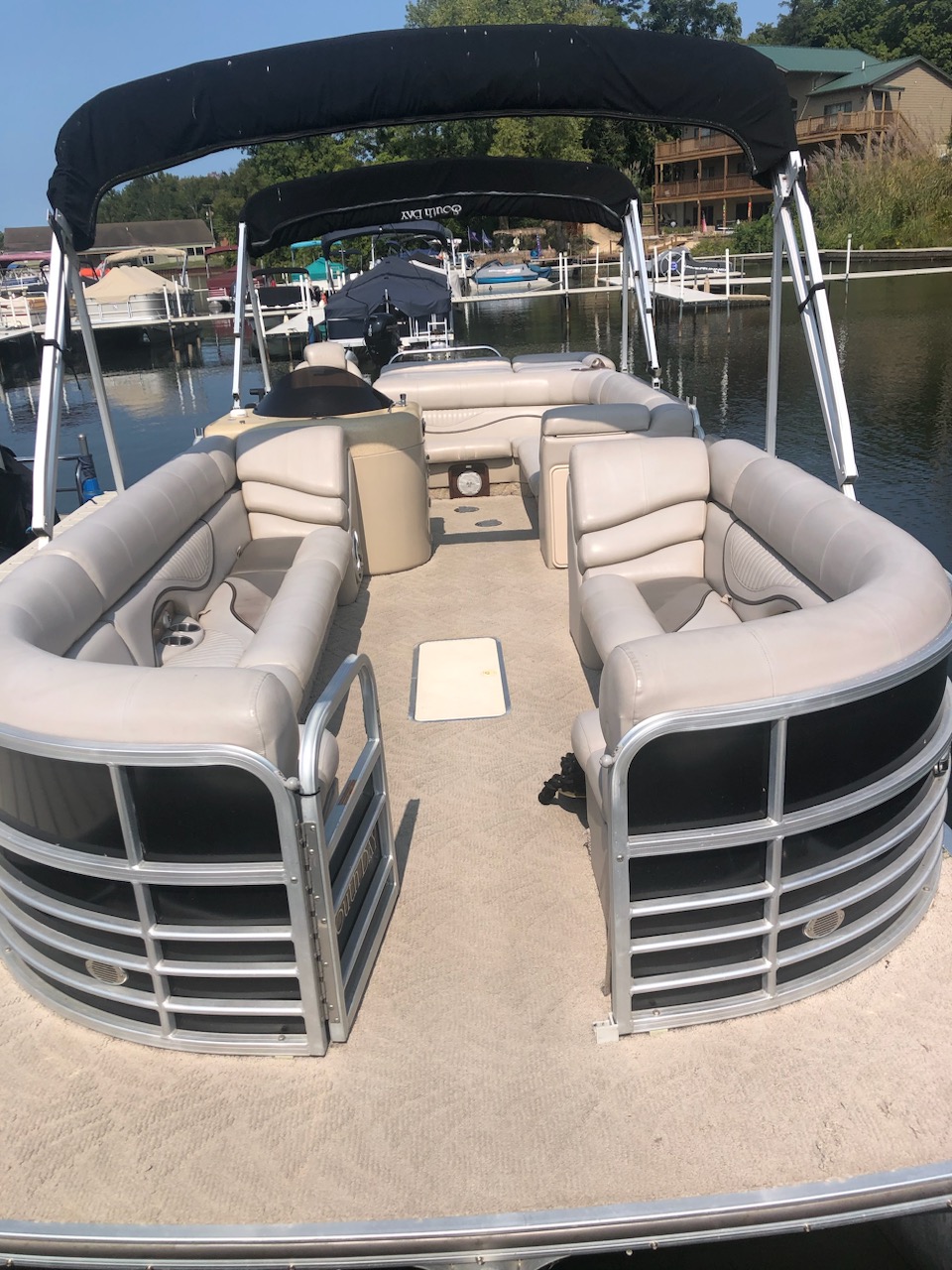 Spacious 25' deck with plush wraparound seating SEATS 17