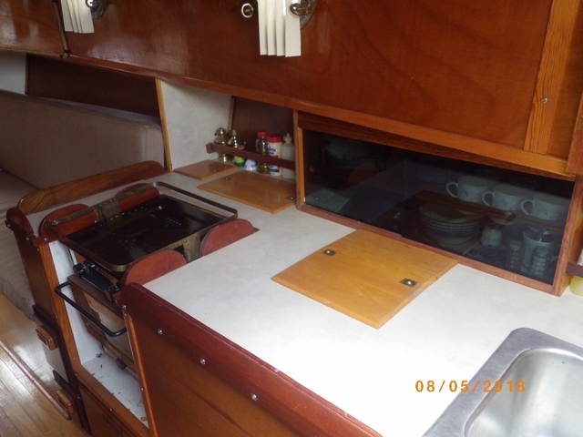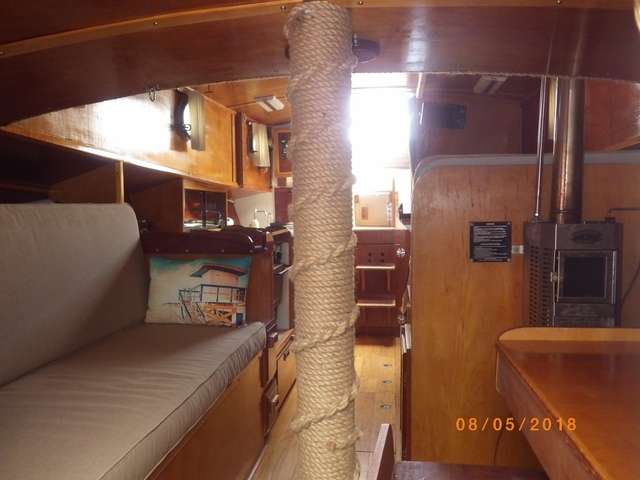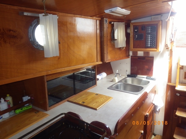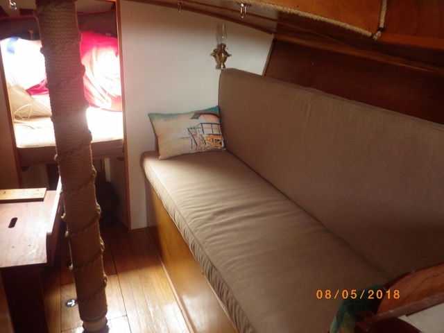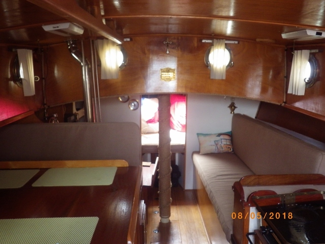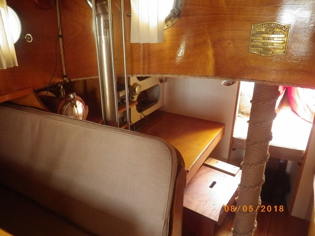 Diesel fuel for the engine and the two burner stove and oven. All berths have 6’ 6” headroom. The saloon has 6’6” head room.