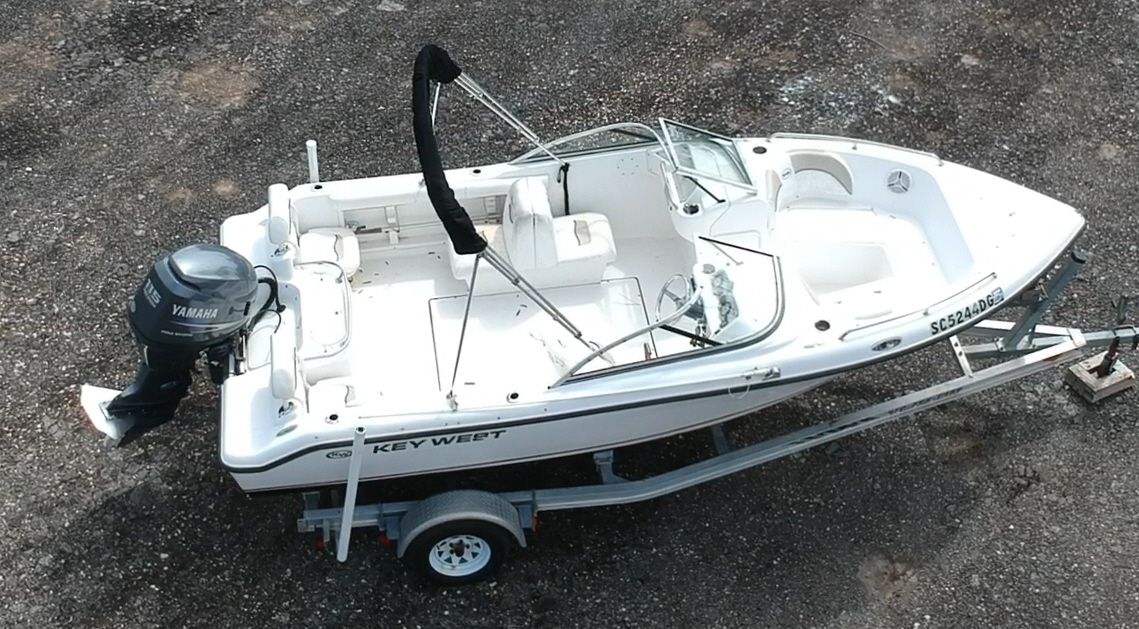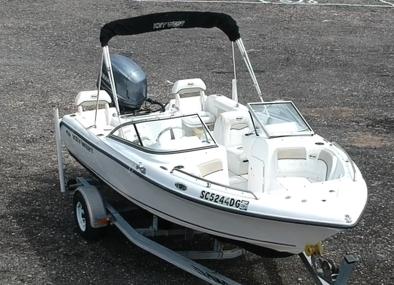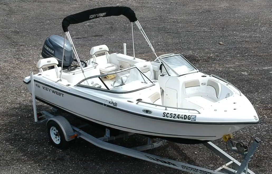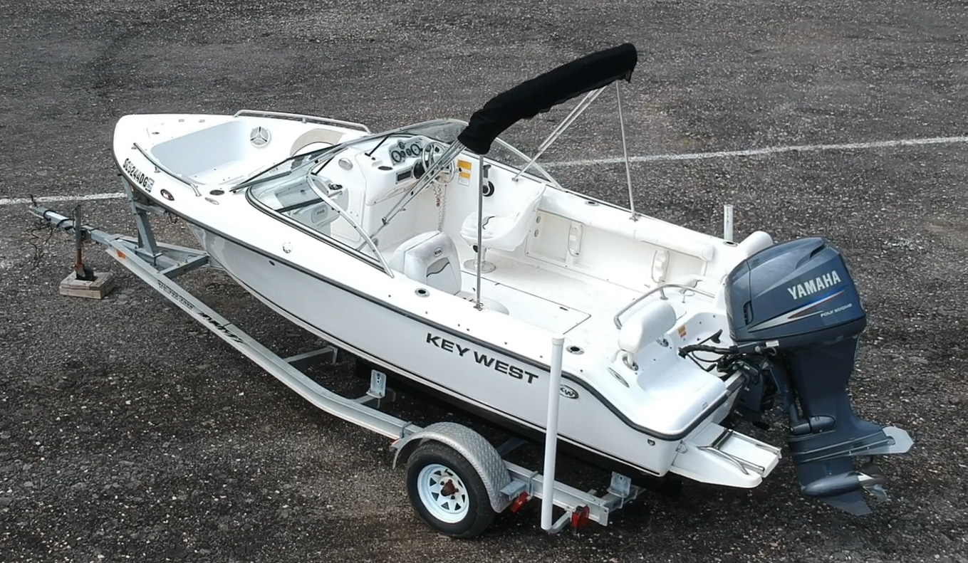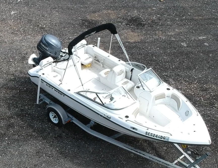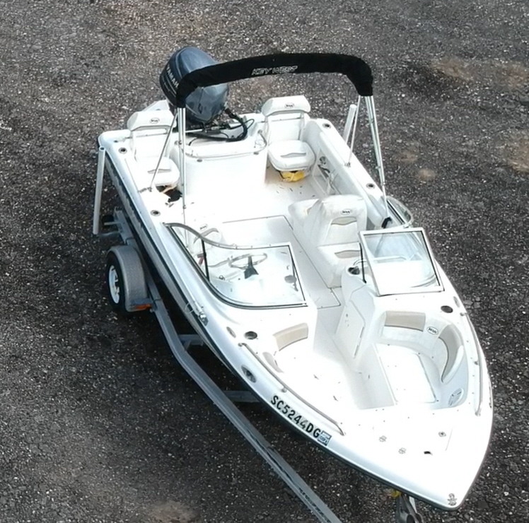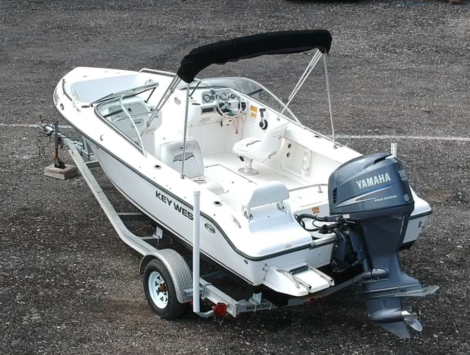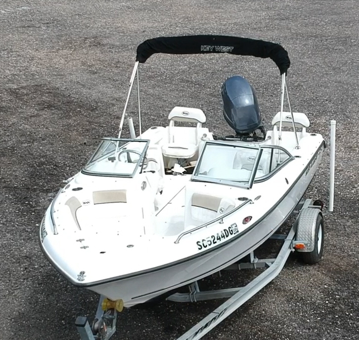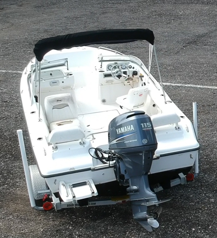 Complete with: Covers, Bimini Top, Stereo, VHF Radio and Single Axle Aluminum Trailer,