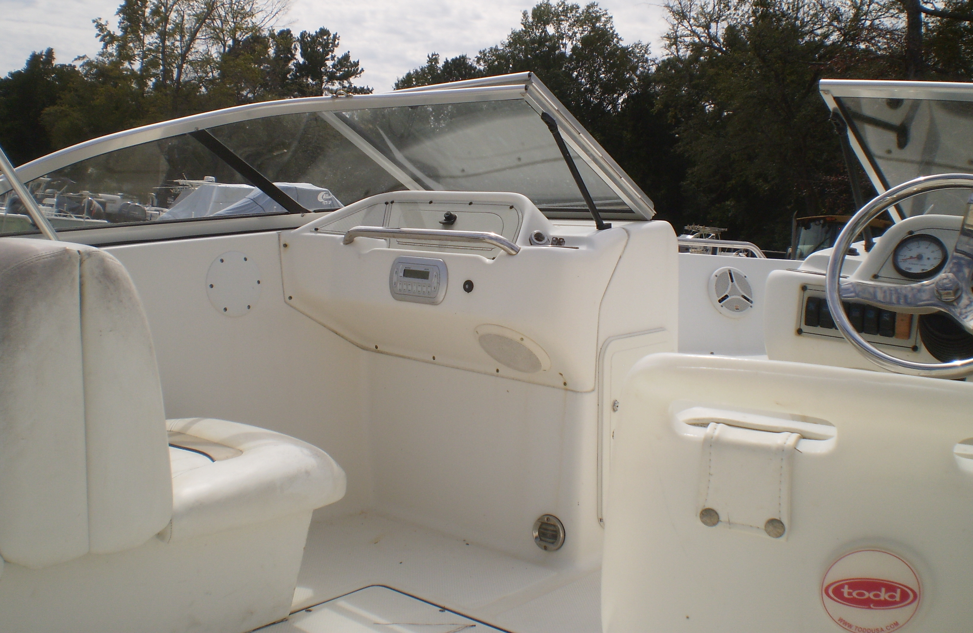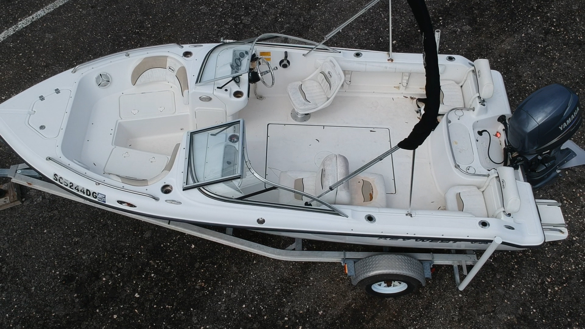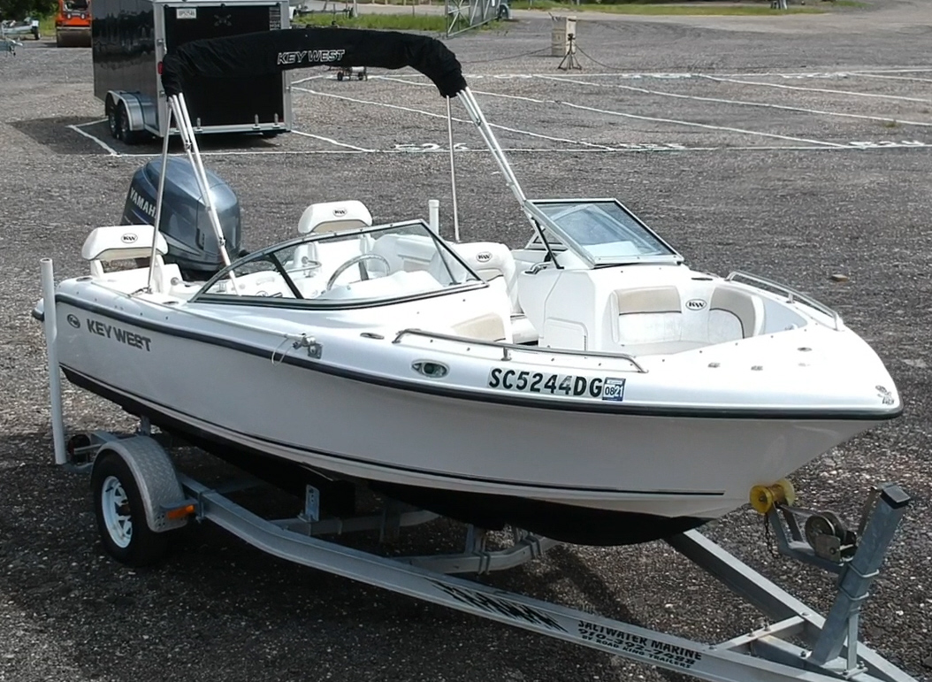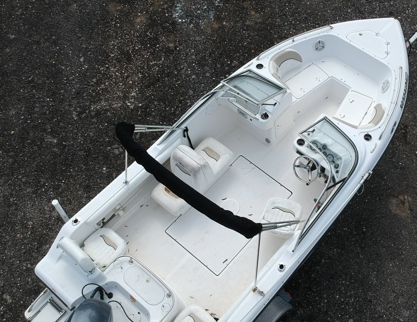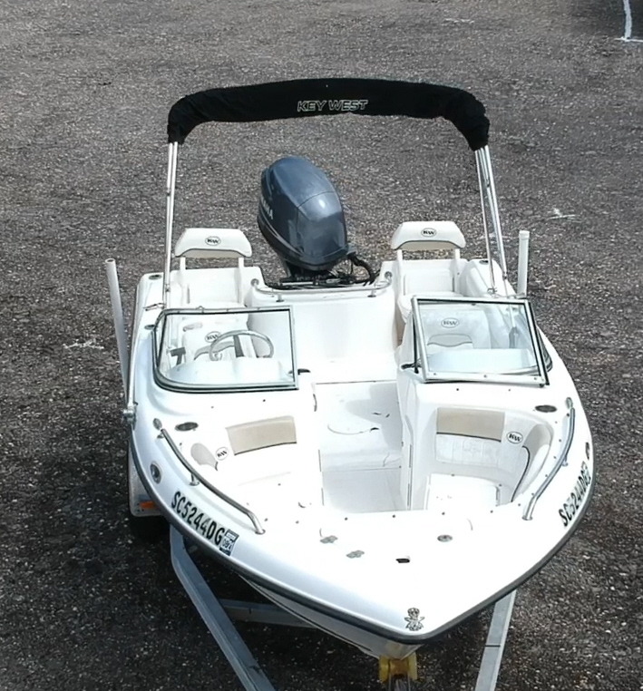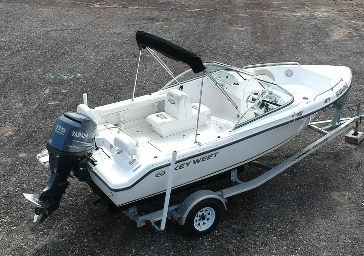 Complete with: Covers, Bimini Top, Stereo, VHF Radio and Single Axle Aluminum Trailer,