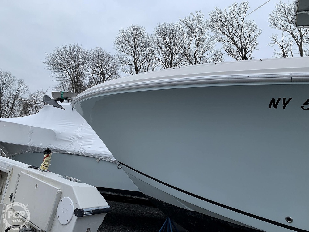 This boat is located in Patchogue, New York and is in great condition. She is also equipped with twin Yamaha engines that have 595 hours.