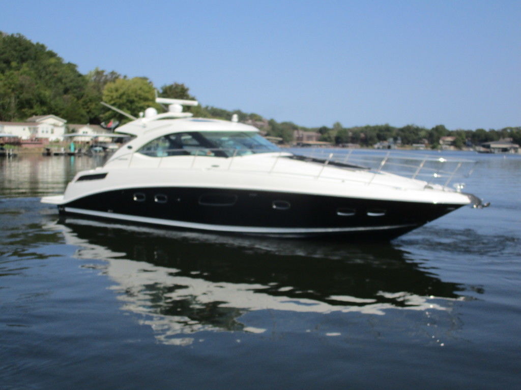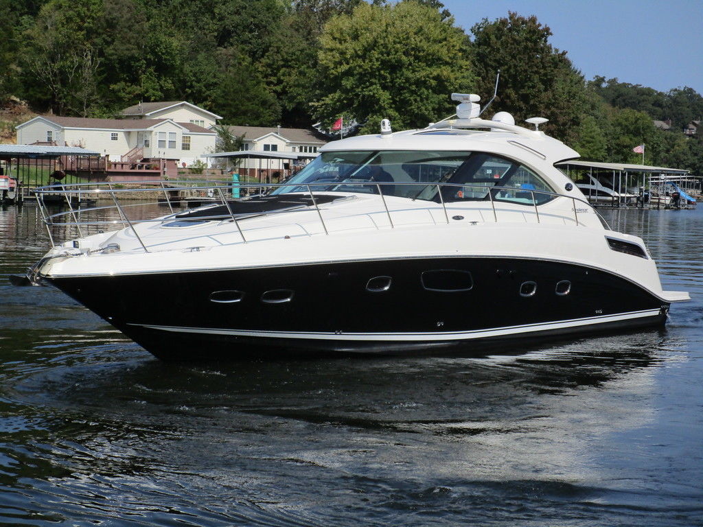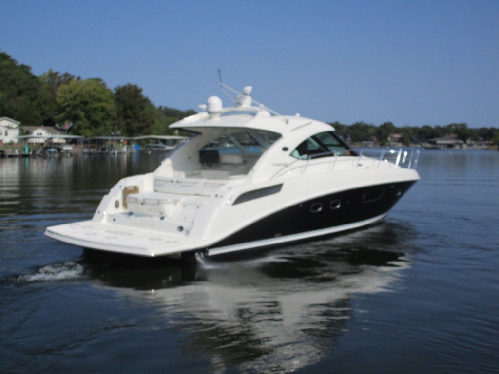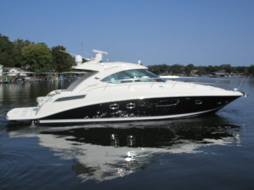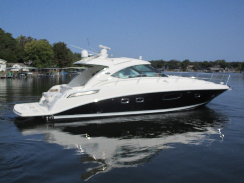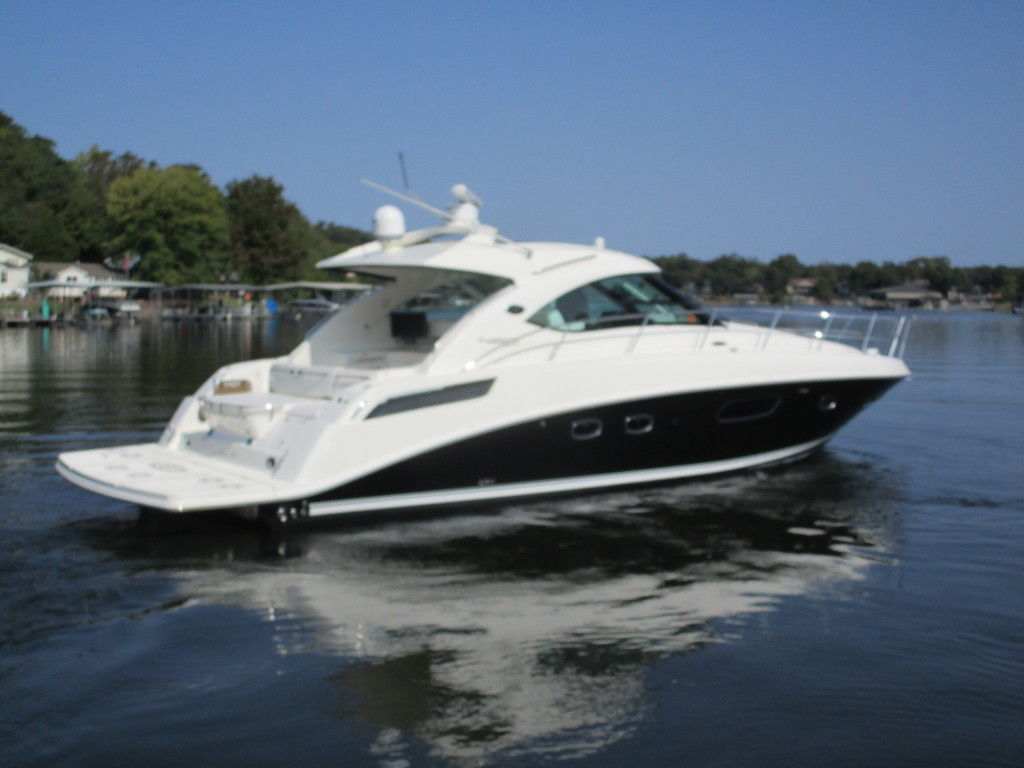 2011 Sea Ray 470 Sundancer powered by twin Cummins Zues QSB 480 with 595 hours, Mercury Smartcraft, dual Raymarine E120 Chartplotters with radar, Flir night vision, Skyhook, KVH trac-vision satellite TV, cockpit air conditioning and heat, DTS controls, cockpit wetbar with sink, grill, and fridge, 22" cockpit flatscreen TV, VHF radio, remote spotlight, dual sunroofs in hardtop, cockpit carpeting, Onan generator with 1,100 hours, cherry wood interior, sink, microwave/convection oven, 2 burner stove, fridge/freezer, 8,000 BTU A/C in forward stateroom and head, 16,000 BTU A/C in mid-stateroom and salon, 2 vacu flush heads, windlass, full canvas enclosures, shore power and on board charger. Financing and transportation available.