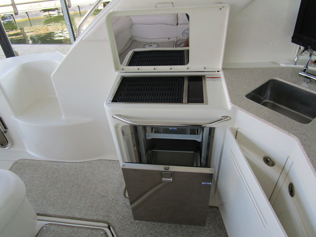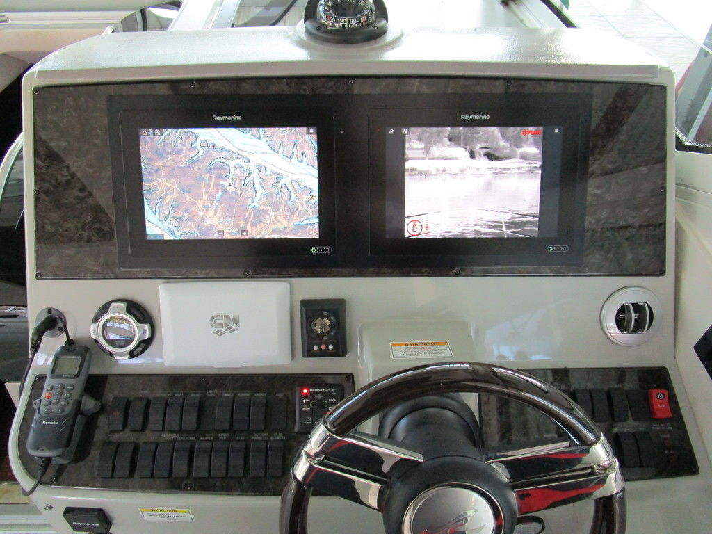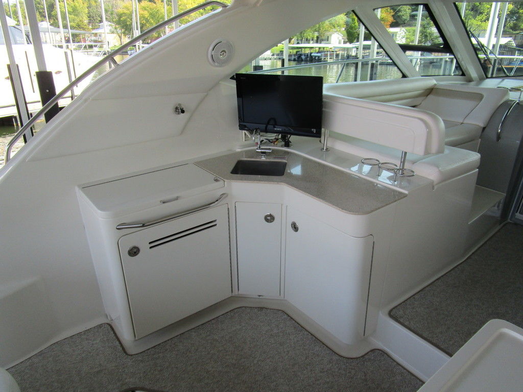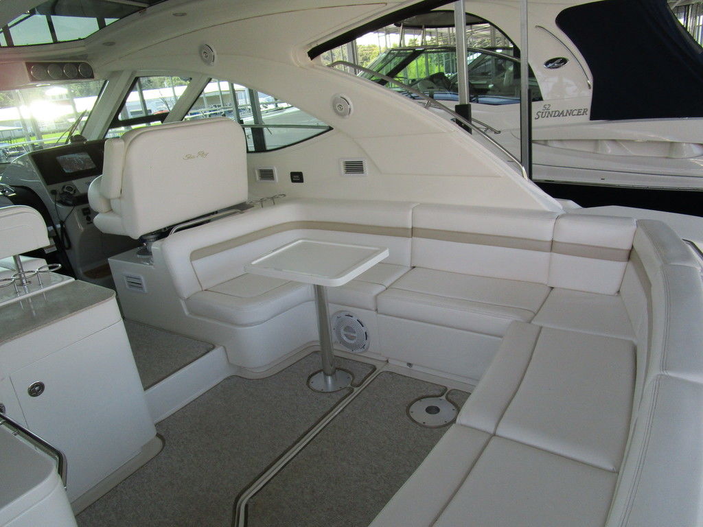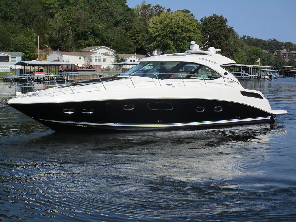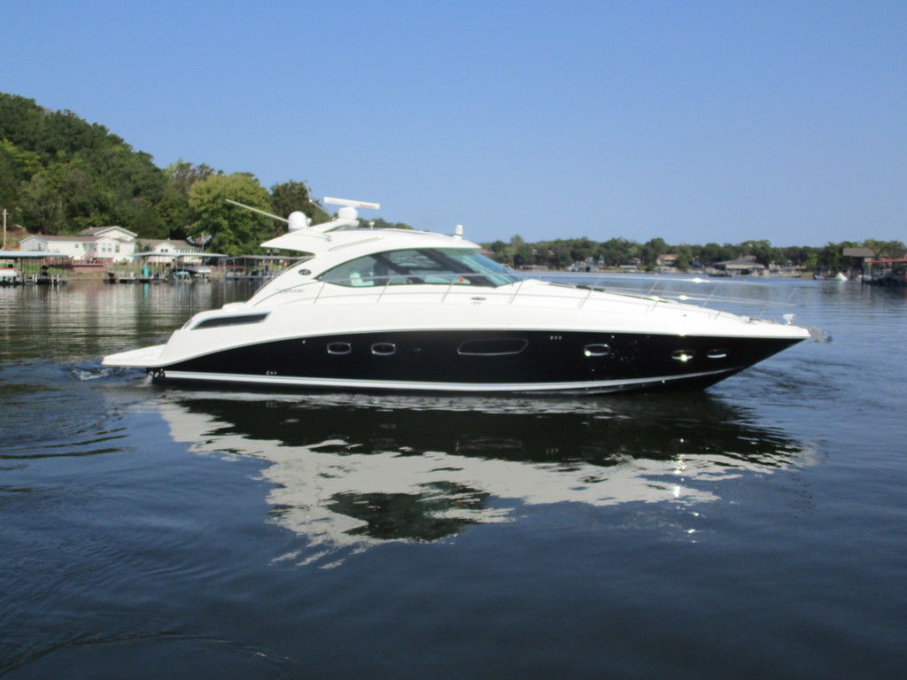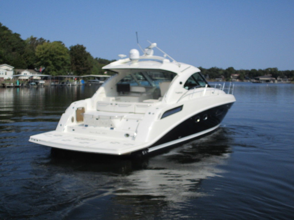 2011 Sea Ray 470 Sundancer powered by twin Cummins Zues QSB 480 with 595 hours, Mercury Smartcraft, dual Raymarine E120 Chartplotters with radar, Flir night vision, Skyhook, KVH trac-vision satellite TV, cockpit air conditioning and heat, DTS controls, cockpit wetbar with sink, grill, and fridge, 22" cockpit flatscreen TV, VHF radio, remote spotlight, dual sunroofs in hardtop, cockpit carpeting, Onan generator with 1,100 hours, cherry wood interior, sink, microwave/convection oven, 2 burner stove, fridge/freezer, 8,000 BTU A/C in forward stateroom and head, 16,000 BTU A/C in mid-stateroom and salon, 2 vacu flush heads, windlass, full canvas enclosures, shore power and on board charger. Financing and transportation available.