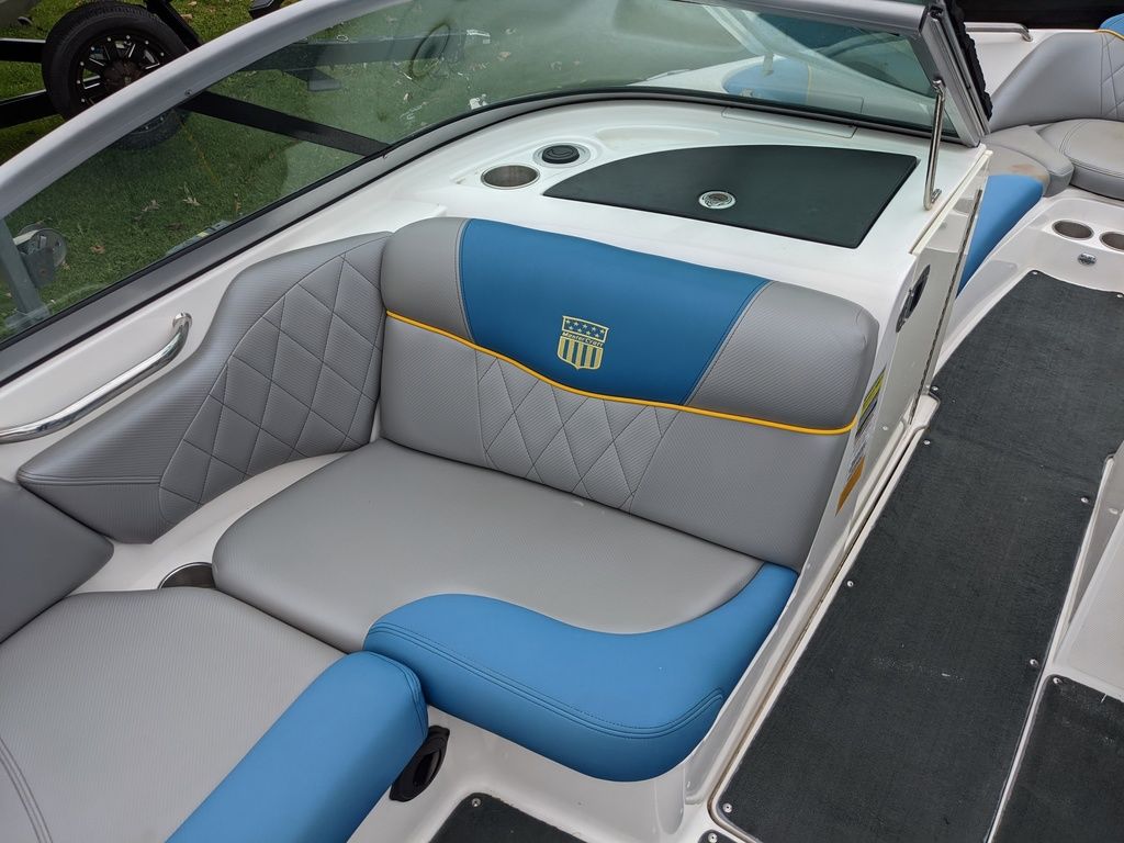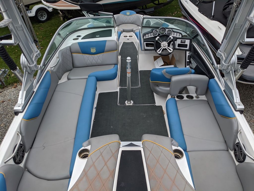 This 2012 MasterCraft X14v is with us as a trade in from the boats second owner. Being used previously on a freshwater lake in PA, the boat was then repurchased in 2018 and kept on a lift in Brigatine, NJ. With use in brackish water, this boat was flushed after each use and shows in good condition. There is some minor pitting on the billet aluminum fixutre (ie the bezels on the dashboard and some areas of the tower) but are all around in very nice condition. The factory clamping board racks were removed, but are included with the boat! Coming with the factory MasterCraft trailer and cover, this boat is offered at an awesome value for a multisport boat.