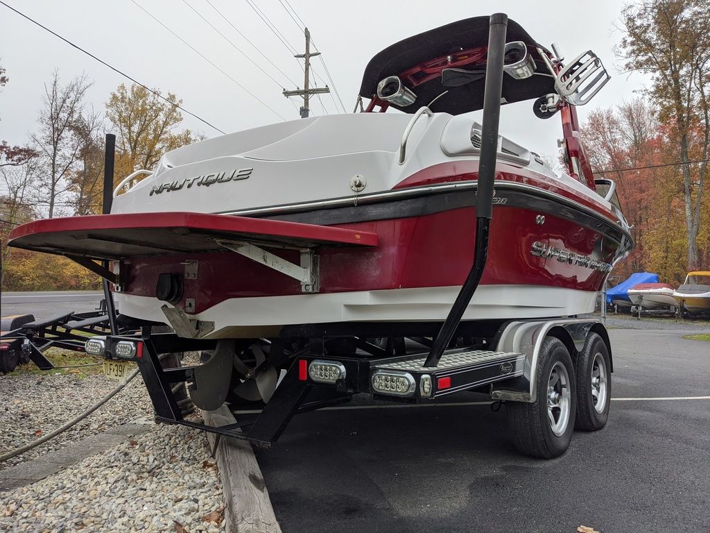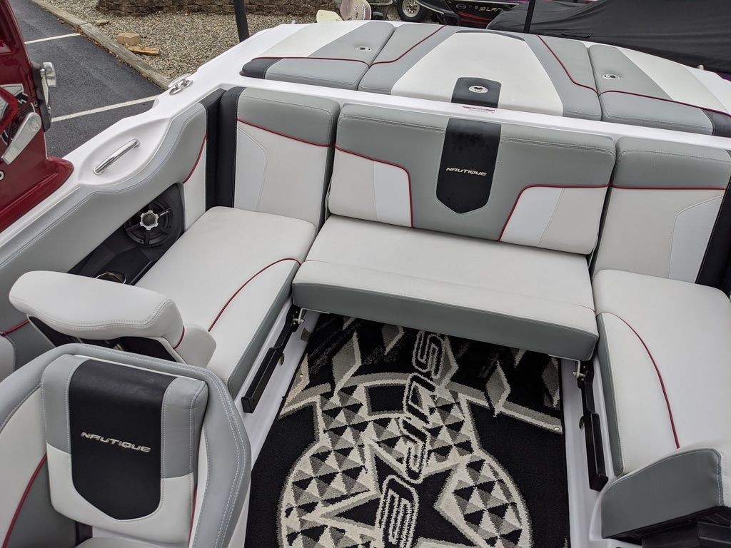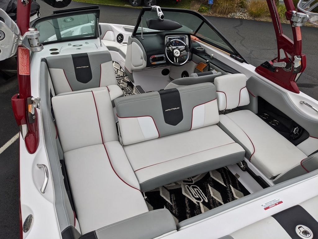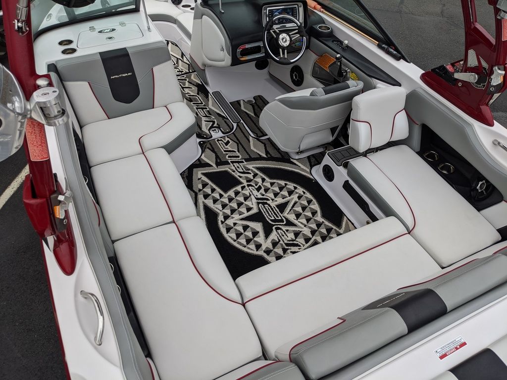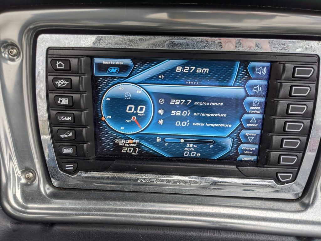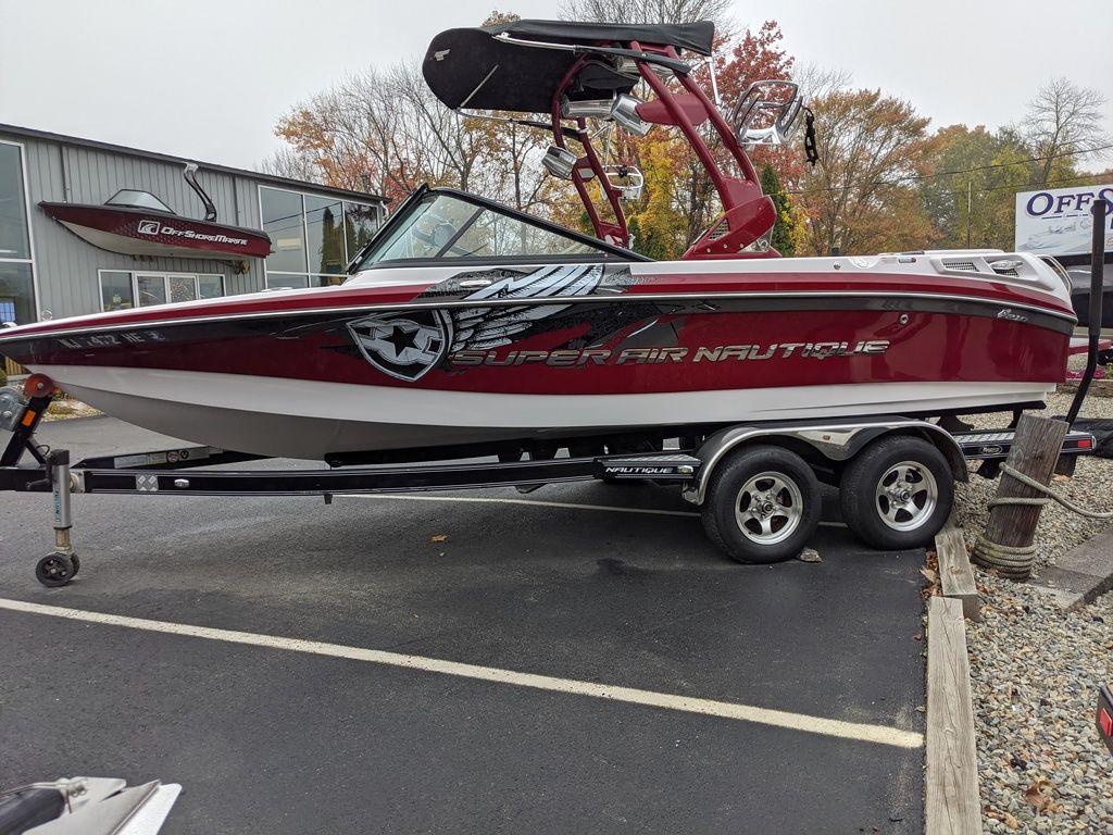 This super clean 2012 Nautique 210 is up for sale with just 300 hours of freshwater use. Being purchased from us originally, back in 2012, this boat has been kept on a lift, stored indoors during the winter, and maintained by our service department since it was purchased. Equipped with the team edition package, this boat is capable of adding the Nautique Surf System, integrated right into the dashboard of the boat. This boat has a both the Horn Driver tower speakers and 6.5" polk speakers, Level II stereo upgrade, heater/ w defroster, upgraded carpet, fiberglass platform, Nautique bimini and mooring cover, with a matching Boatmate Tandem Axle Trailer