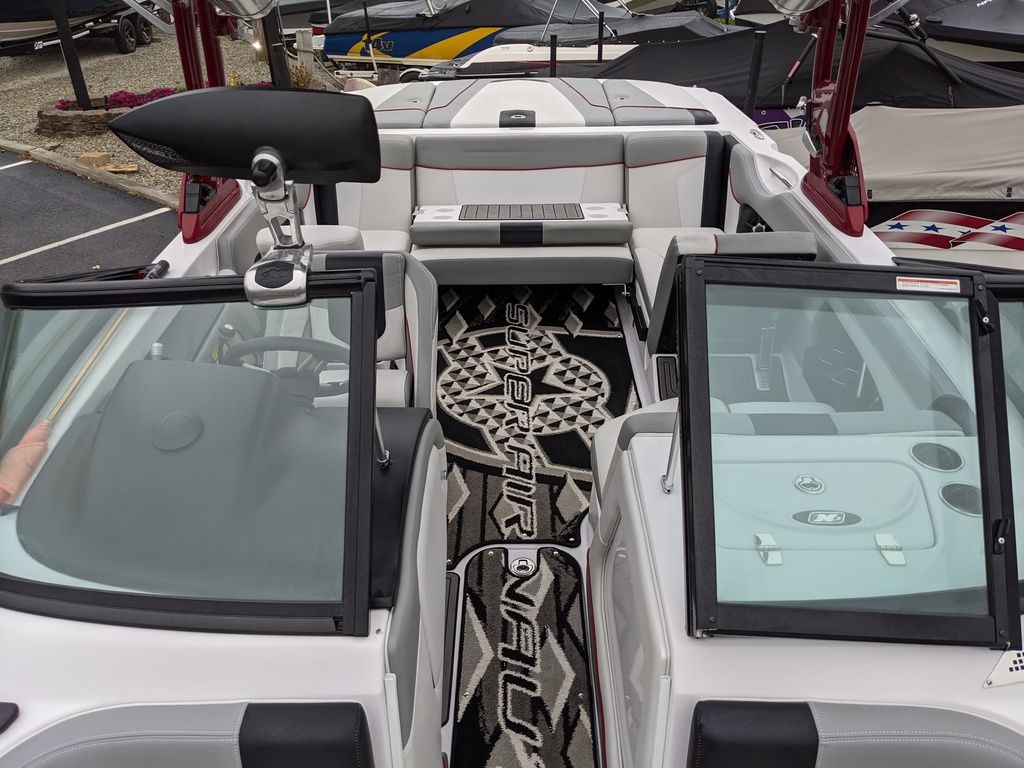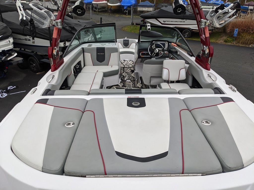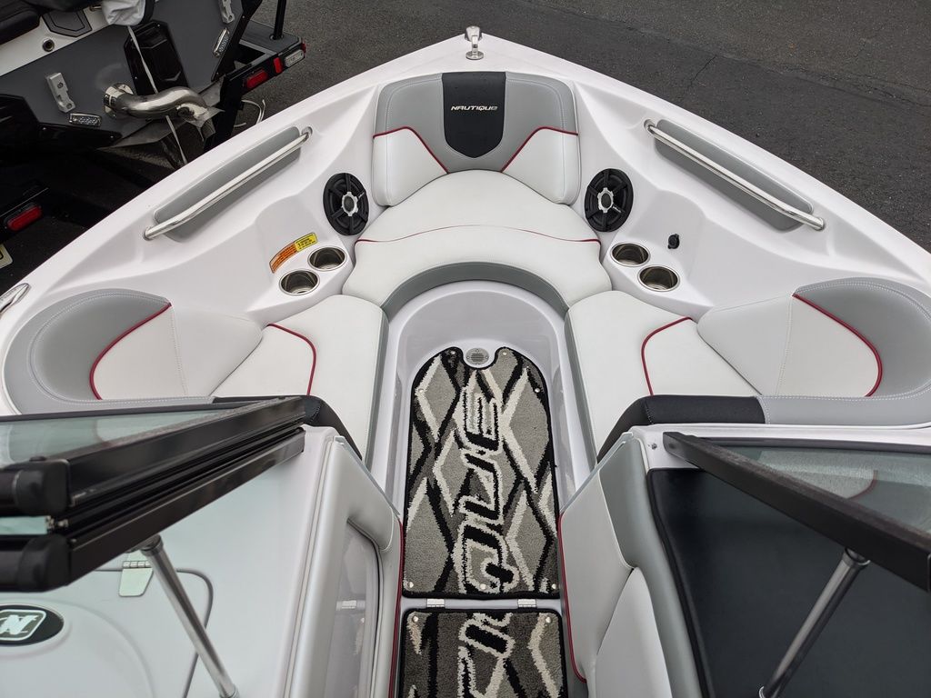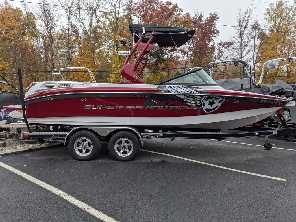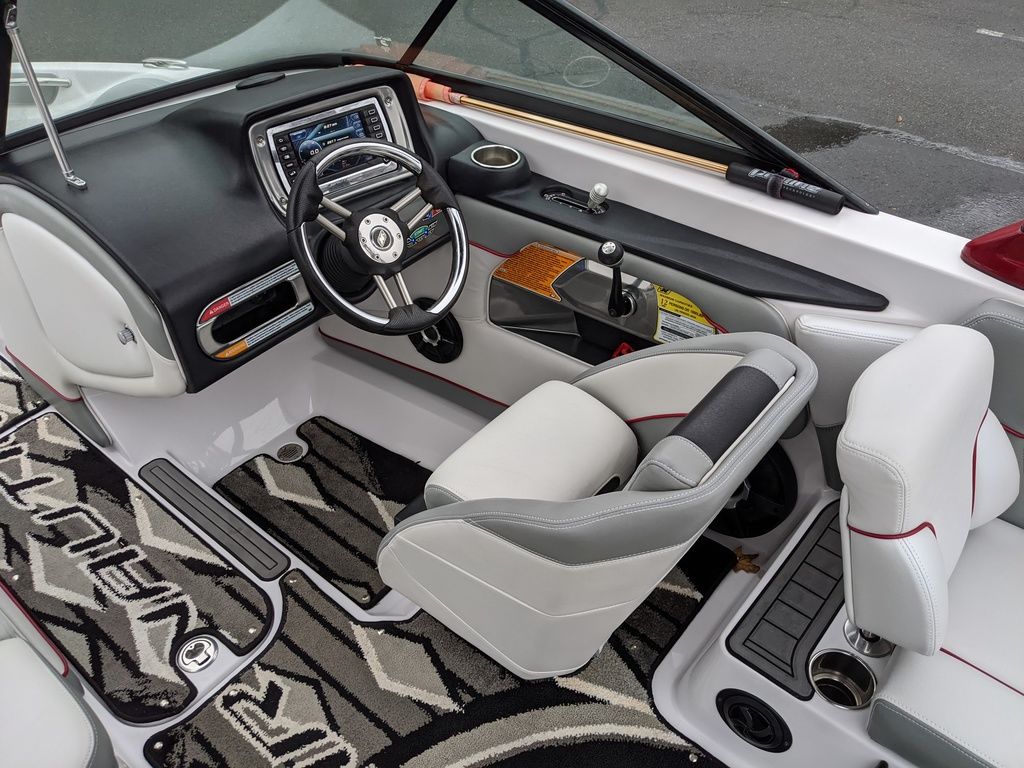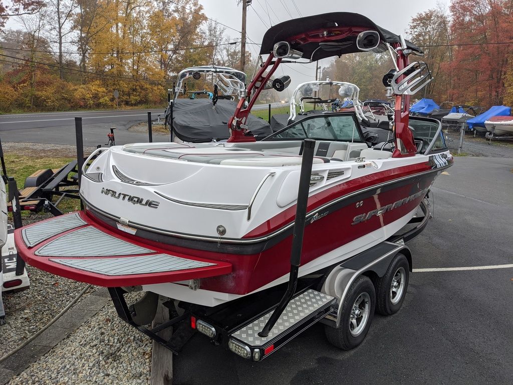This super clean 2012 Nautique 210 is up for sale with just 300 hours of freshwater use. Being purchased from us originally, back in 2012, this boat has been kept on a lift, stored indoors during the winter, and maintained by our service department since it was purchased. Equipped with the team edition package, this boat is capable of adding the Nautique Surf System, integrated right into the dashboard of the boat. This boat has a both the Horn Driver tower speakers and 6.5" polk speakers, Level II stereo upgrade, heater/ w defroster, upgraded carpet, fiberglass platform, Nautique bimini and mooring cover, with a matching Boatmate Tandem Axle Trailer