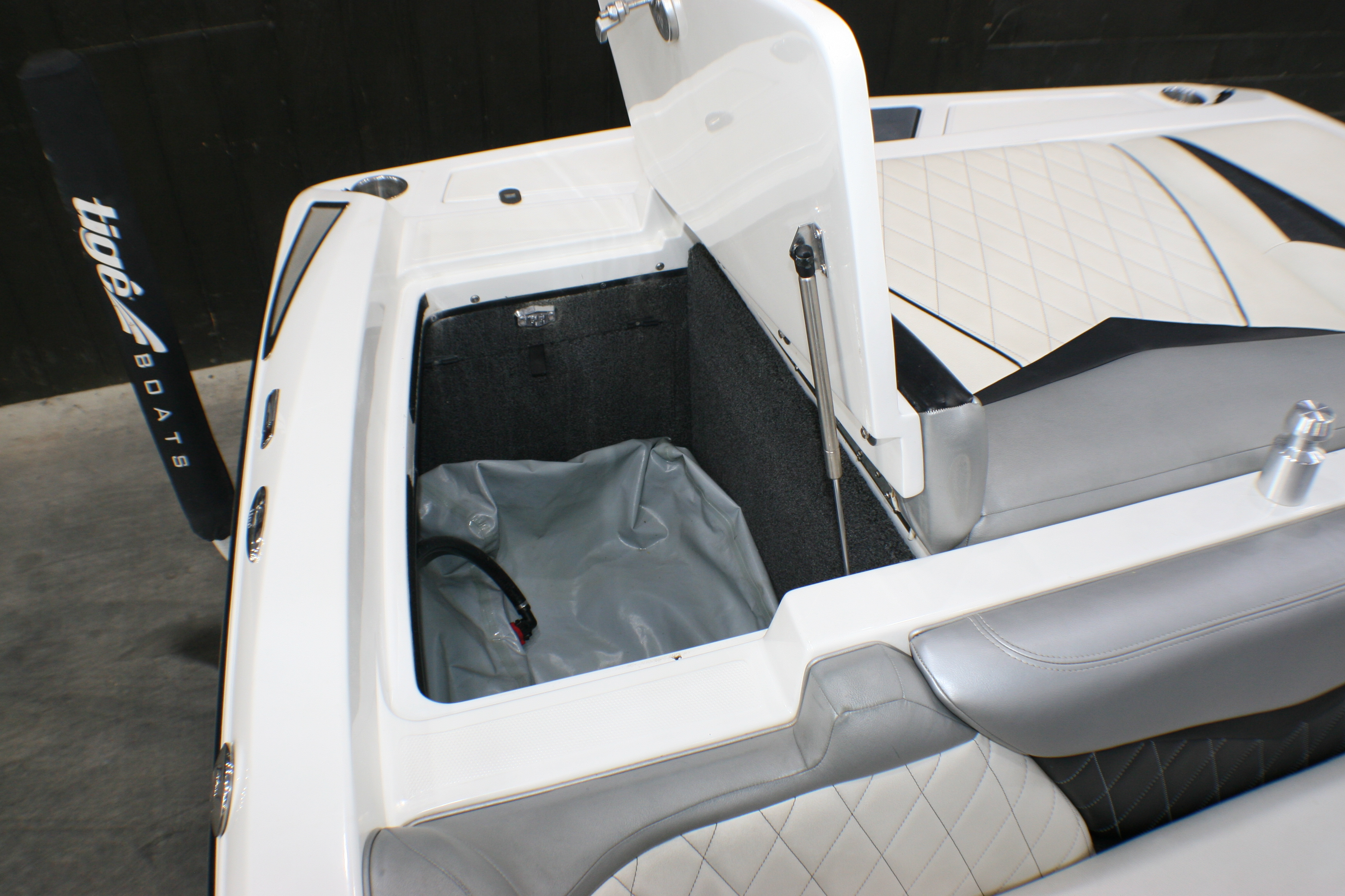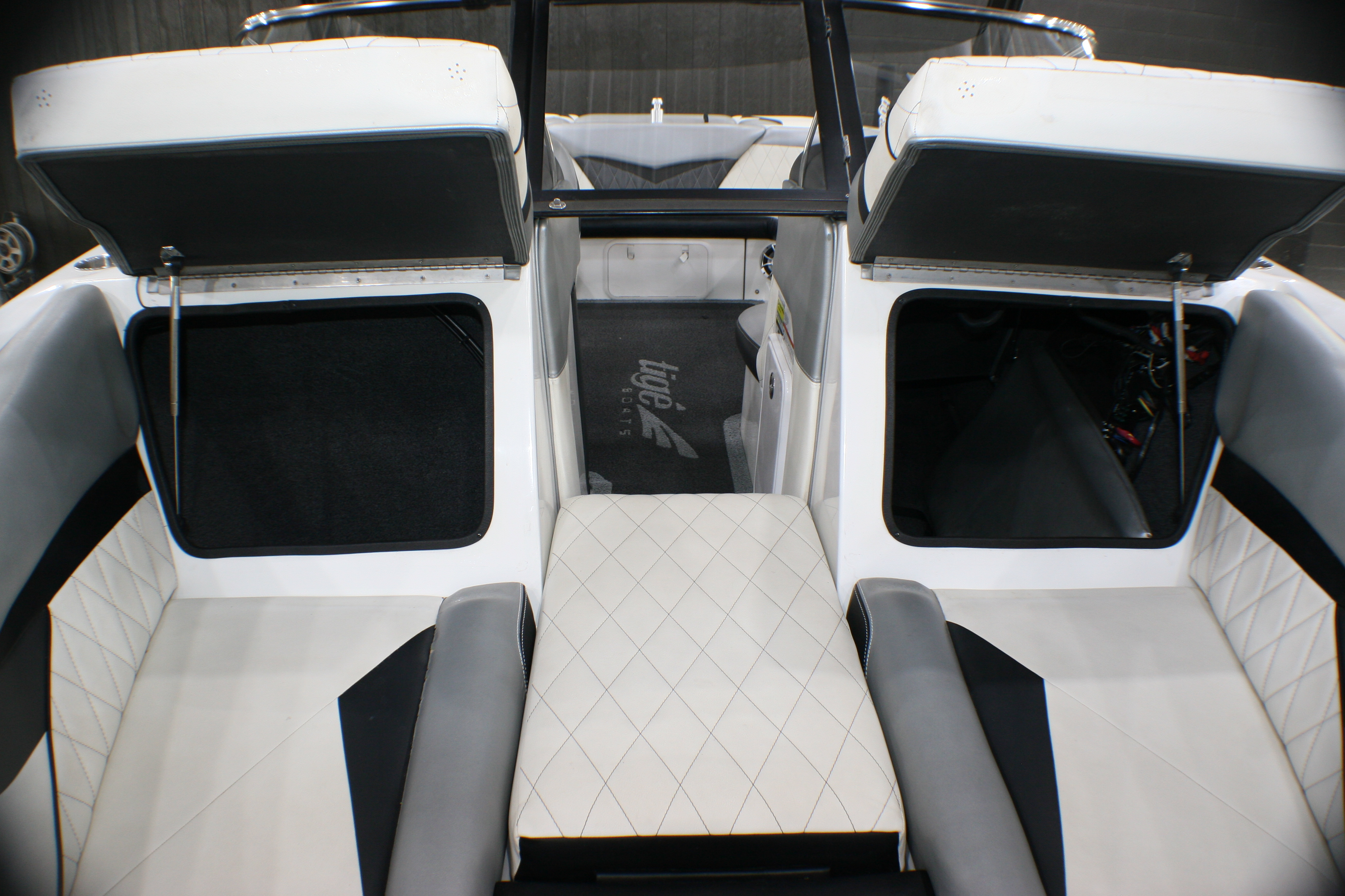 Tige has always put their designs and attention to quality, at the top of the food chain. With its massive wide-open bow design and the wraparound main lounge, there’s comfortable seating for up to 15 people. There won't be an empty seat once your friends and family catch sight of the size of the awesome wakes and standout SURFWAKE. Powered by a PCM EX343, length of 22’ and with plenty of storage for all your gear and beer, this boat is a show stopper.