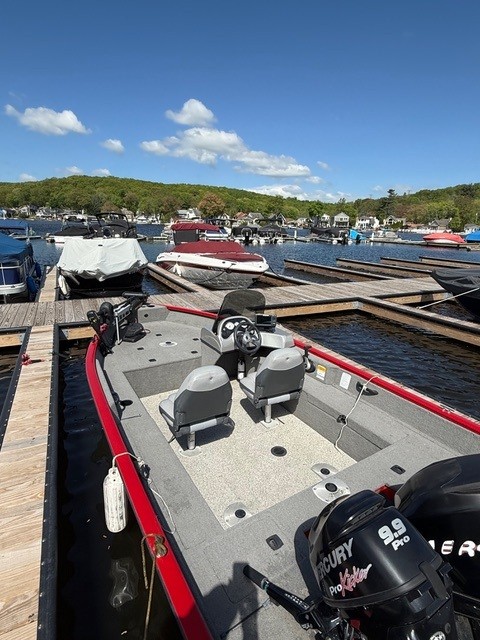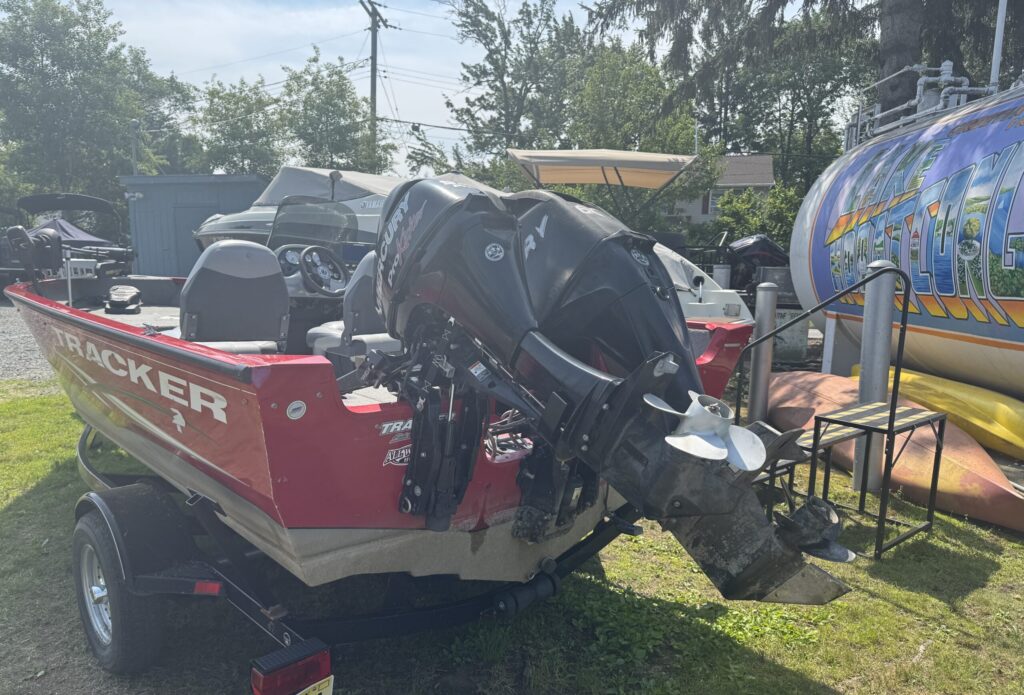 Turnkey Tracker with Trailer Included! Drop a line anywhere this summer with the Pro Guide V-16 – a rugged, all-welded Deep V aluminum fishing boat, measuring 16’6” in length. Built to handle a wide range of water conditions, it rides smoothly through chop while offering excellent stability.