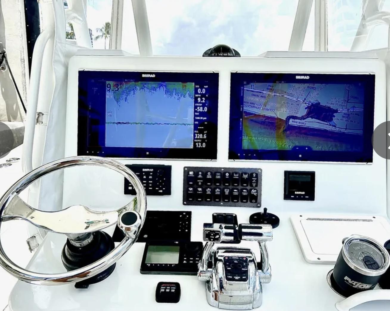 There are a total of 3 Simrad chart plotters. – 2 Simrad NSO's 19-inch displays and one 9-inch display, and a New Mercury Marine Vessleview Display