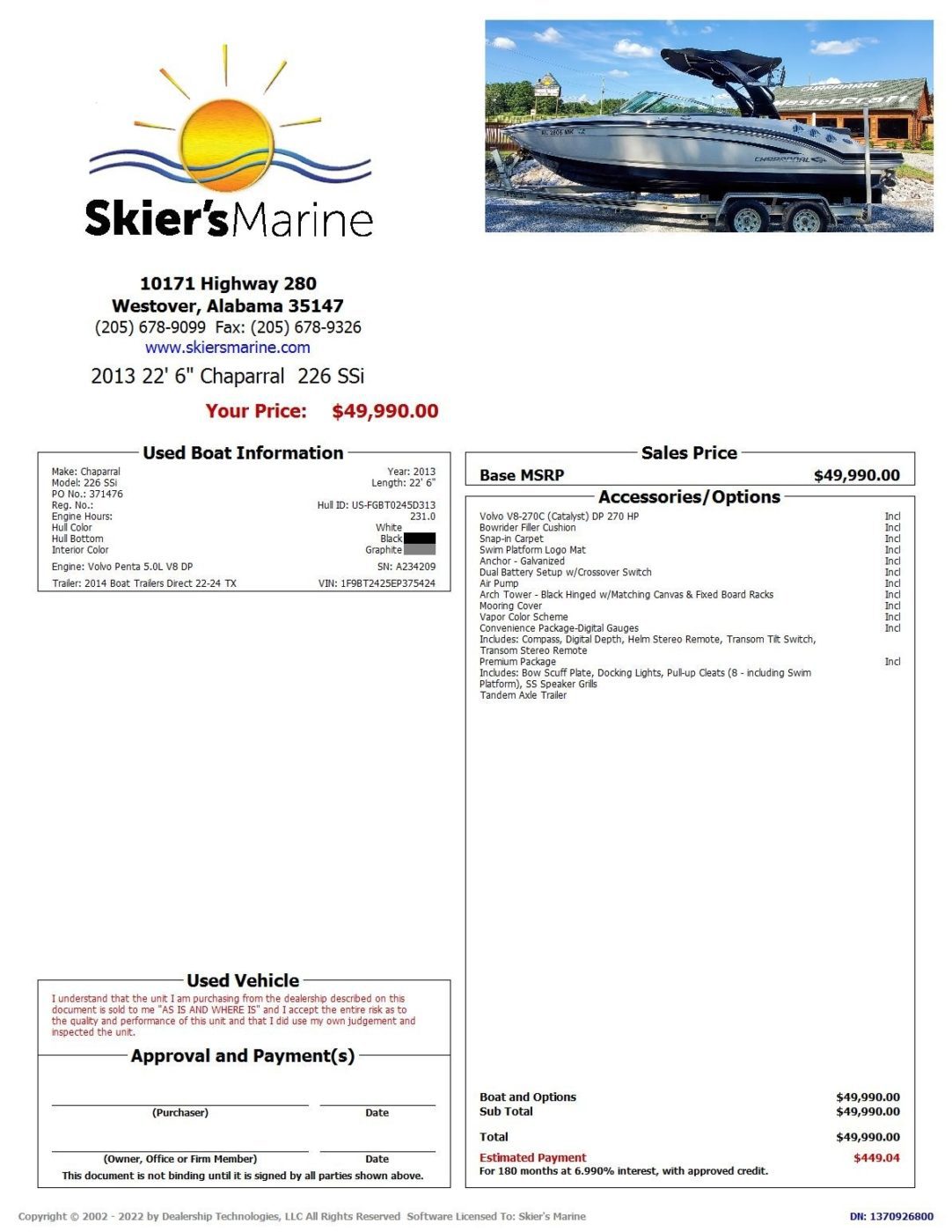 You can view a history report for this boat so you can shop with complete transparency.