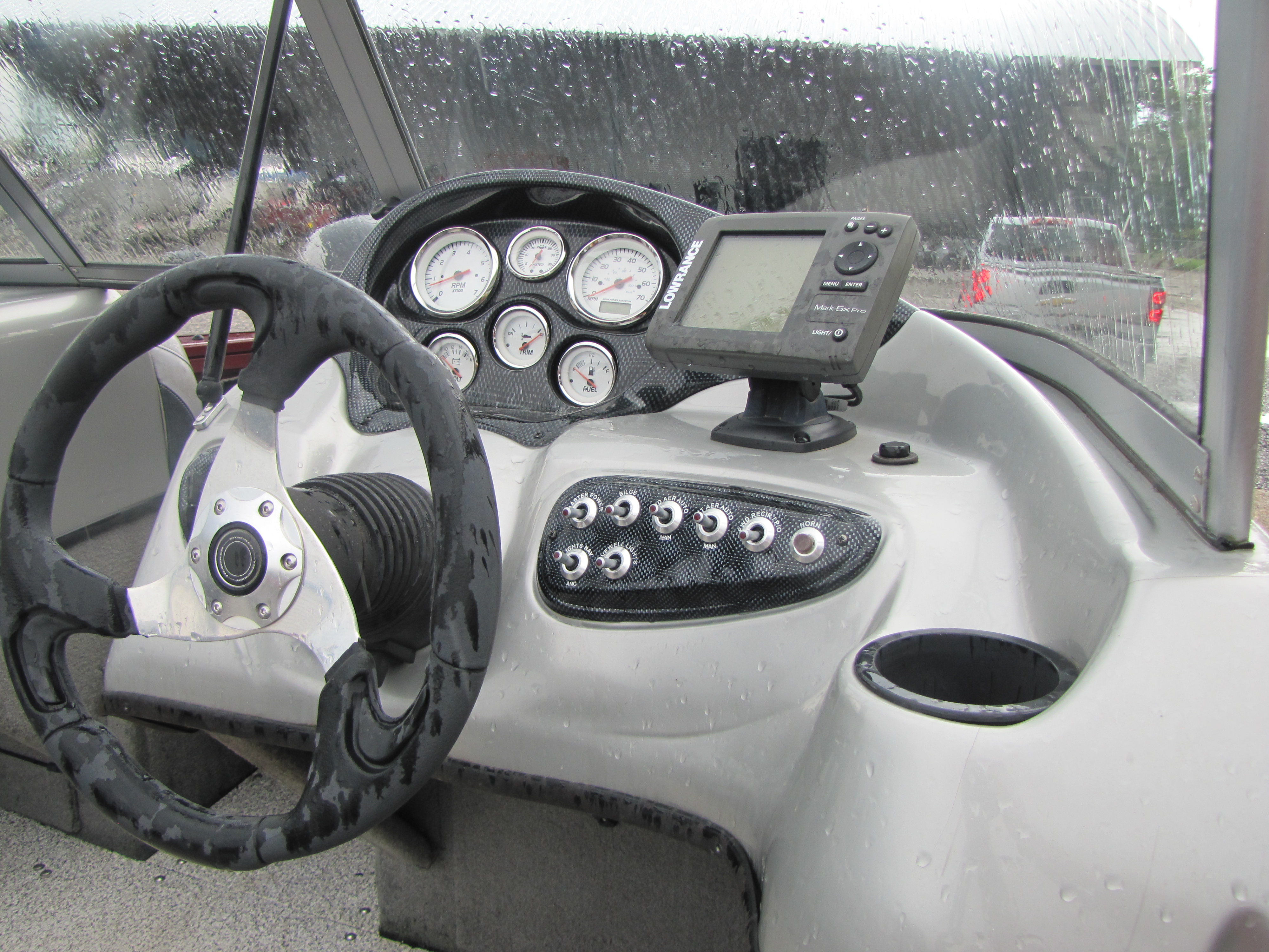 For serious fishing, you'll find a powerful 24-volt Minn Kota® trolling motor, Lowrance® Mark-5x fishfinder, an onboard battery charger and two livewells.