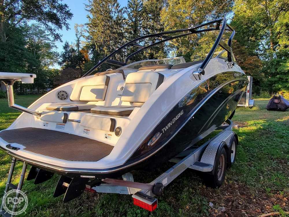 This boat is located in Farmingdale, New Jersey and is in great condition. She is also equipped with twin Yamaha engines that have only 120 hours.