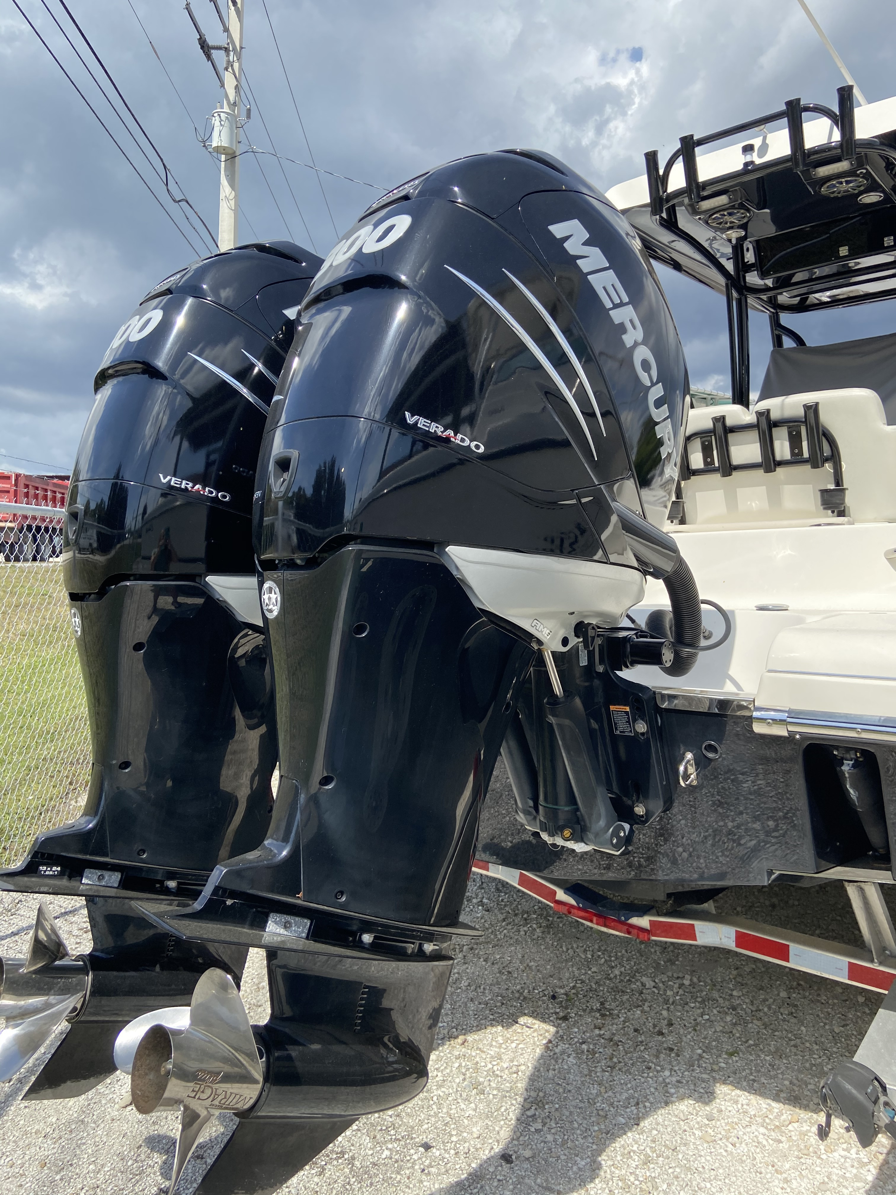 This boat is impressive! Comes with full mooring cover, Garmin GPS / Fishfinder / Chartplotter, hard top with powdercoat, fly by wire controls, & stainless propellers.