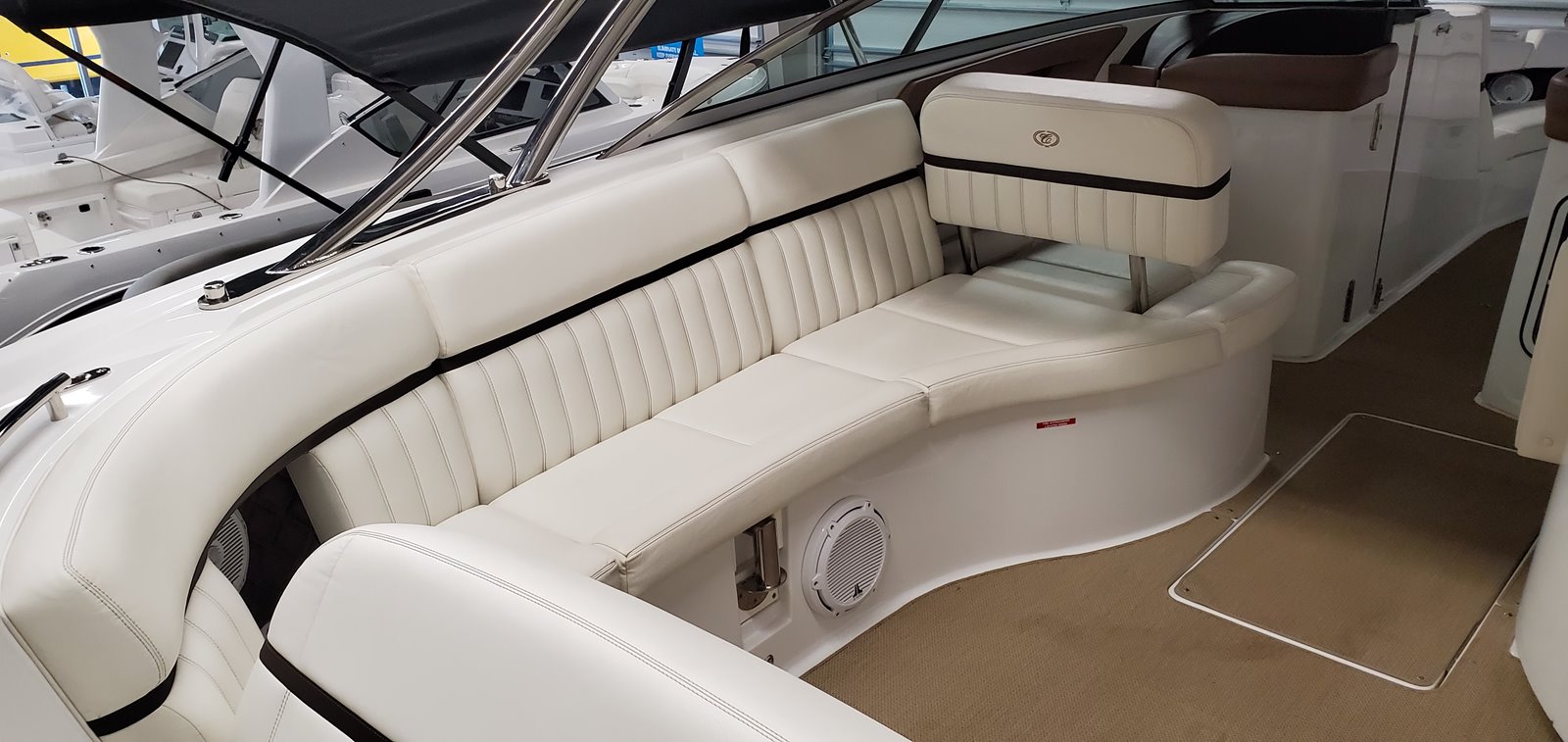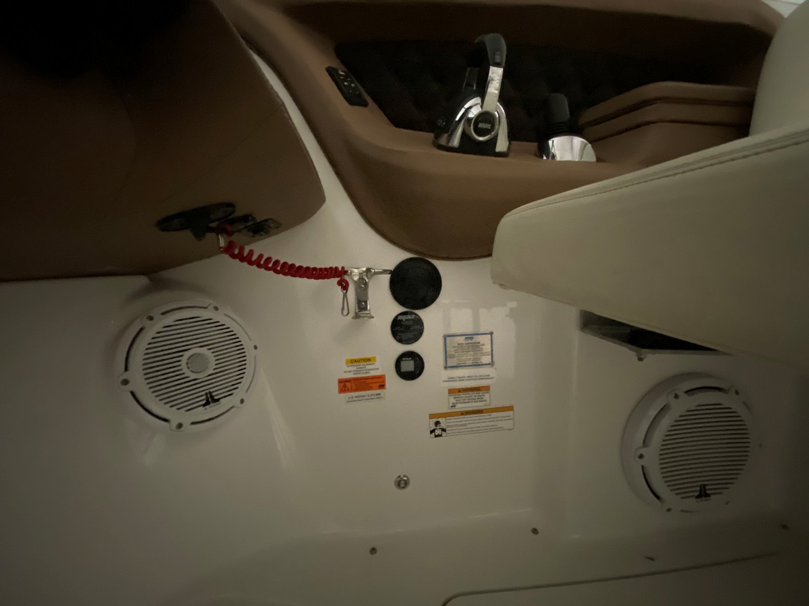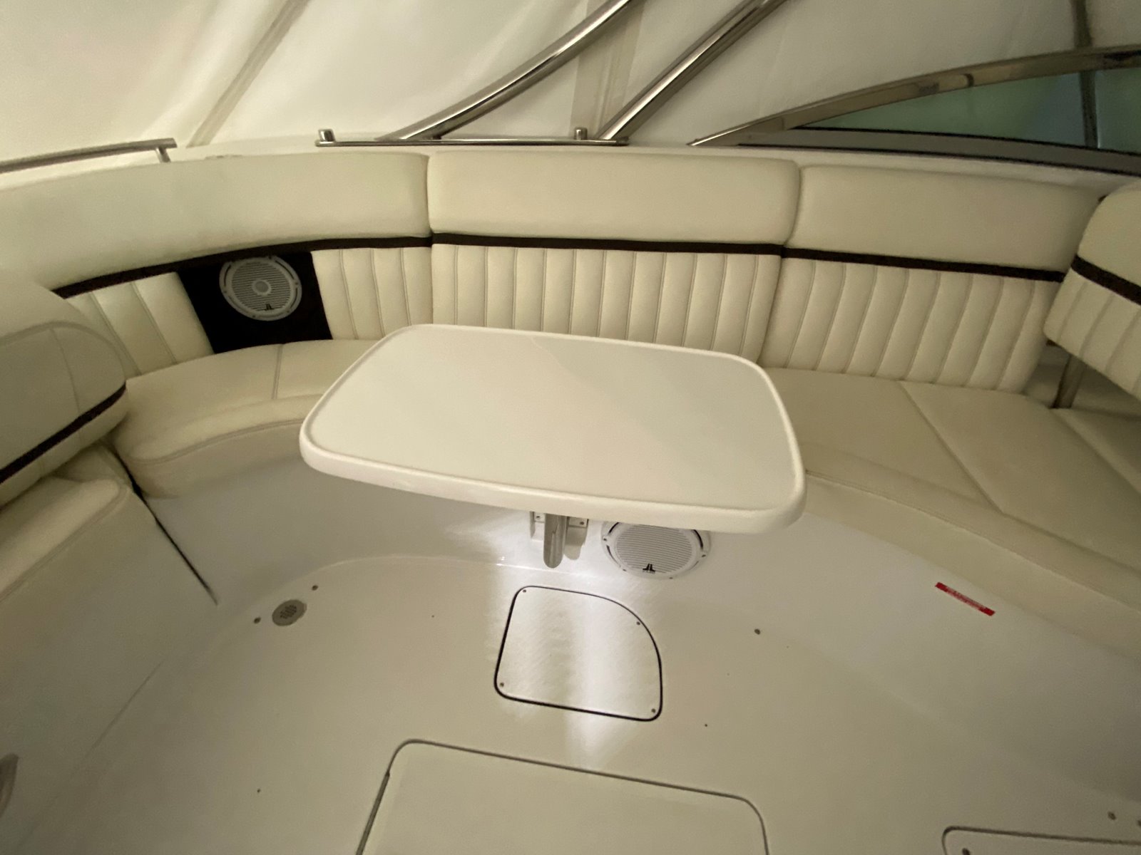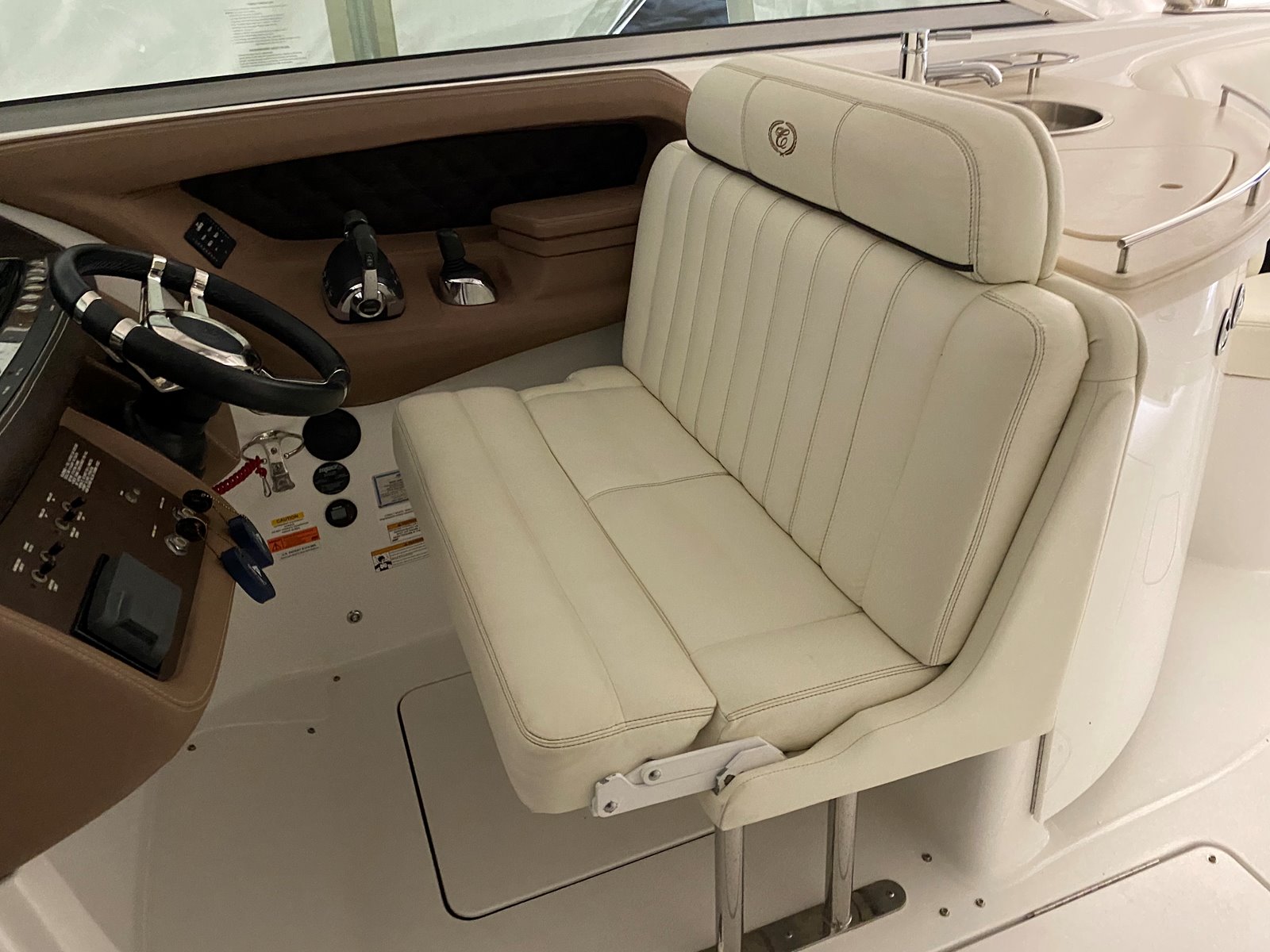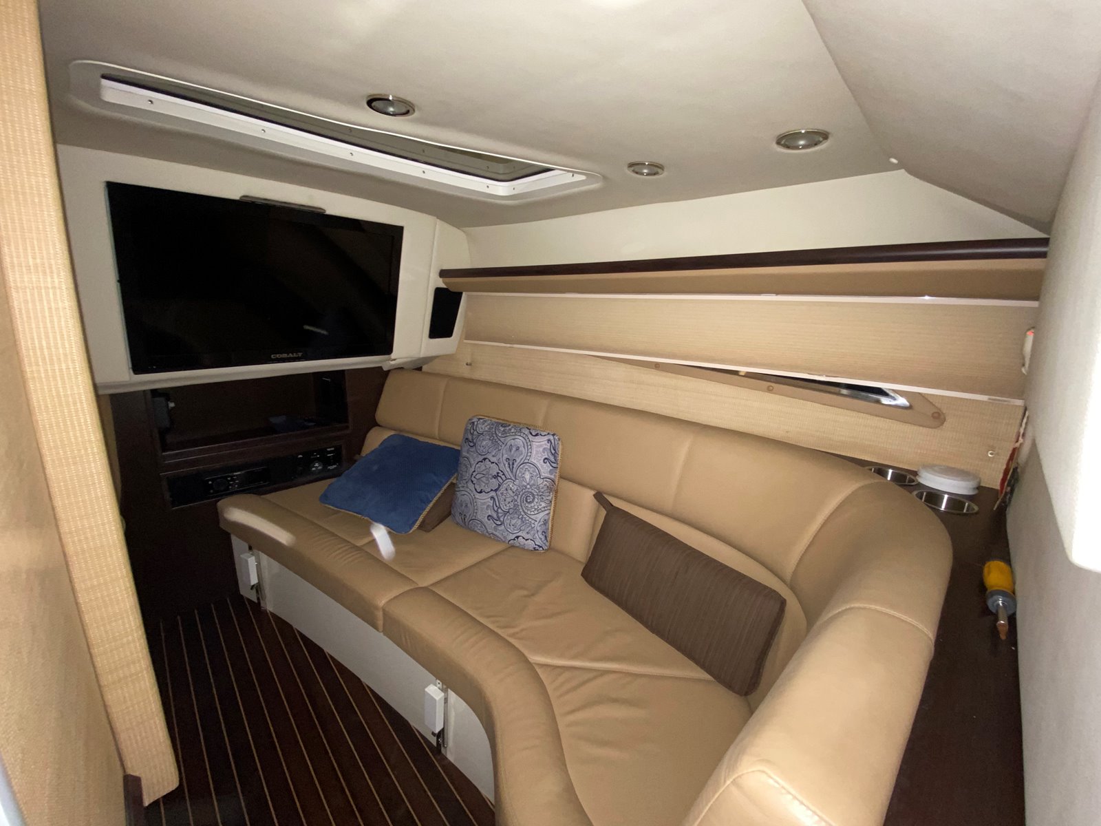 This is one IMPECCABLE example of this gorgeous boat. This must rate as one of the ultimate bow-riders out there, with the uncompromising build quality of Cobalt. Deck comforts abound, as well as a full head, and cabin capable of sleeping two in comfort with flat screen entertainment, air-conditioning and Kohler generator. Add to this the full zip-on canvas (new in 2020) providing all-weather standing height enclosure of the deck, and privacy if staying onboard in a marina.