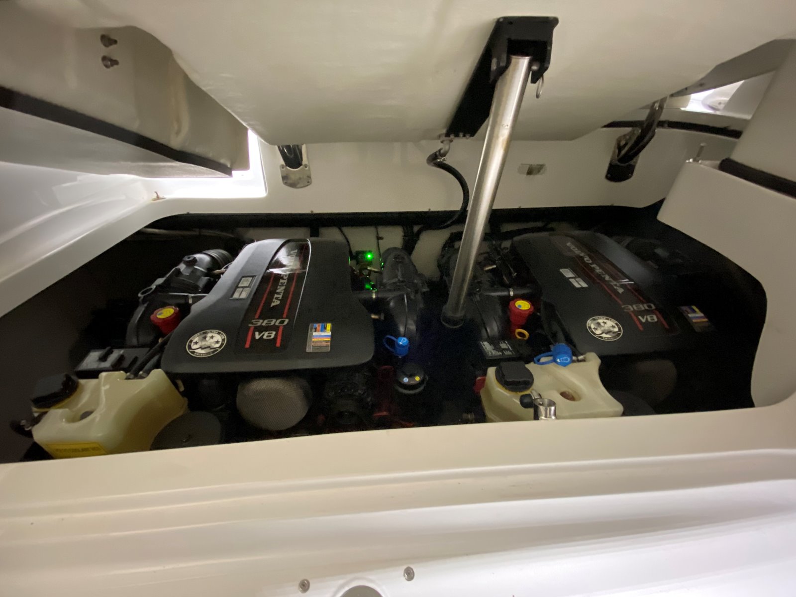 380HP Volvos (freshwater cooled) with Ocean-X drives (just 350 hours) and joystick control, this boat is capable of bay cruising at speed and in comfort even on a choppy bay. Having always been lift-kept, and stored indoors over winter by the current owner, I would defy anyone to find a pre-owned boat in better condition.