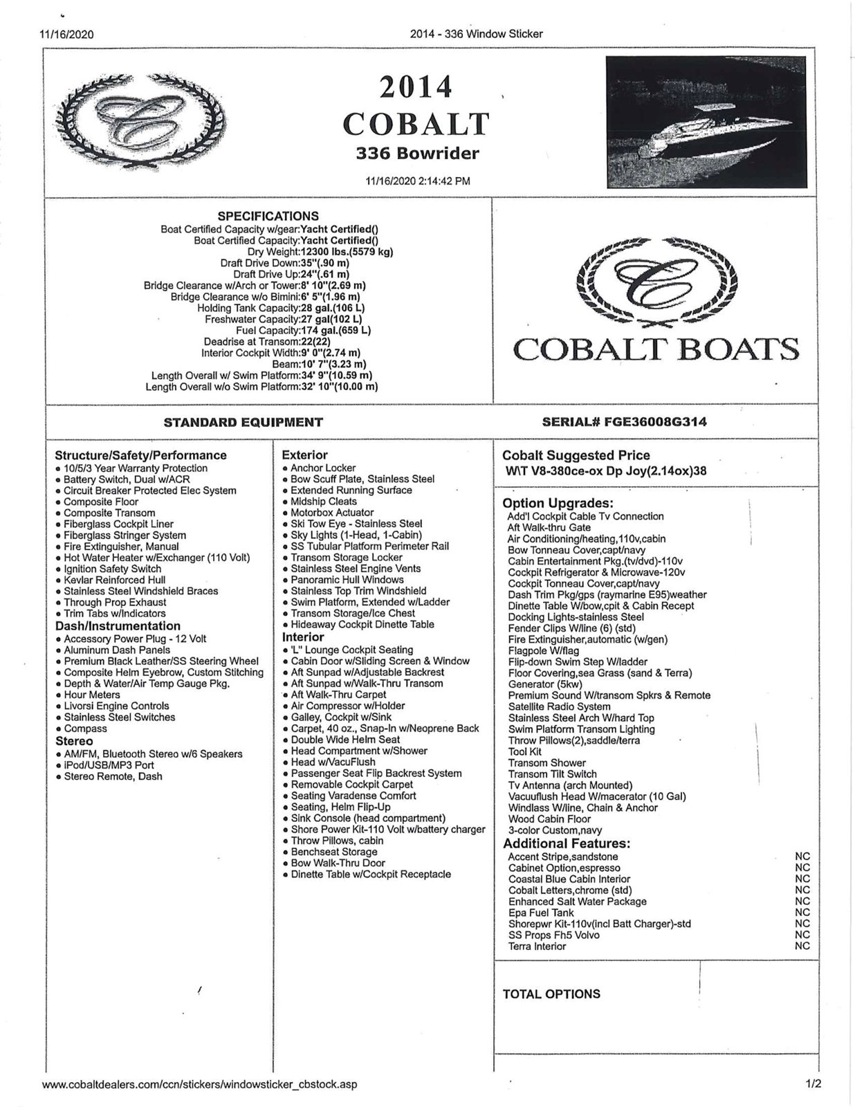Too many inclusions and options to list, but original build sheet available along with transferable warranty. One unique add-on is the standing height zip-on mooring cover. Ideal for protection from the elements and privacy when on the dock.
