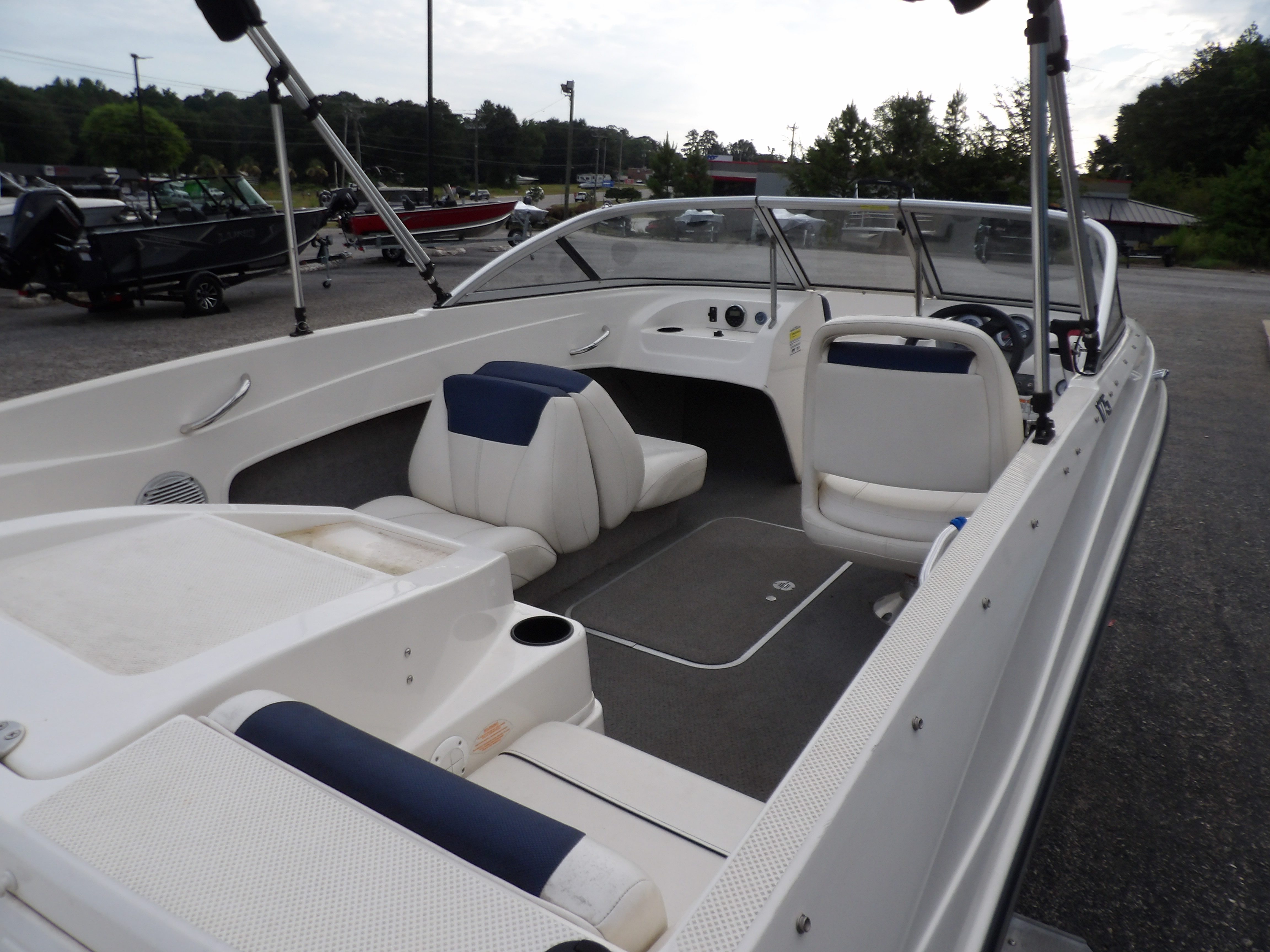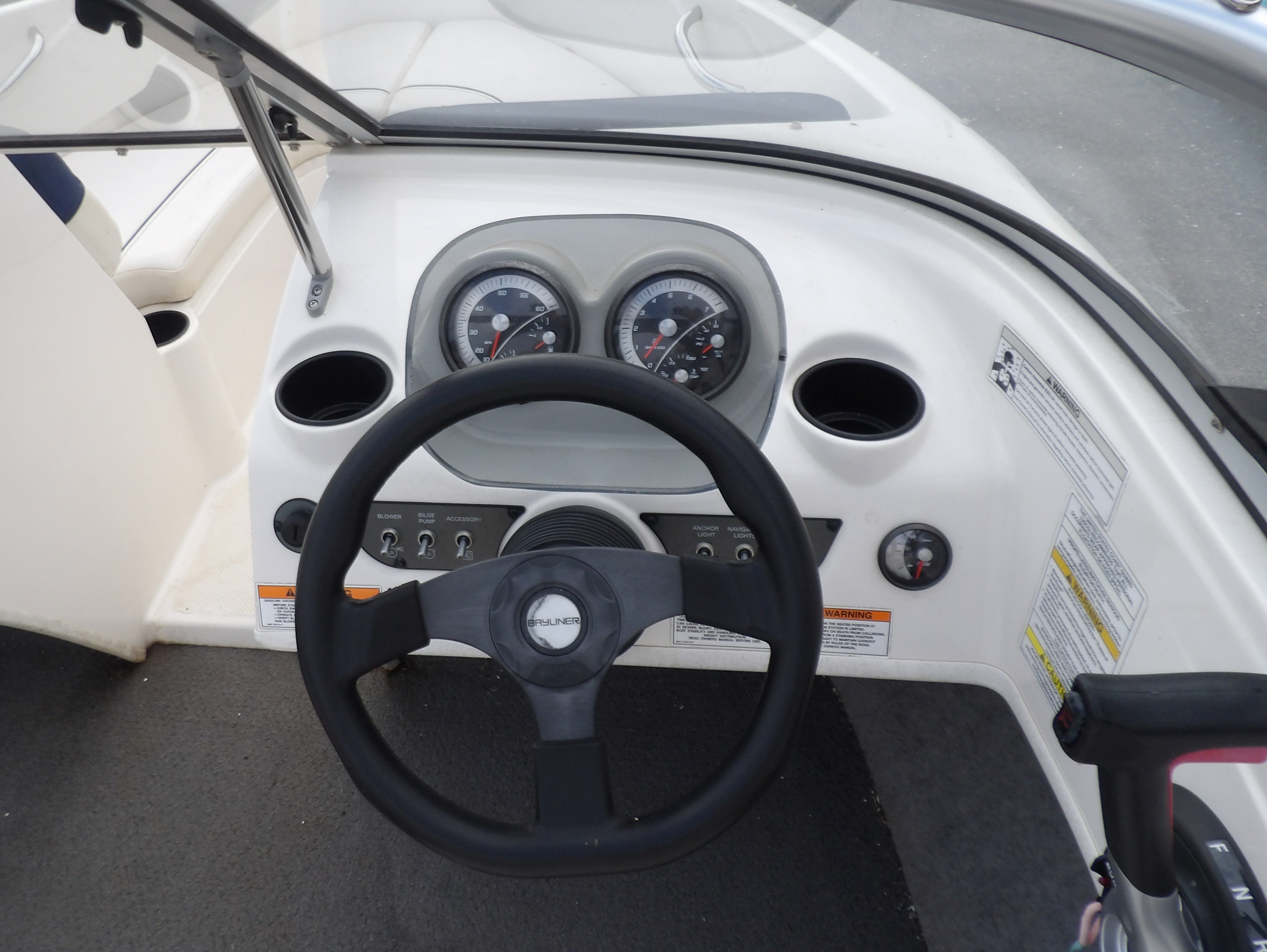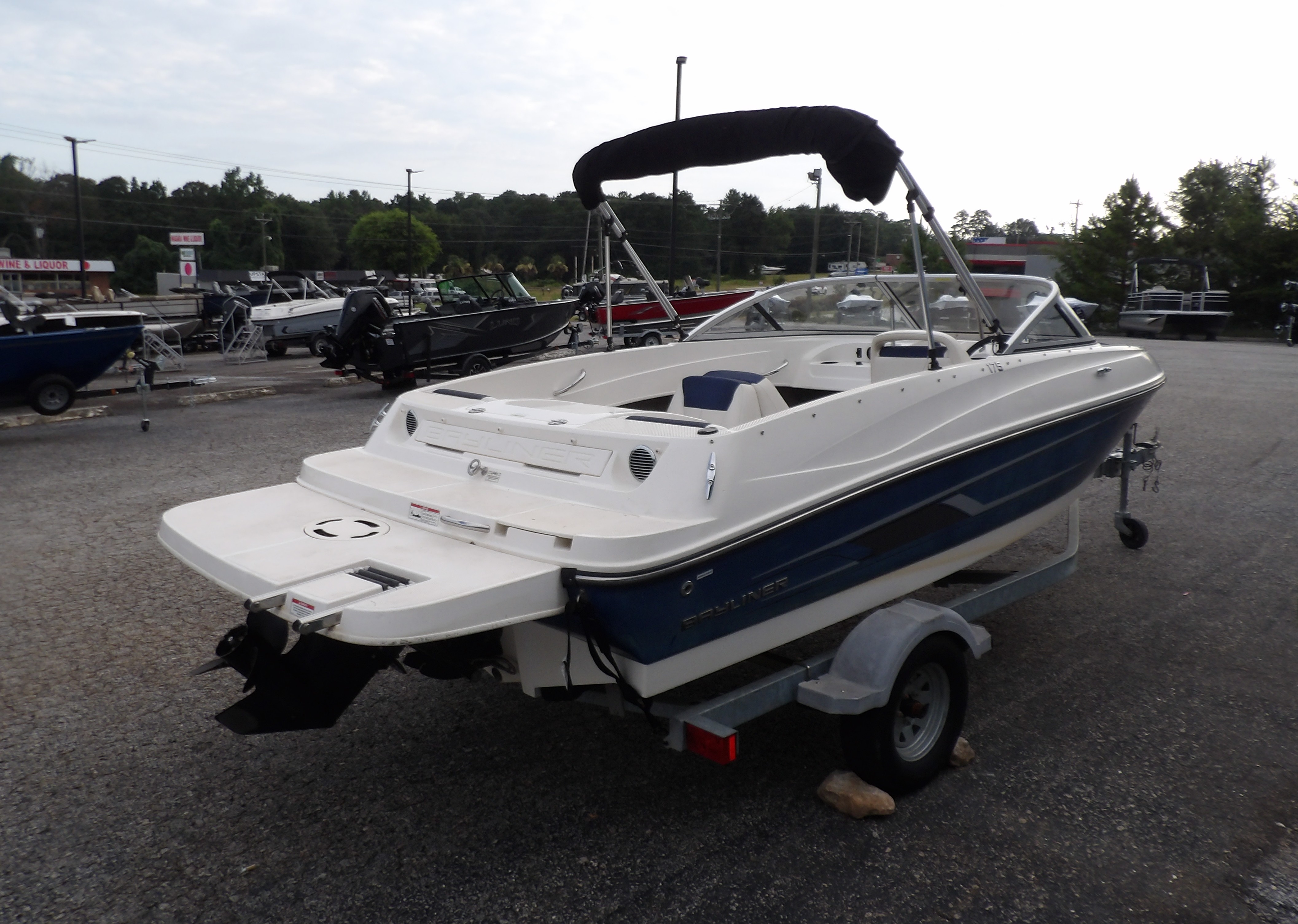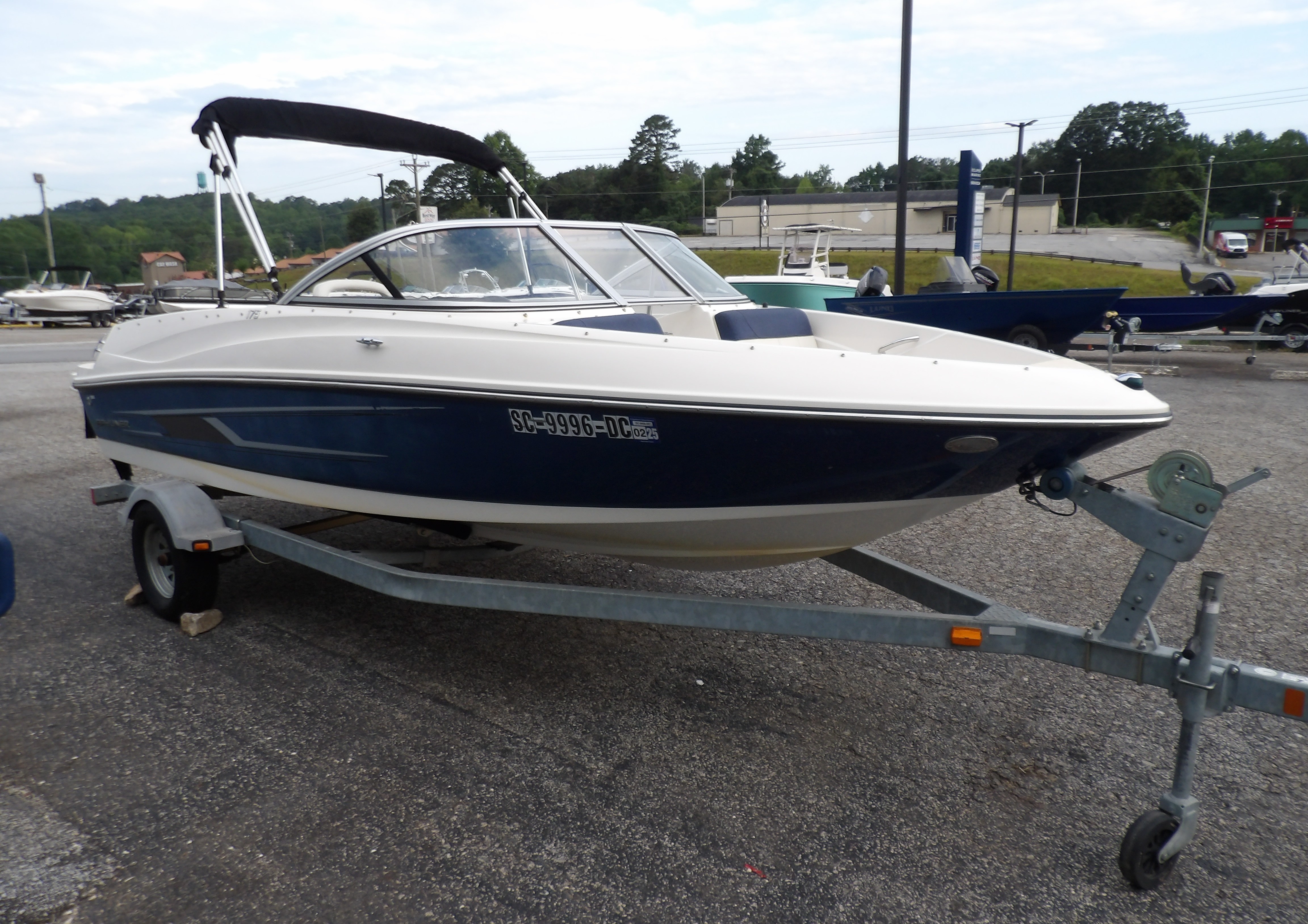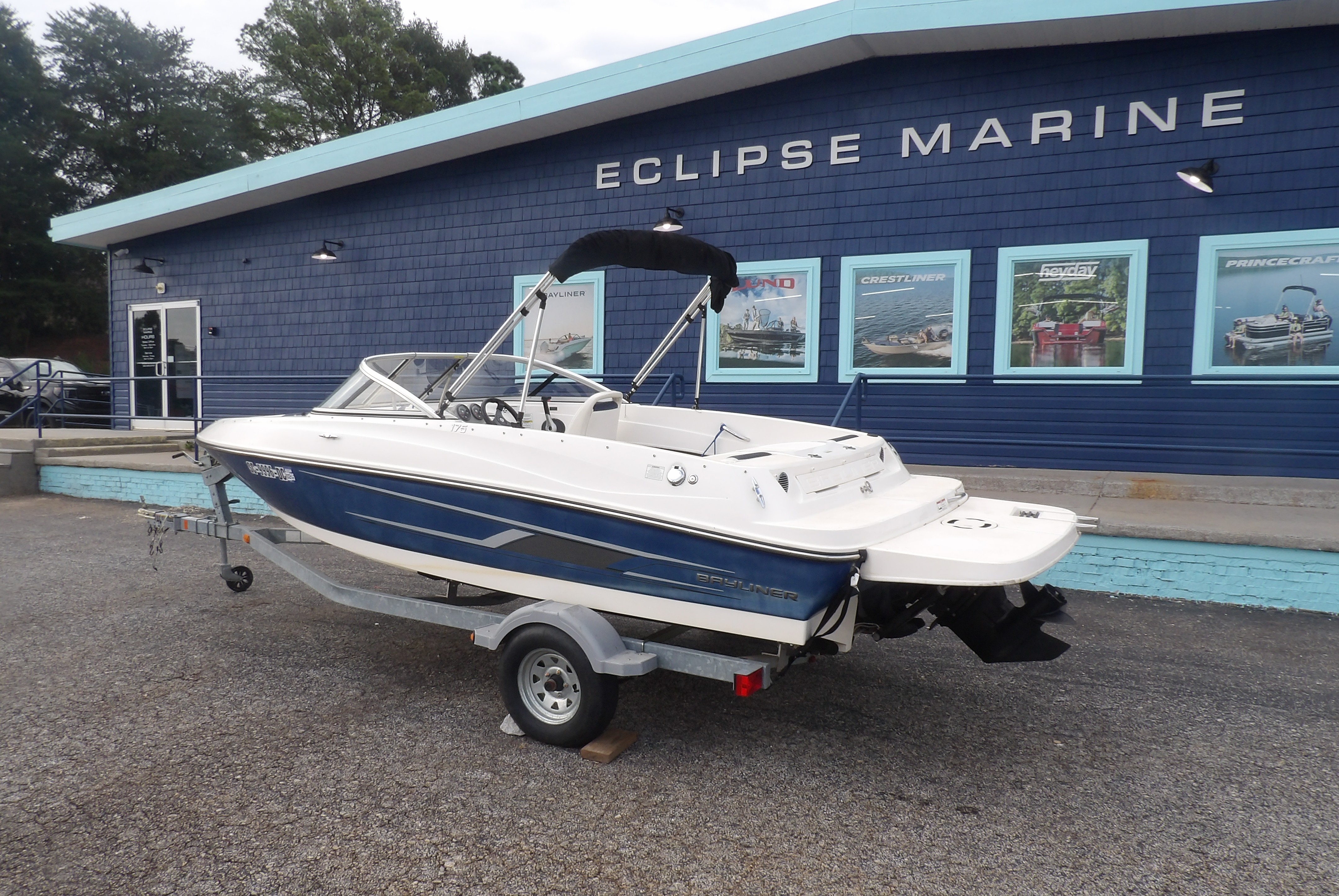 Previously enjoyed 2015 Bayliner 175 Bowrider in blue & white- with Warranty! The boat features power from a fuel efficient, yet powerful 3.0 liter Mercruiser I/O motor. Sits on a galvanized single axle bunk trailer with swing tongue. Comes with a bimini top. Great boat for cruising, pulling the kids on tubes, or just floating in your favorite cove. This Bayliner boat comes with just under 2 years of warranty on the boat/ motor package at the time of this listing. For more details, the latest in pricing and incentives give us a call at Eclipse Marine Seneca (864) 670-2250 or stop in and see us at 305 US Hwy 123 Seneca, SC. Engine Type: 3.0L MerCruiser MPI A1 ECT 135 hp