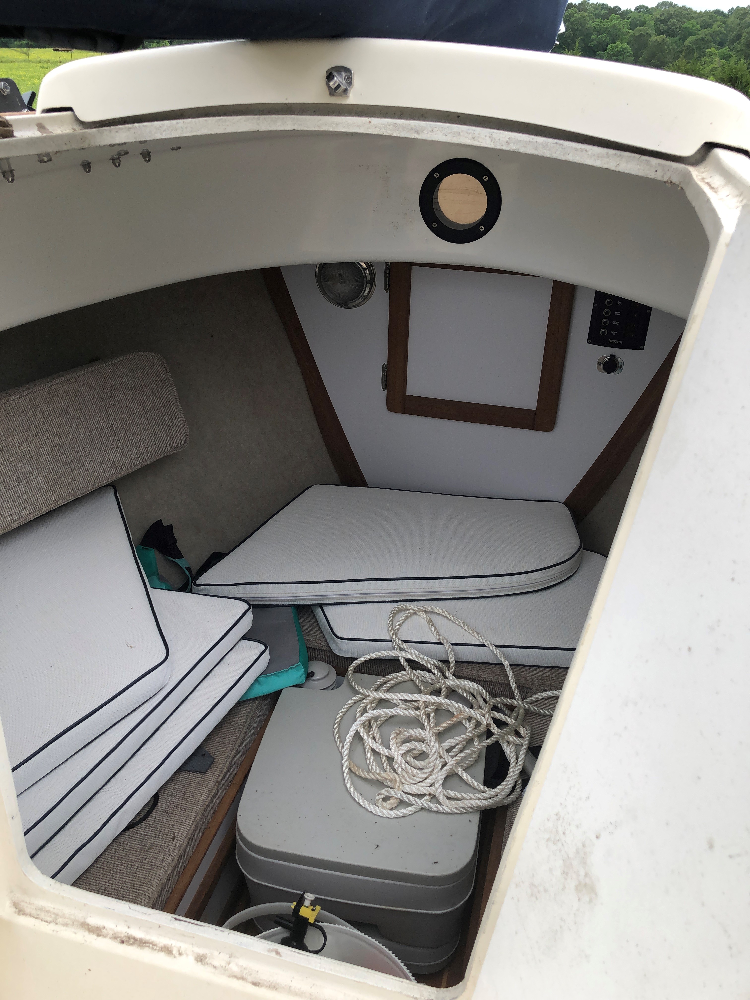 Price includes cockpit cushion package, sail cover, Anchor, SS Bimini, Built-in insulated Ice Box, Custom Hull Navy Blue color.Sailed only 4 times.