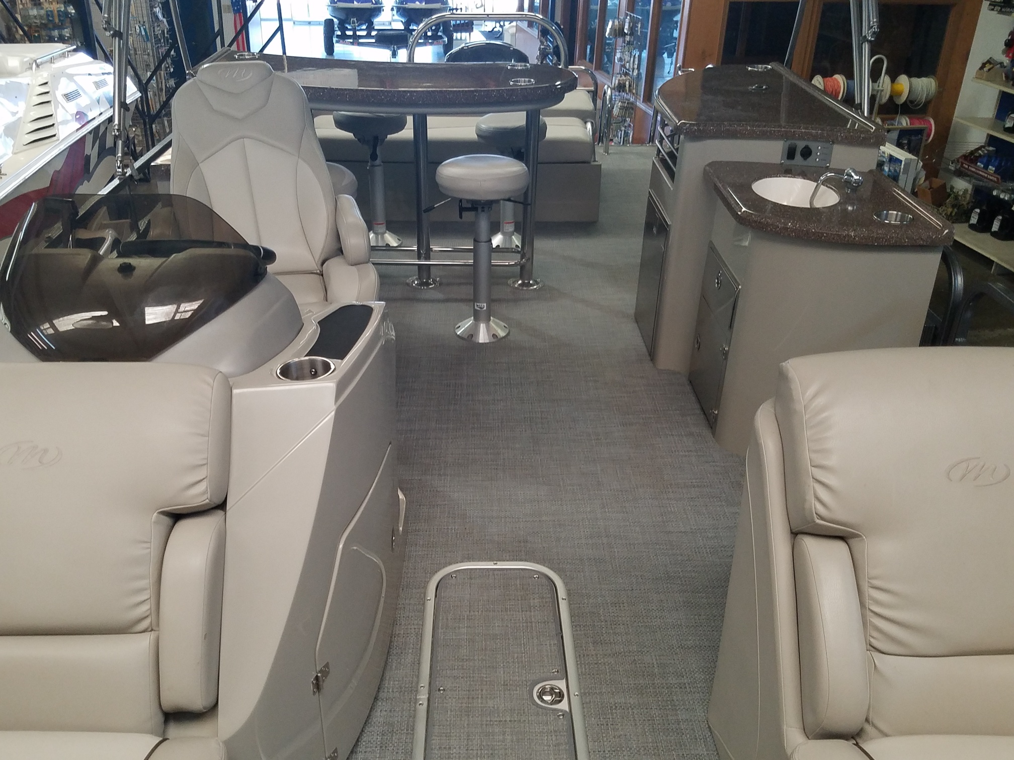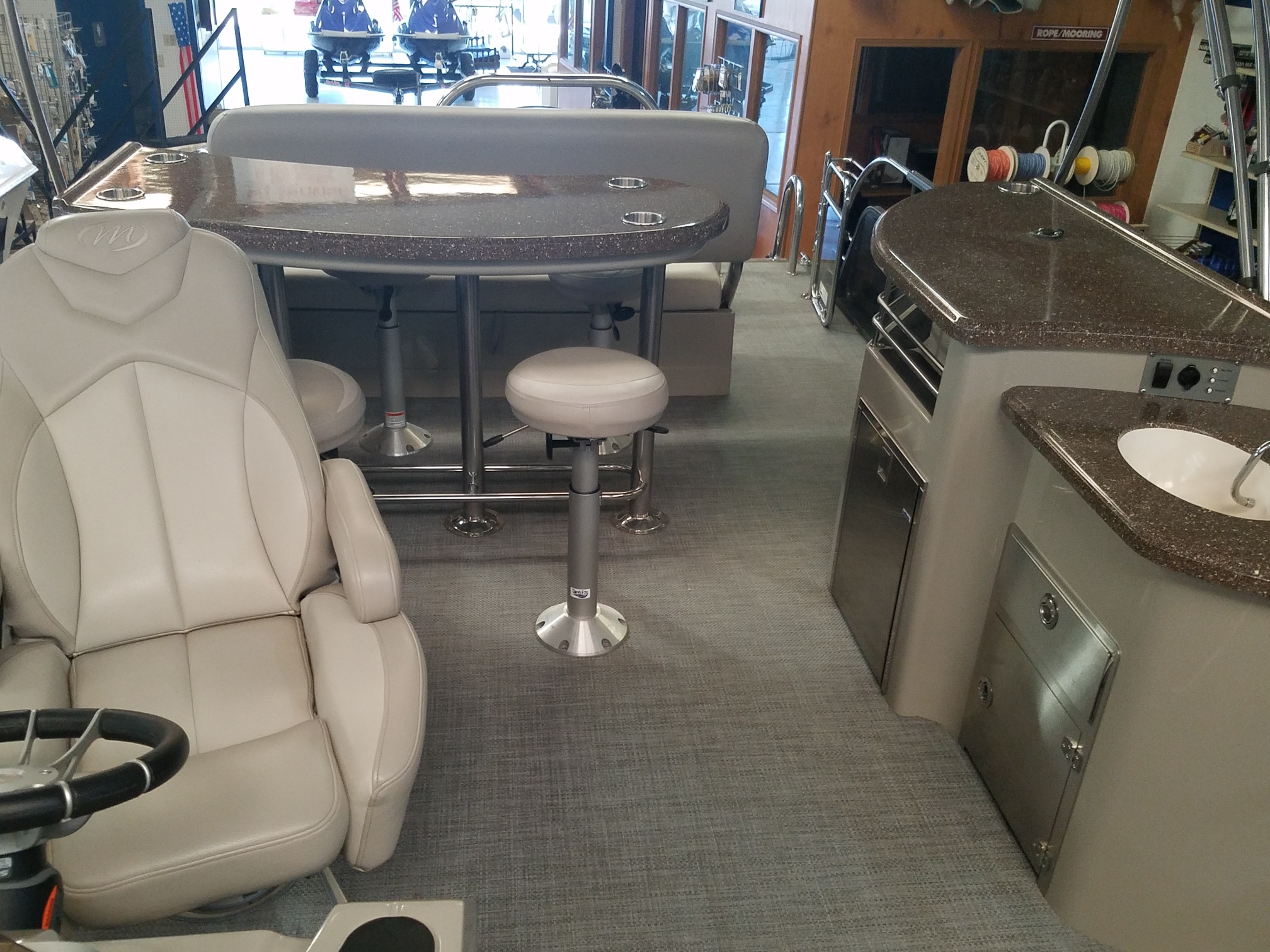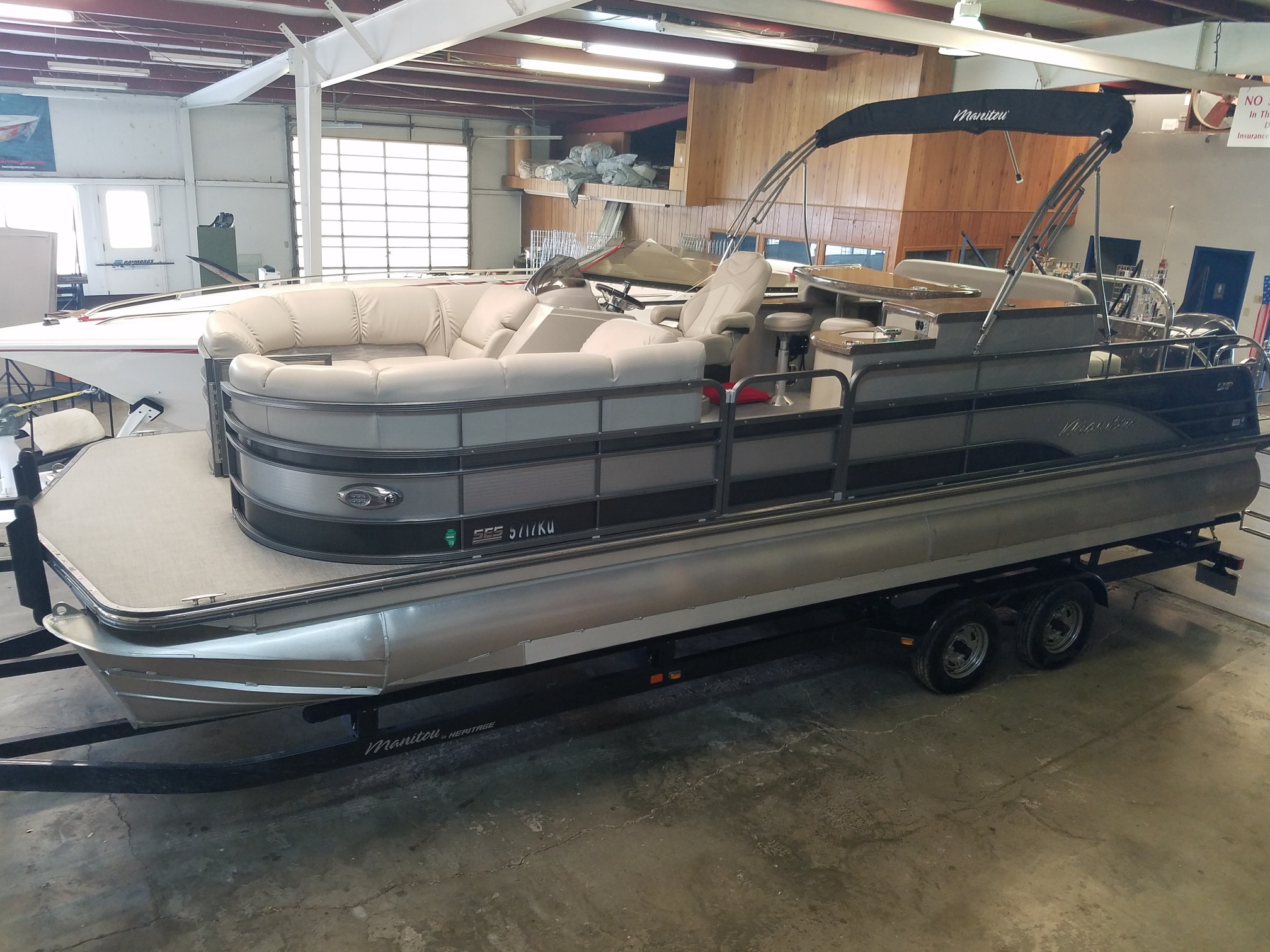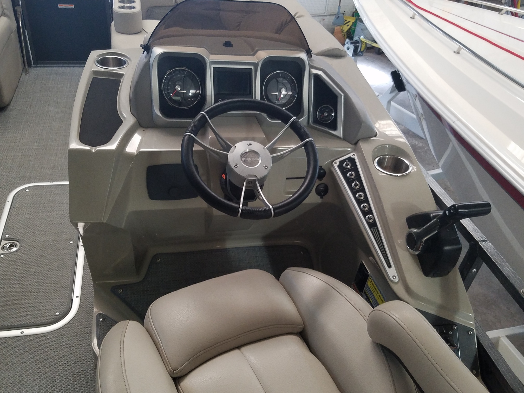2015 HERITAGE TANDEM AXLE TRAILER WITH BRAKES, MOORING COVER, BIMINI TOP, TILT WHEEL, LADDER, SKI TOW, GPS DEPTH FINDER, SINK, REFRIGERATOR, WET BAR, TRASH CAN, LOUNGE SEATS, BAR STOOL SEATS, WATER PUMP, HYDRALIC STEERING, PREMIUM BLUETOOTH SOUND