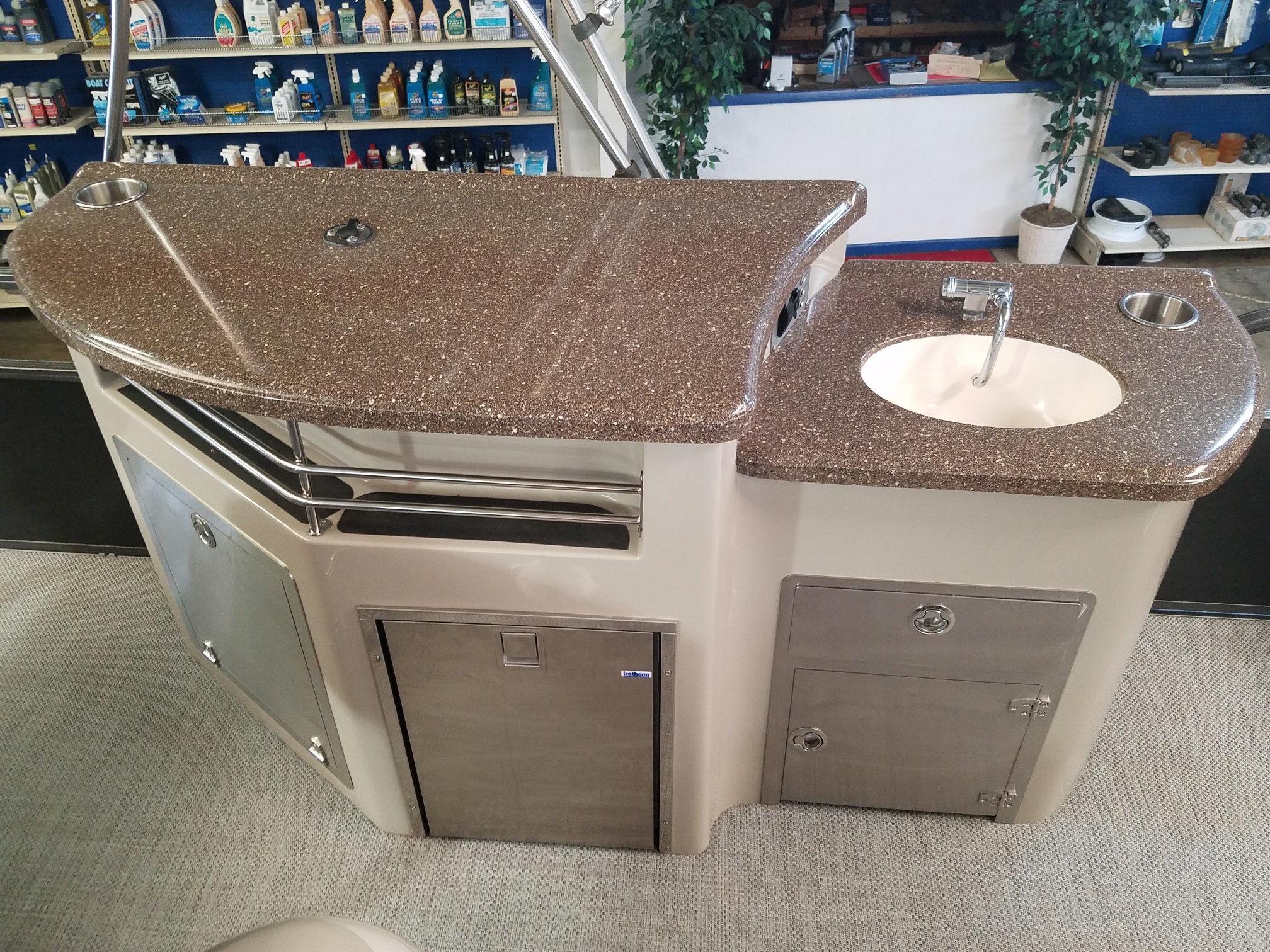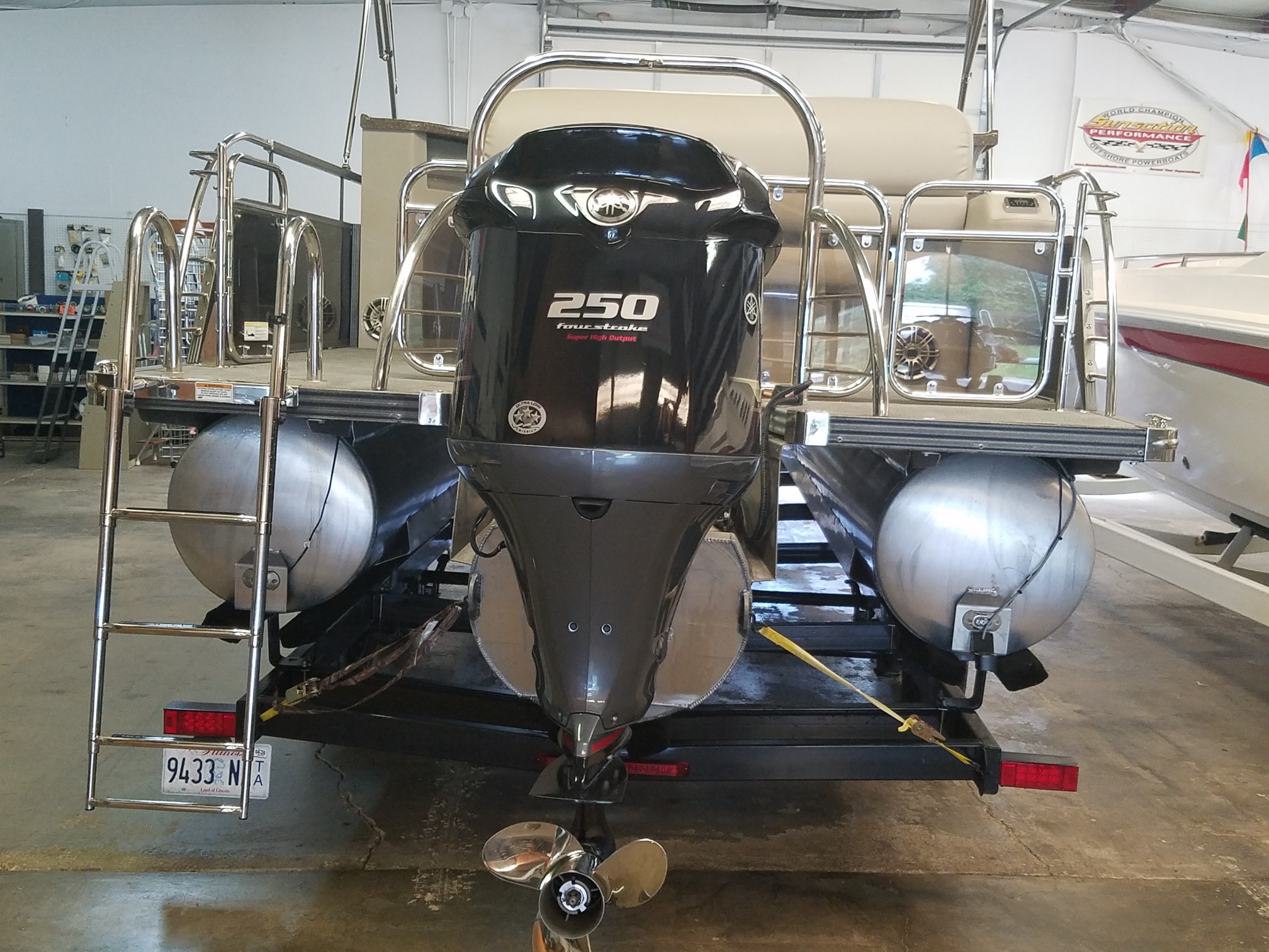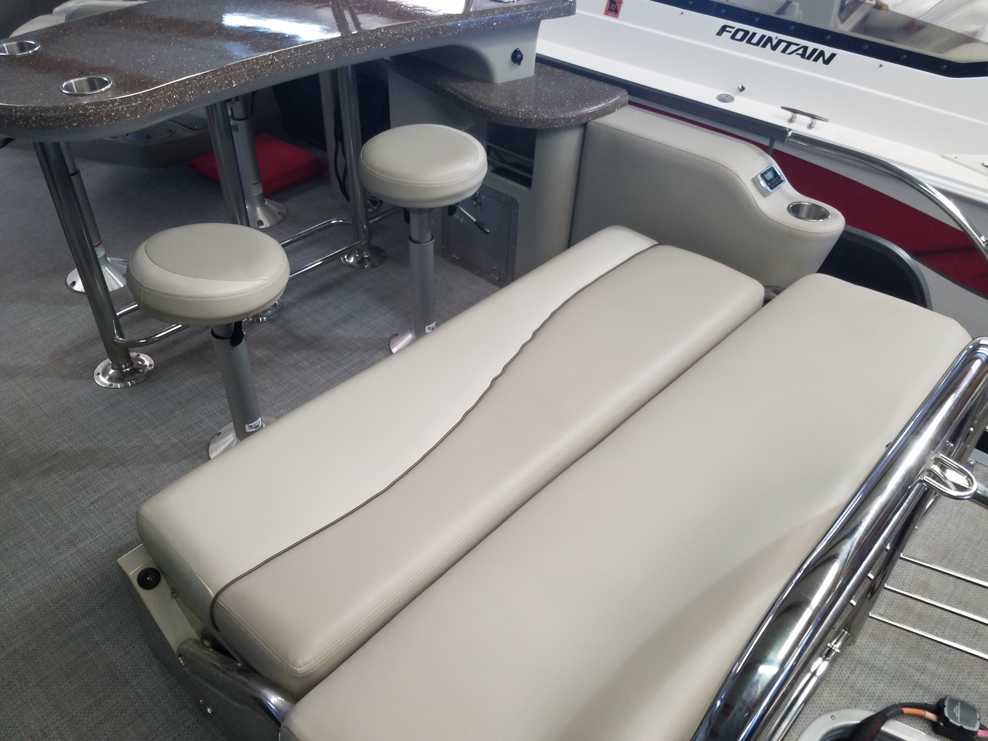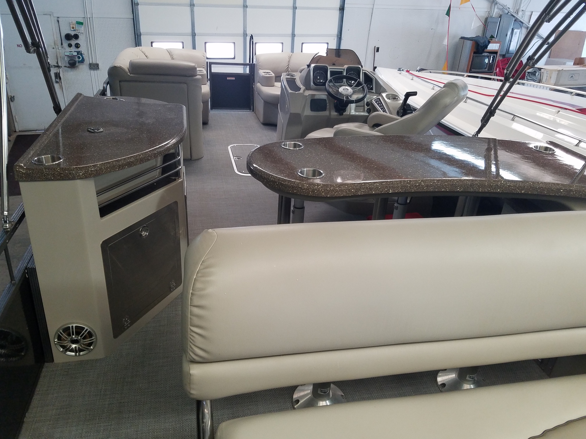 2015 HERITAGE TANDEM AXLE TRAILER WITH BRAKES, MOORING COVER, BIMINI TOP, TILT WHEEL, LADDER, SKI TOW, GPS DEPTH FINDER, SINK, REFRIGERATOR, WET BAR, TRASH CAN, LOUNGE SEATS, BAR STOOL SEATS, WATER PUMP, HYDRALIC STEERING, PREMIUM BLUETOOTH SOUND