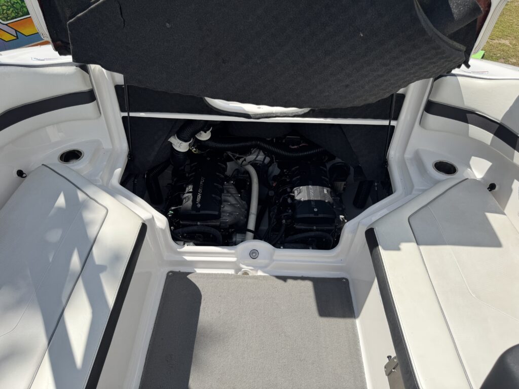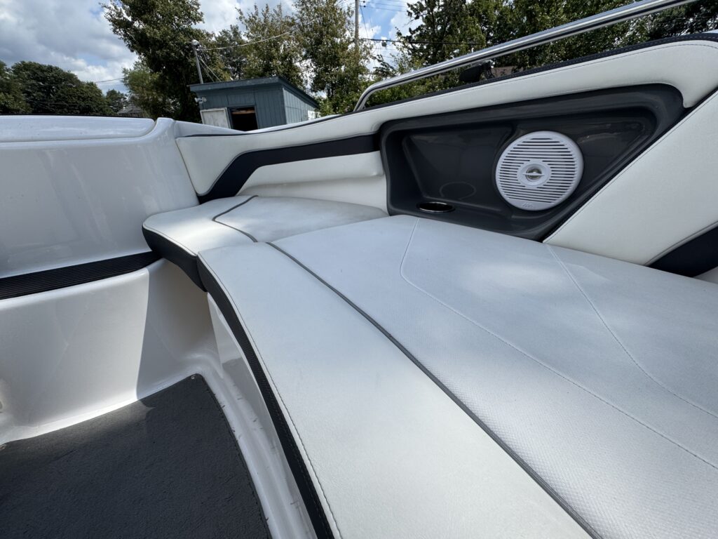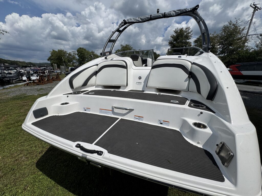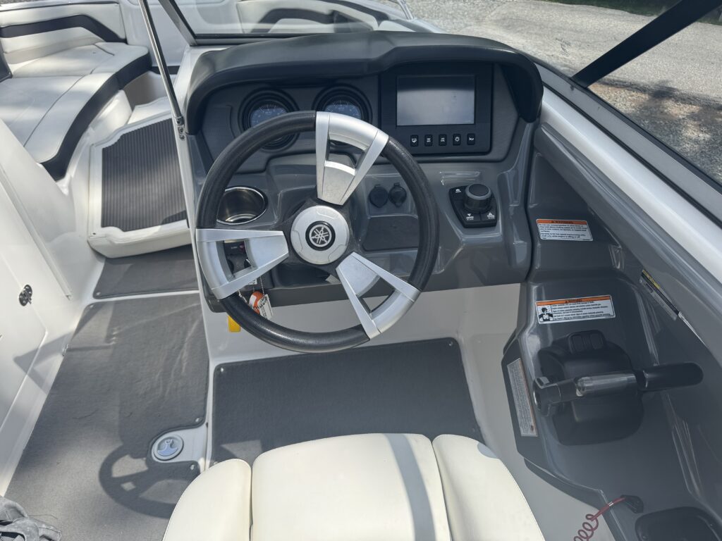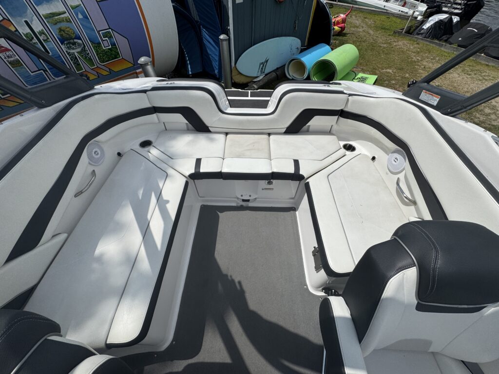 Powered by twin Yamaha engines with approximately 170 hours each, this boat offers reliable performance and plenty of power for cruising, watersports, and family fun.
