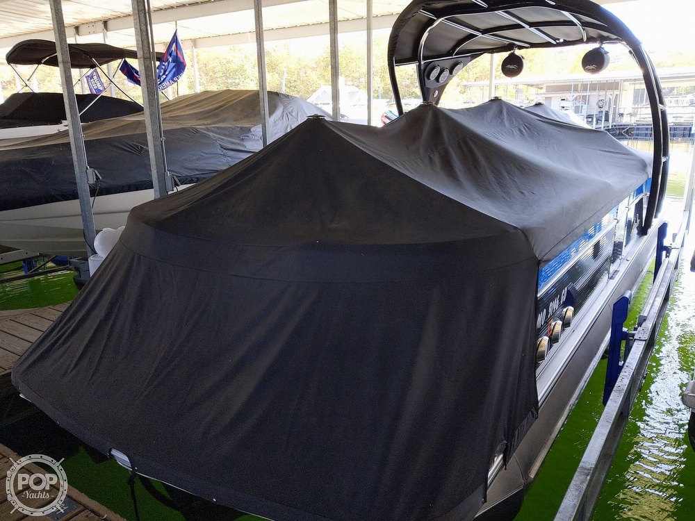 Like New 2016 Avalon Windjammer Tritoon! Pristine Condition with low hours! Twin Captain's Chairs, Hard Top, and Custom Sound System!
