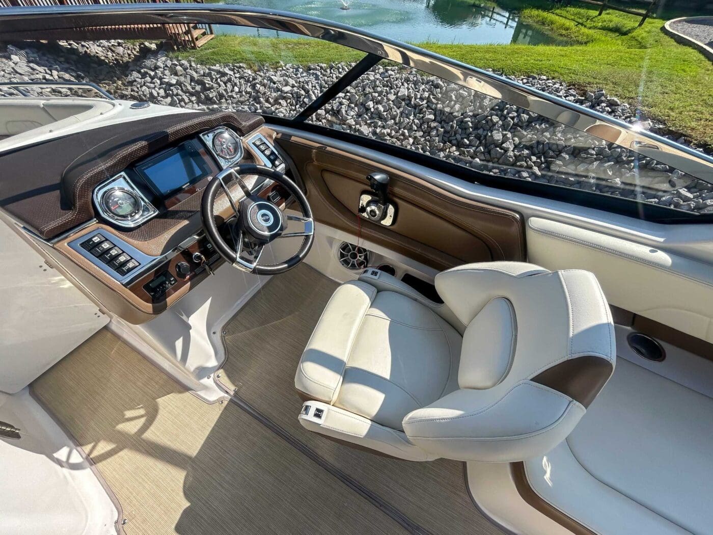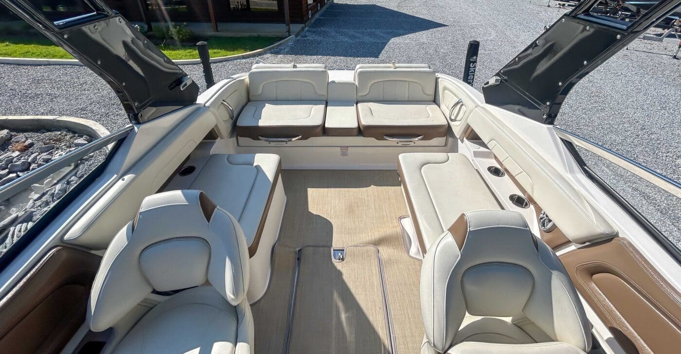 • Premium Package Includes: Docking Lights, Pull Up Cleats for Swim Platform (2), Premium Bucket Seats, Transom Stereo Remote, Leather Steering Wheel, Transom Tilt Switch, Air Pump, Bow Scuff Plate