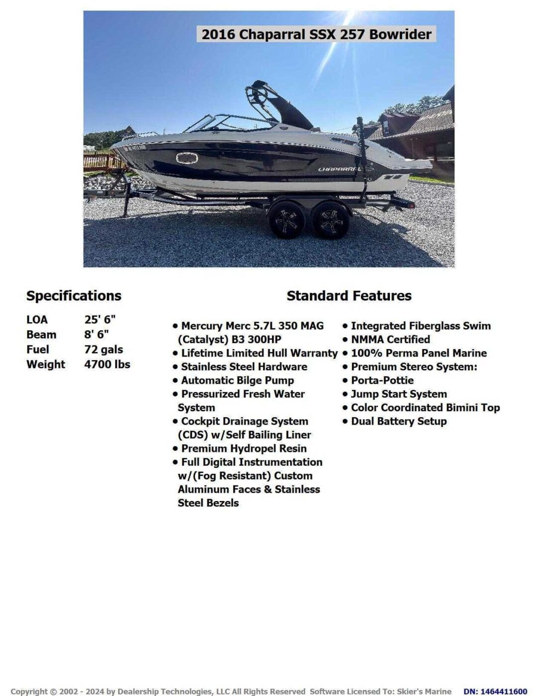 2016 Chaparral SSX 257 Bowrider (Used) #C06524BT