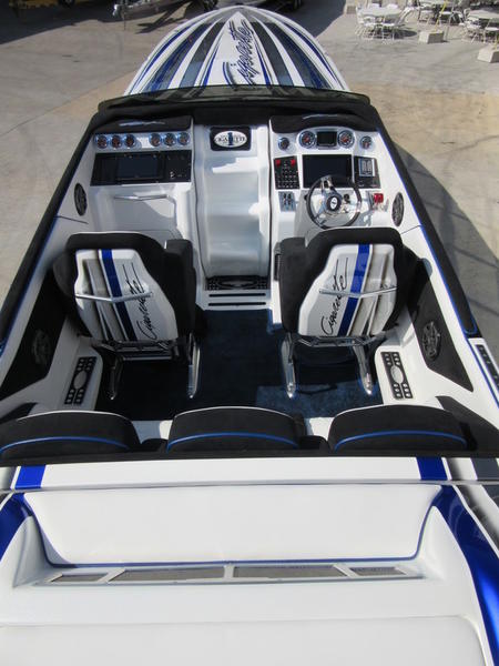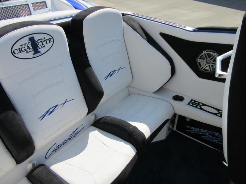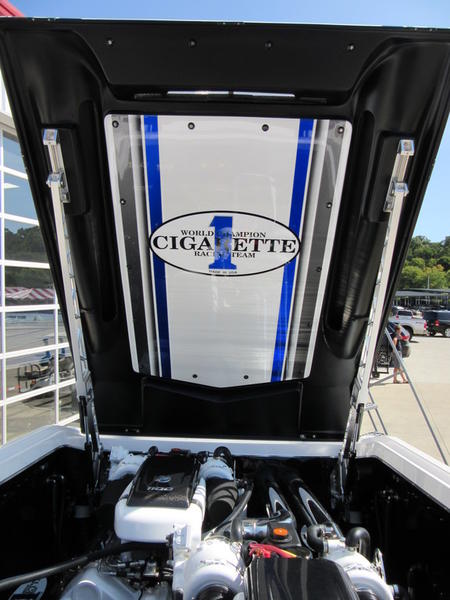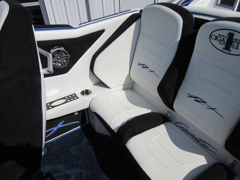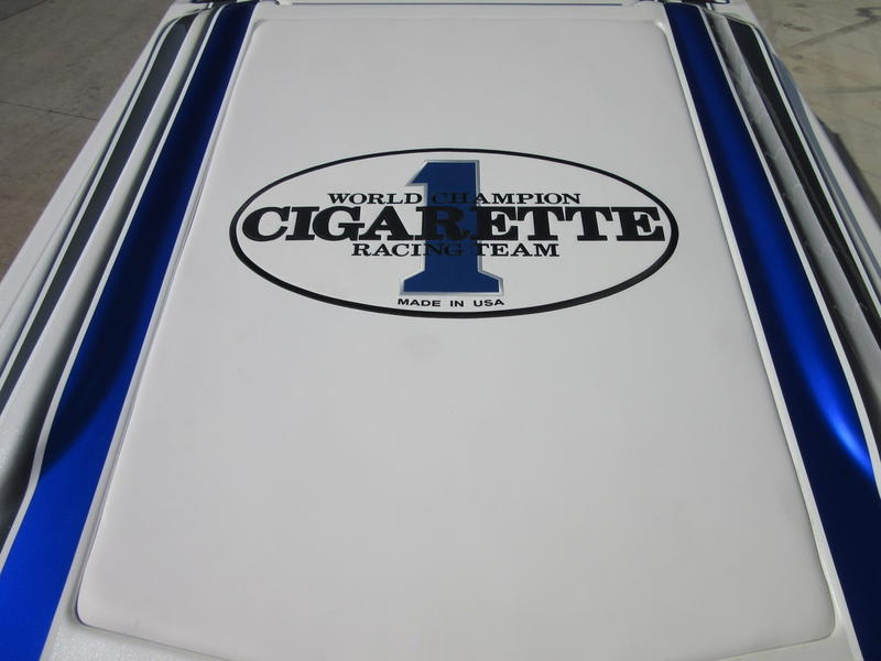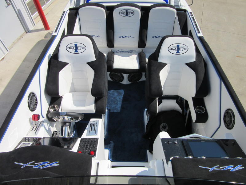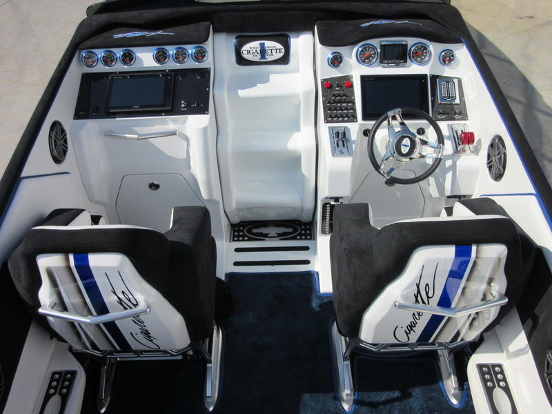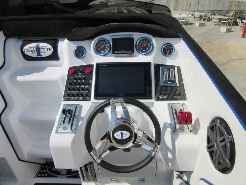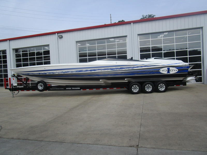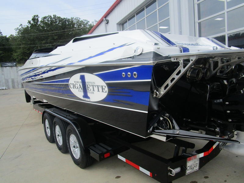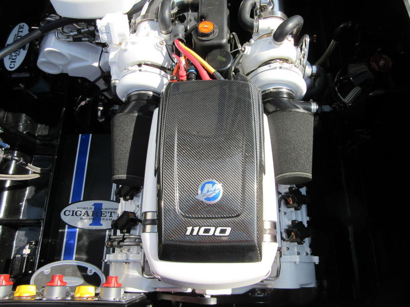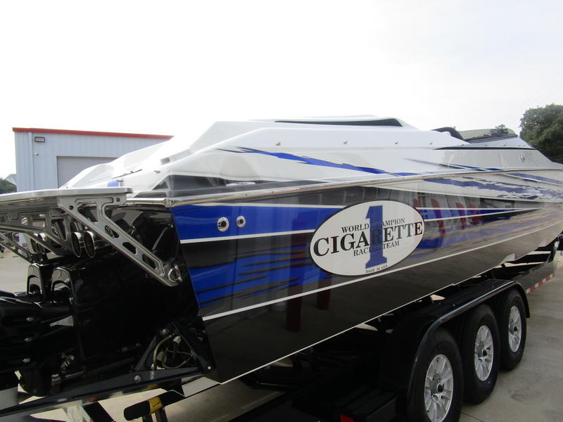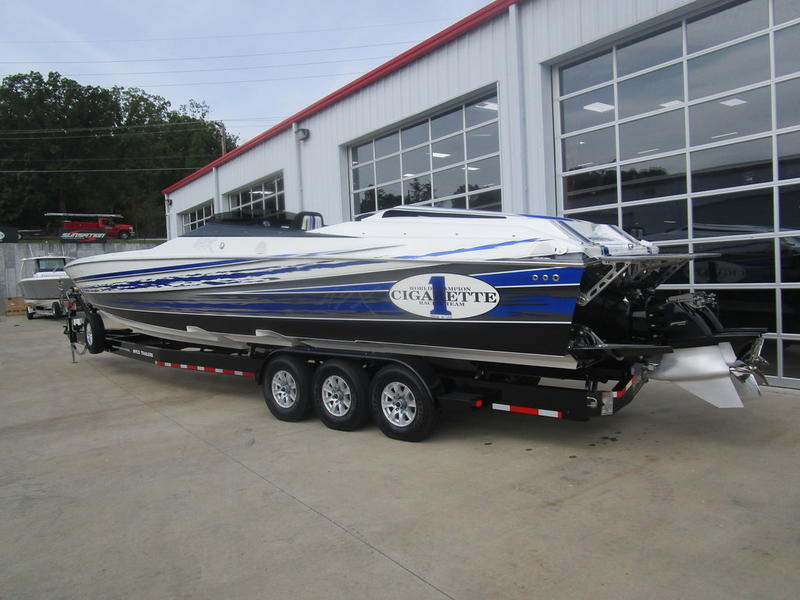 2016 Cigarette Racing 42X powered by twin Mercury Racing QC4V1100 Twin Turbo with 124 hours, #6 dry sump sterndrives, Mercury Racing CNC props, 380 Kplanes, sea strainers, Livorsi gauges, GPS speedometer, Livorsi DTS(Digital Throttle/Shift) controls, LED indicators, (2) Garmin GPSmap 7612, Smartcraft Vesselview, carbon fiber dash panesl, Fusion/JL Audio sound system, electric bolsters, shorepower, battery charger, cockpit carpet, cockpit cover, and New Myco custom trailer included.