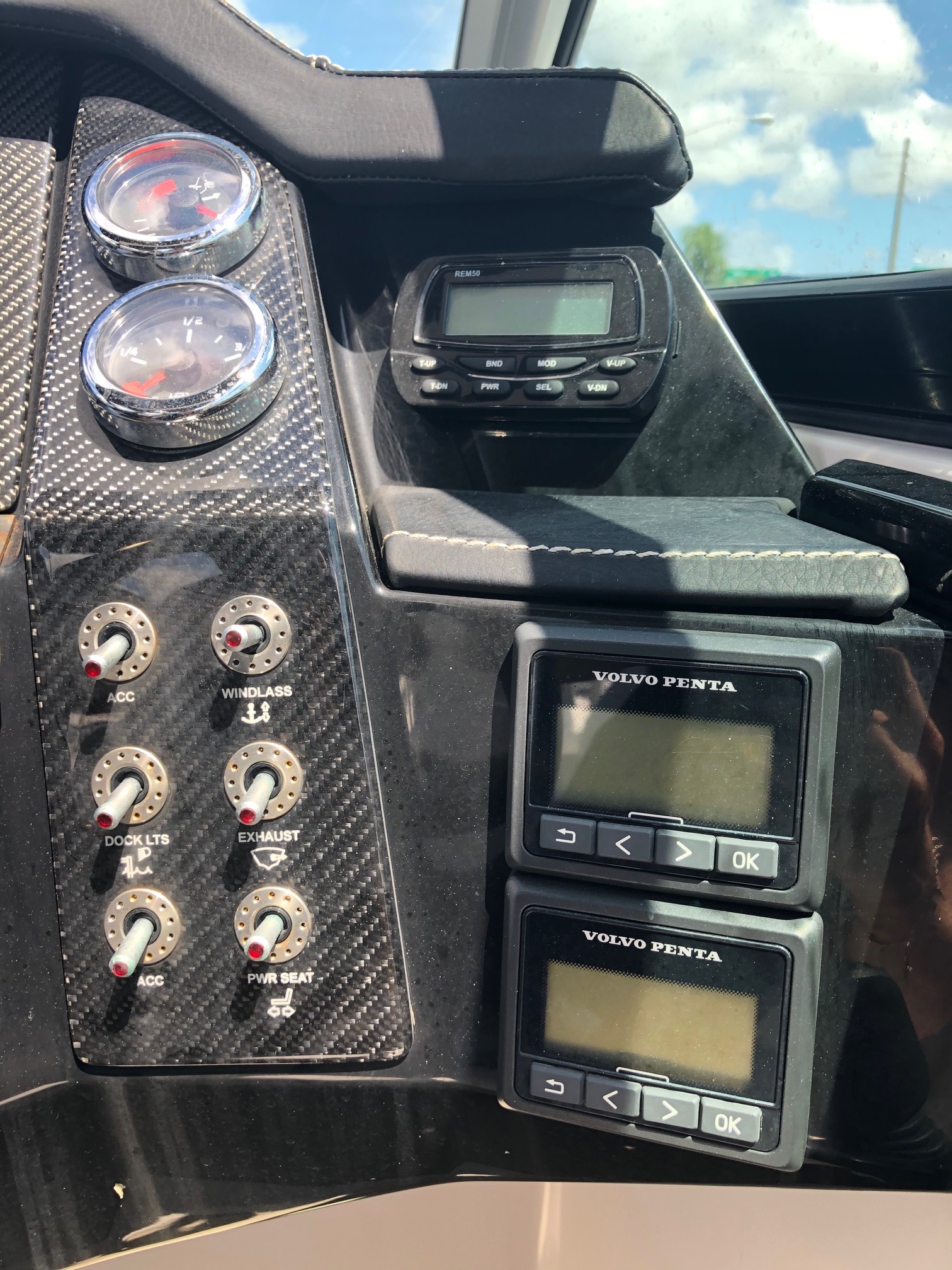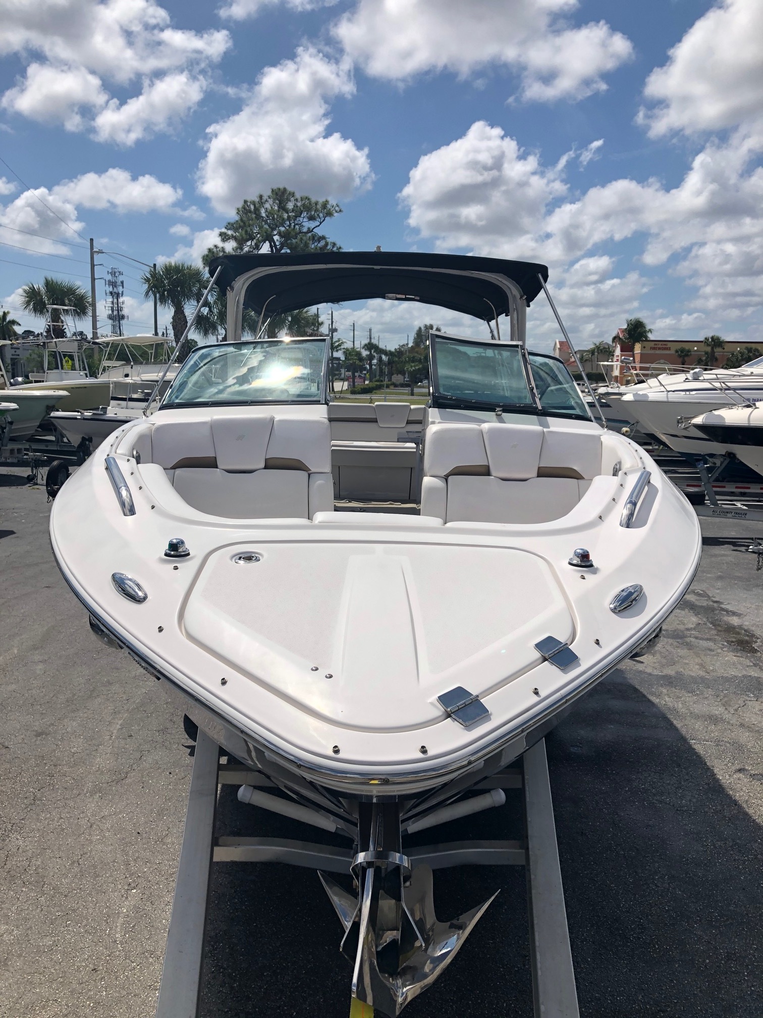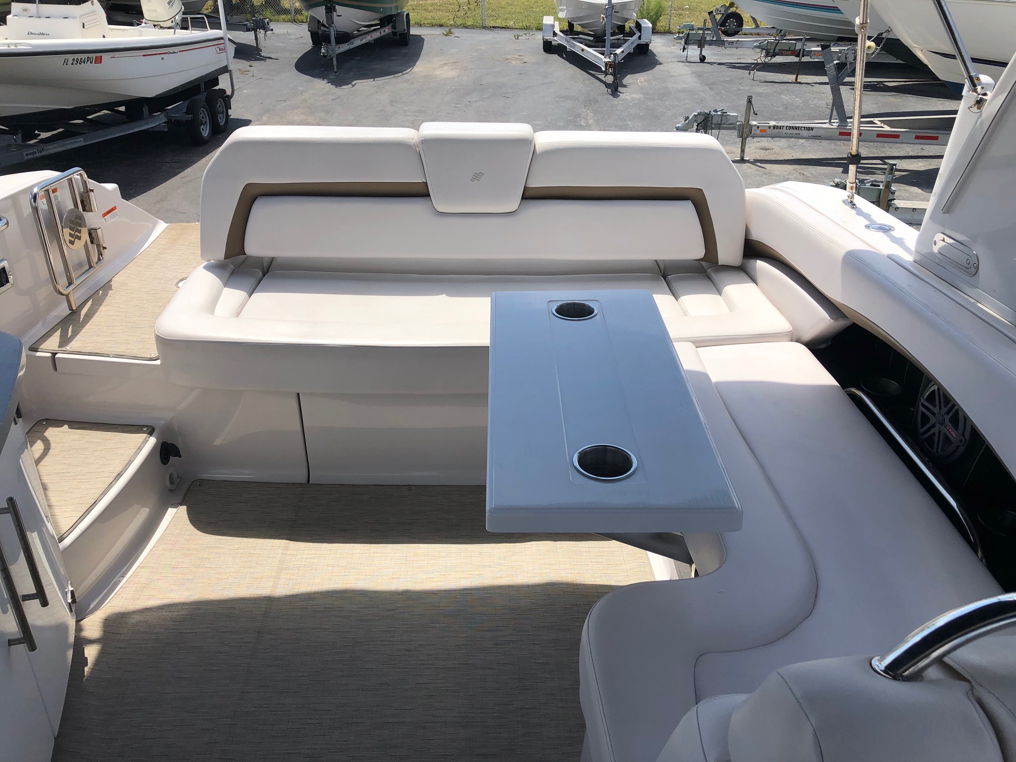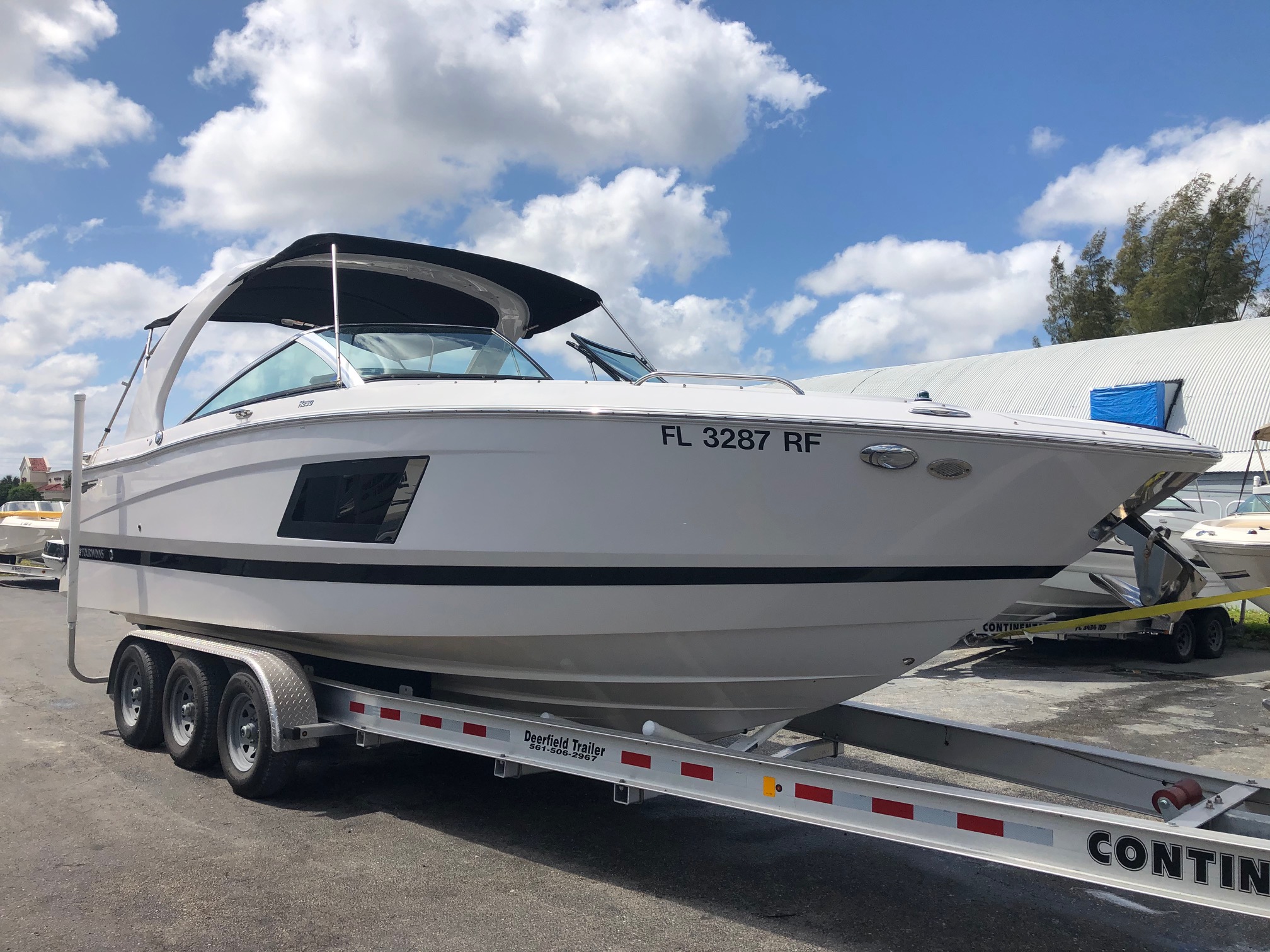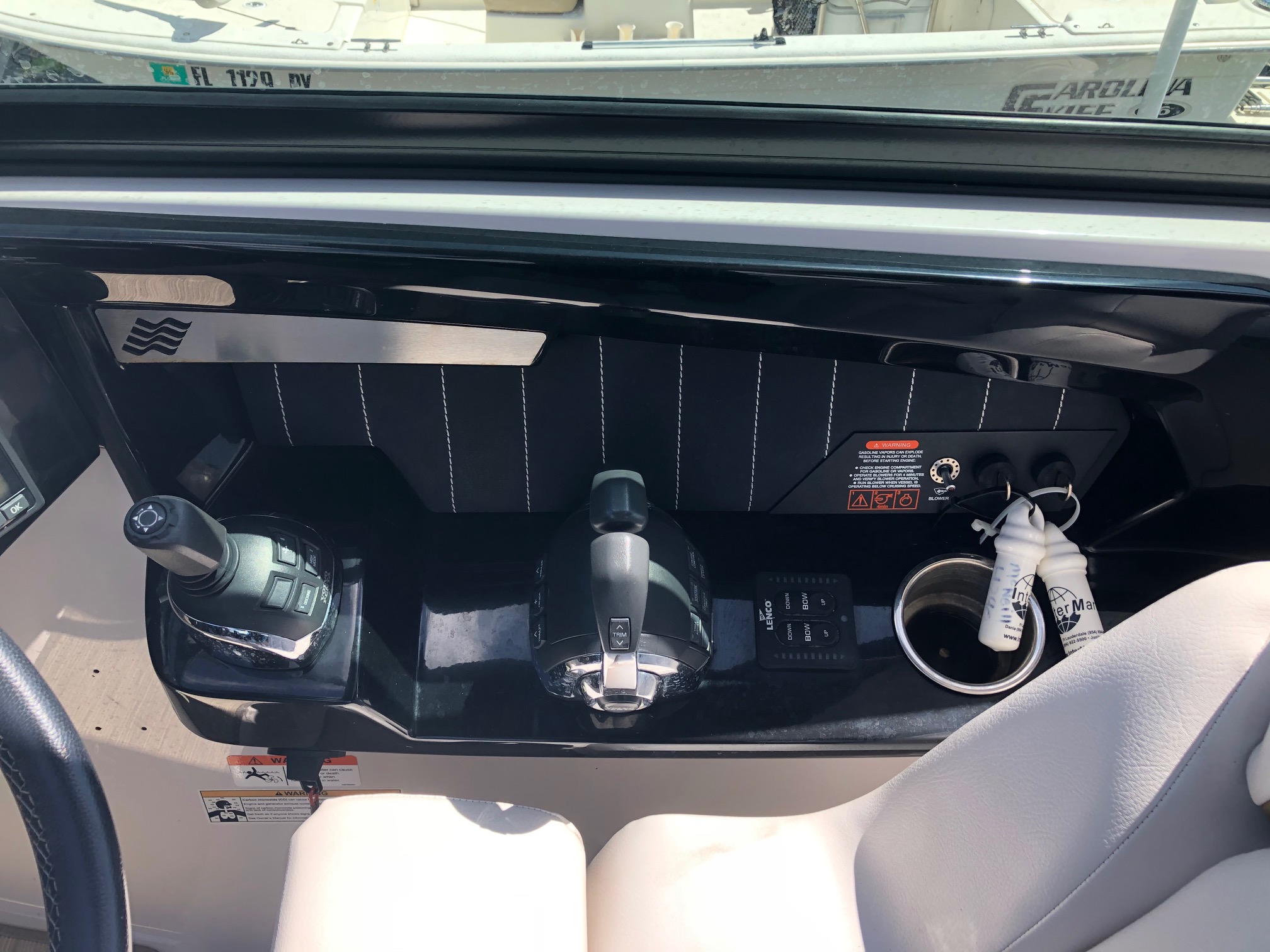 This 2016 Four Winns H290 is equipped with twin Volvo V6 240 hp motors (219 & 217 hours), pictured TRAILER IS NOT INCLUDED. This boat is loaded with options including a flush mounted Garmin GPSmaps 7607 XSV, Infinity stereo with JL auido speakers, Volvo joystick control, digital Volvo Penta gauges, windlass anchor, marine toilet with macerator, radar arch with bimini tops, deck fridge, under deck cooler storage with cooler, battery charger, fresh water shower, external fresh water hook up to flush motors. Comes with filler cushions to turn bow seating area into a fill in bed or have seating. Comes with side mounted table that can be set up in the bow or cockpit area. Snap on carpet. Full snap on boat cover included.
