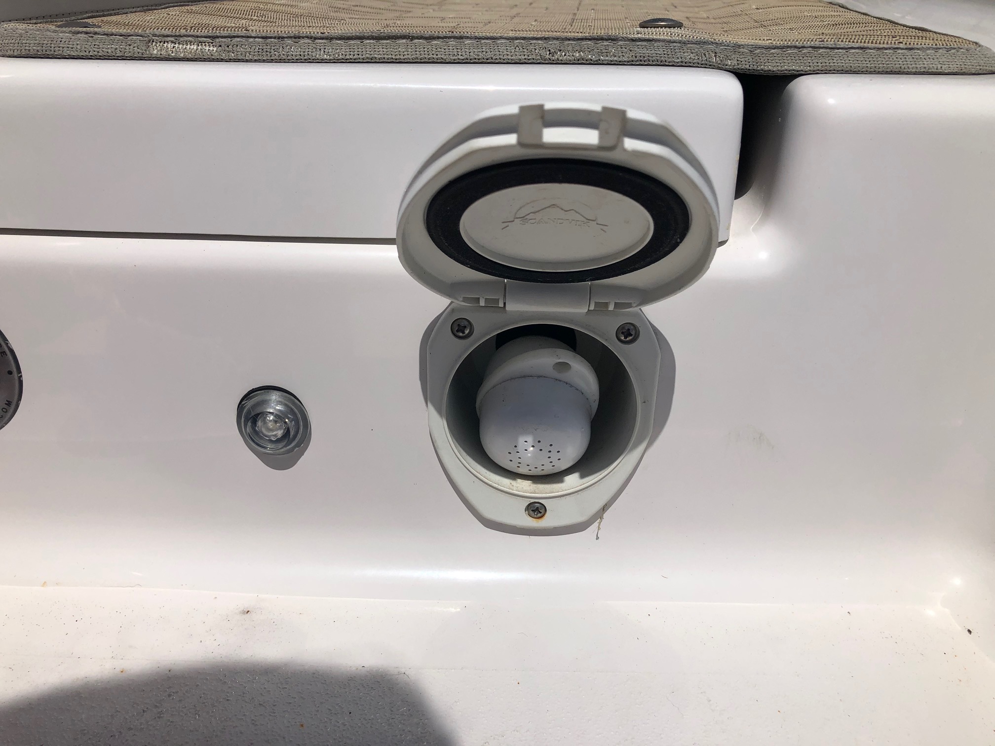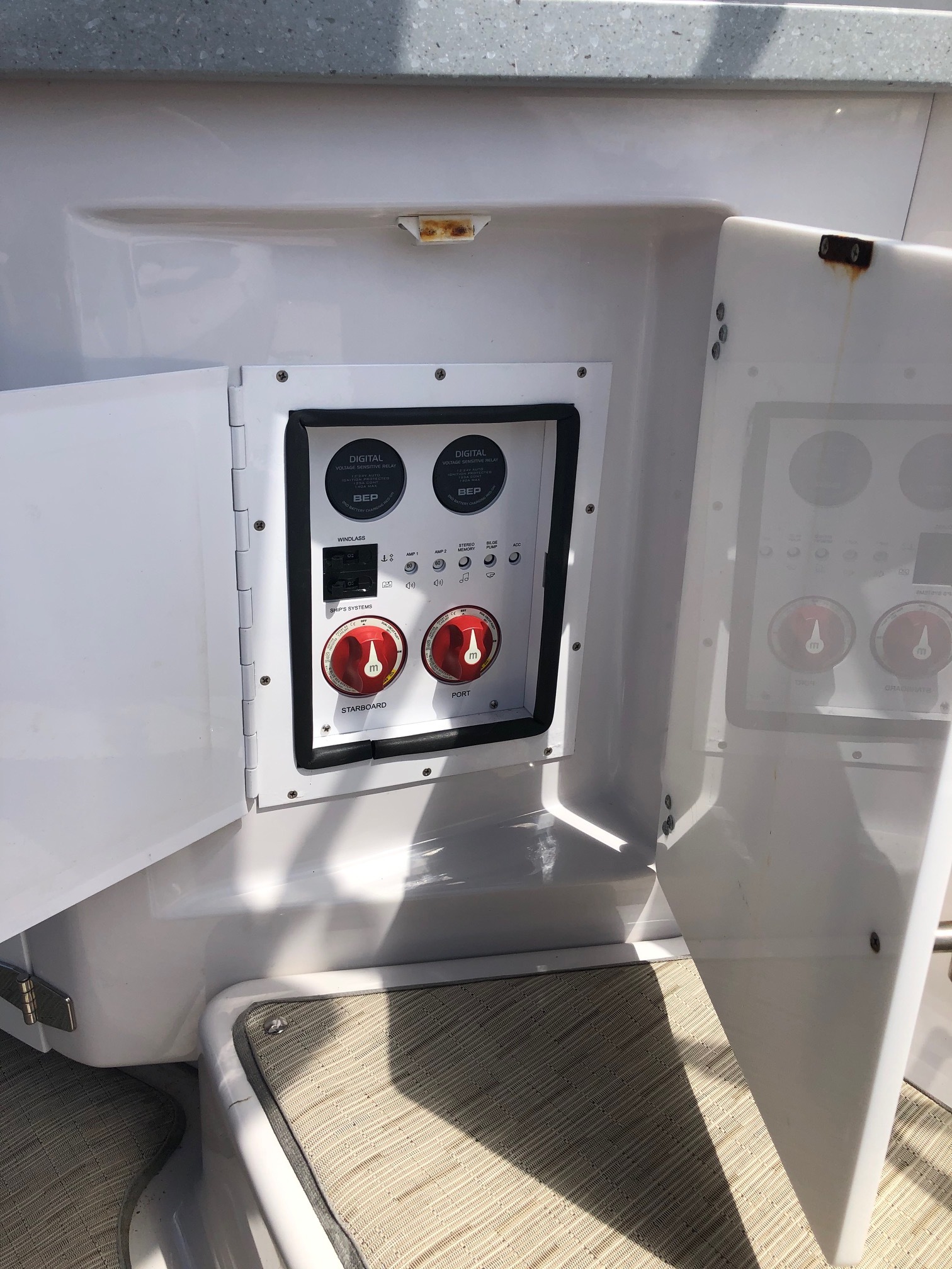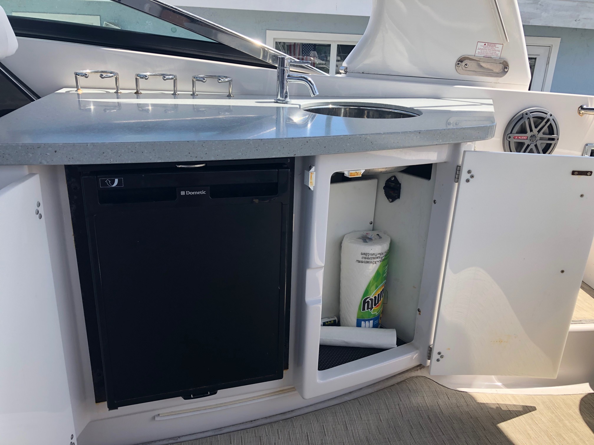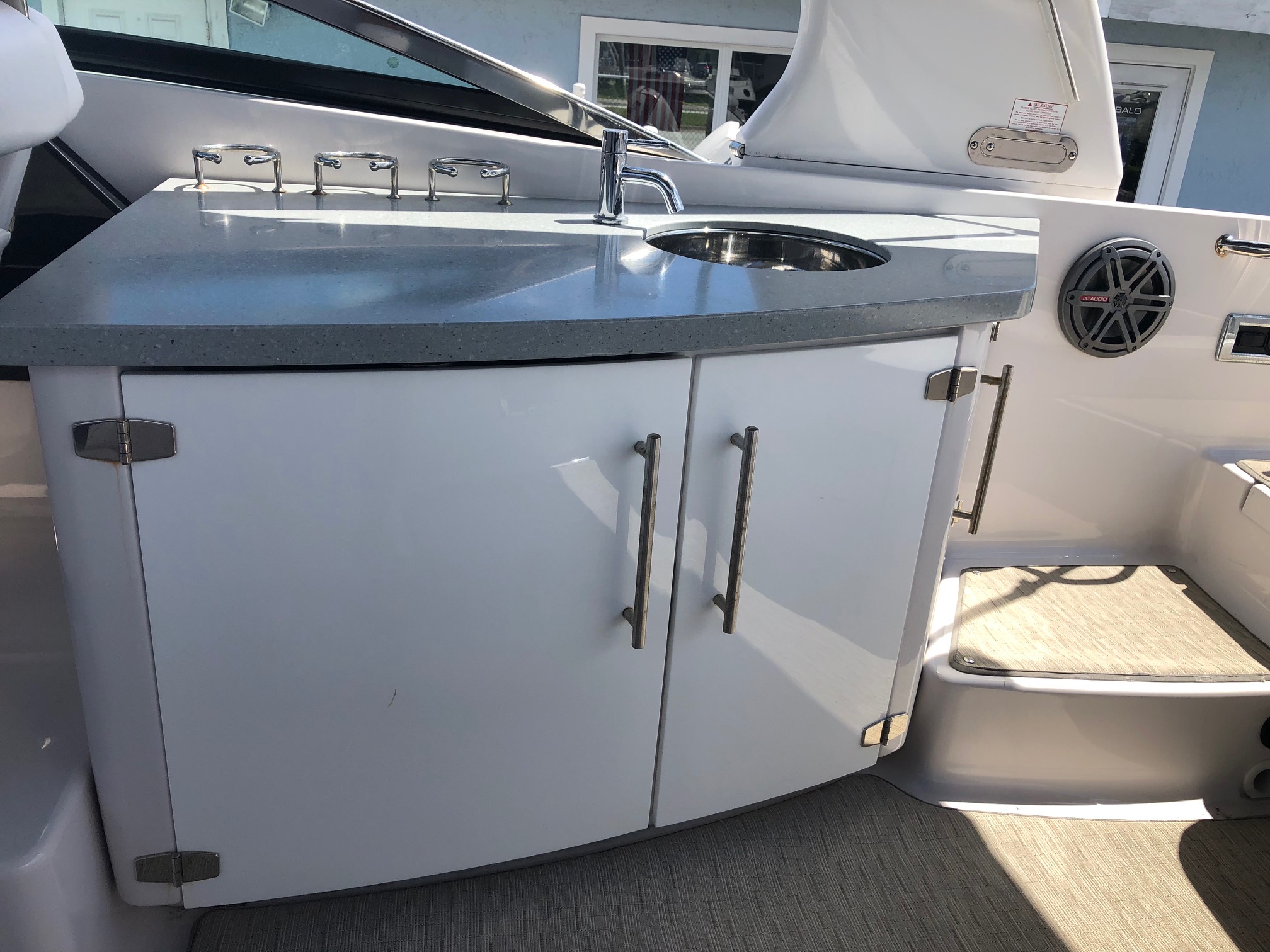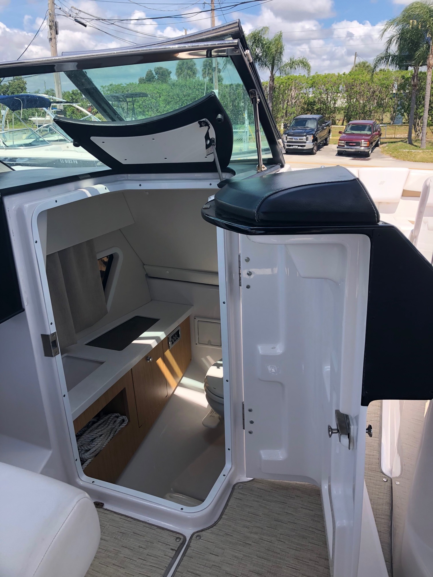 This 2016 Four Winns H290 is equipped with twin Volvo V6 240 hp motors (219 & 217 hours), pictured TRAILER IS NOT INCLUDED. This boat is loaded with options including a flush mounted Garmin GPSmaps 7607 XSV, Infinity stereo with JL auido speakers, Volvo joystick control, digital Volvo Penta gauges, windlass anchor, marine toilet with macerator, radar arch with bimini tops, deck fridge, under deck cooler storage with cooler, battery charger, fresh water shower, external fresh water hook up to flush motors. Comes with filler cushions to turn bow seating area into a fill in bed or have seating. Comes with side mounted table that can be set up in the bow or cockpit area. Snap on carpet. Full snap on boat cover included.
