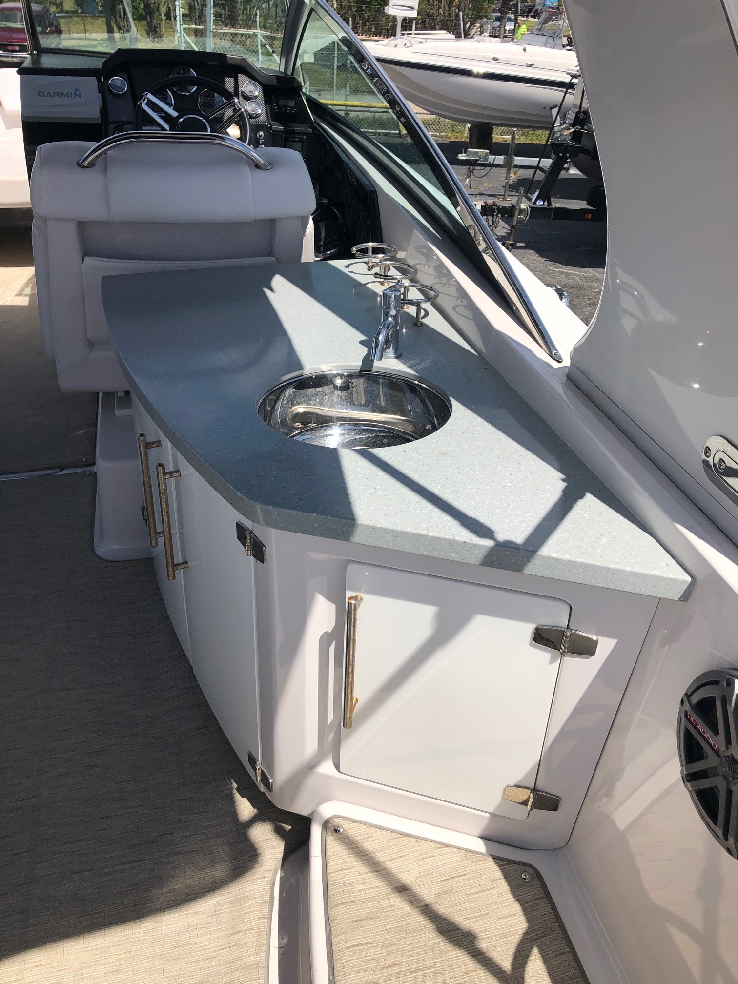 Step aboard pure luxury wrapped in a sport boat package. From the Four Winns exclusive chaise lounge-style seating with adjustable headrests in the over-sized open bow, to the low profile swim platform behind a fully functional aft seating area, everything in between is carefully engineered to satisfy everyone on board.