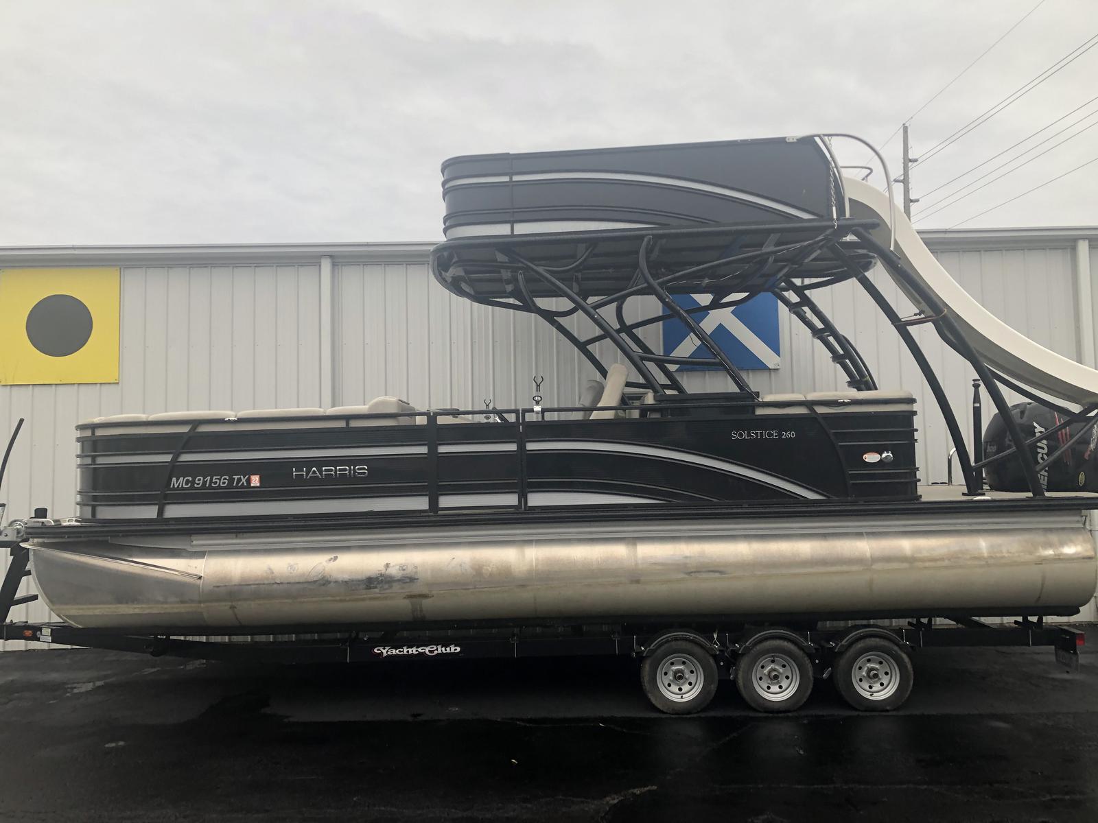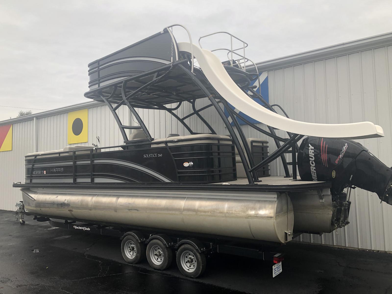 2016 Harris Solstice 260 Rec Deck with Mercury 300 Verado Pro. This boat is loaded with extra options and best of all it has a upper deck with slide! Trailer pictured is not included. You will not find another boat like this at this price! Call or come by the Wilson Marine Oakland location to view the boat today! Max HP: 58 gal. (219.55 L)