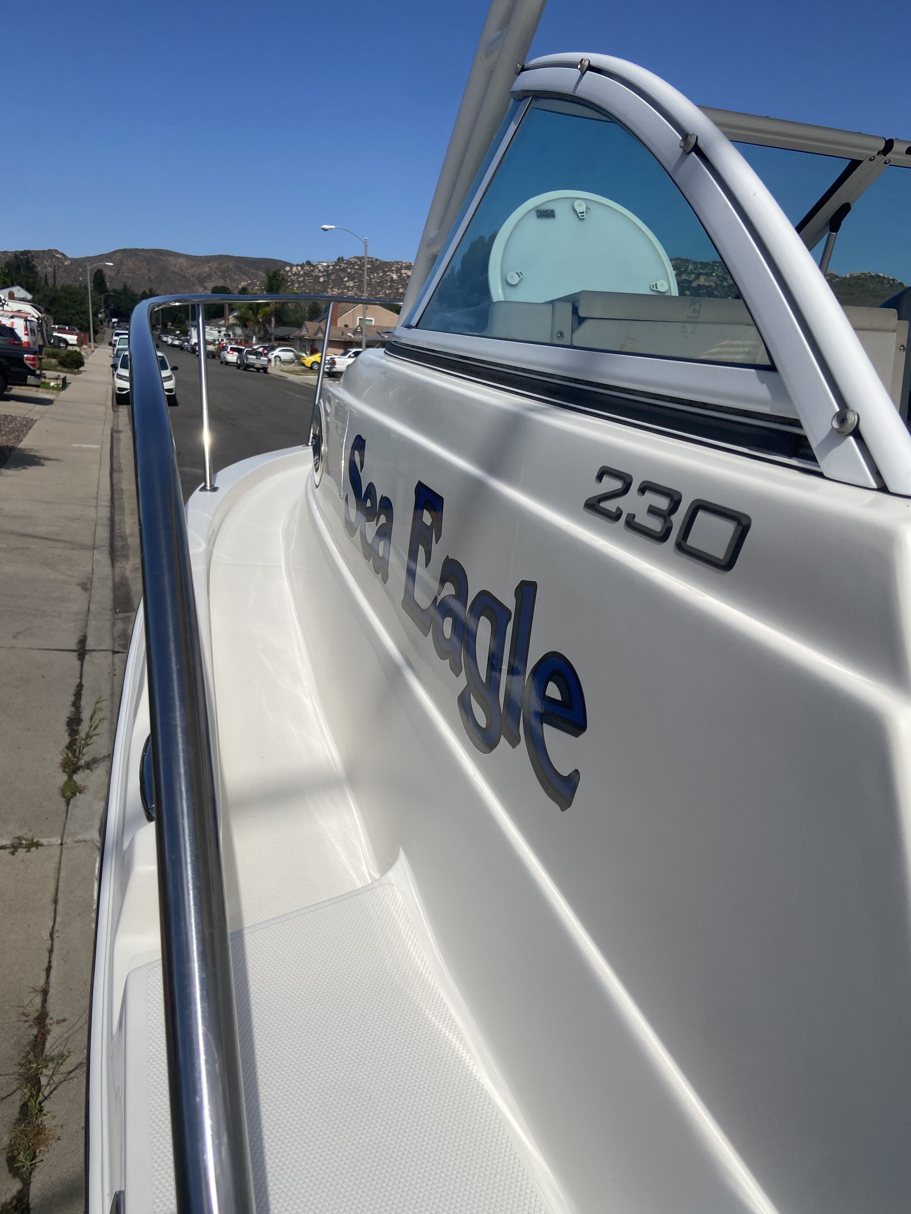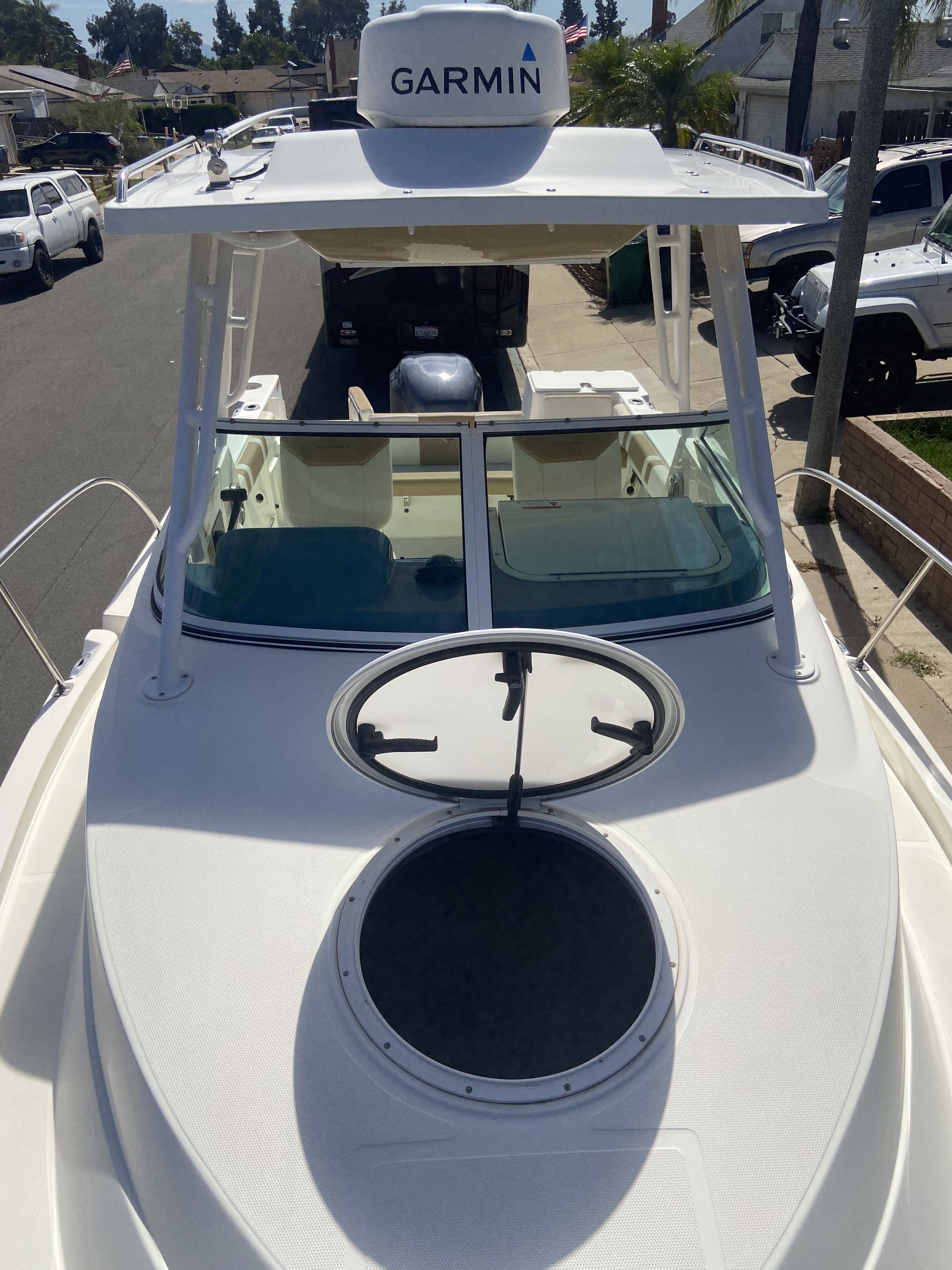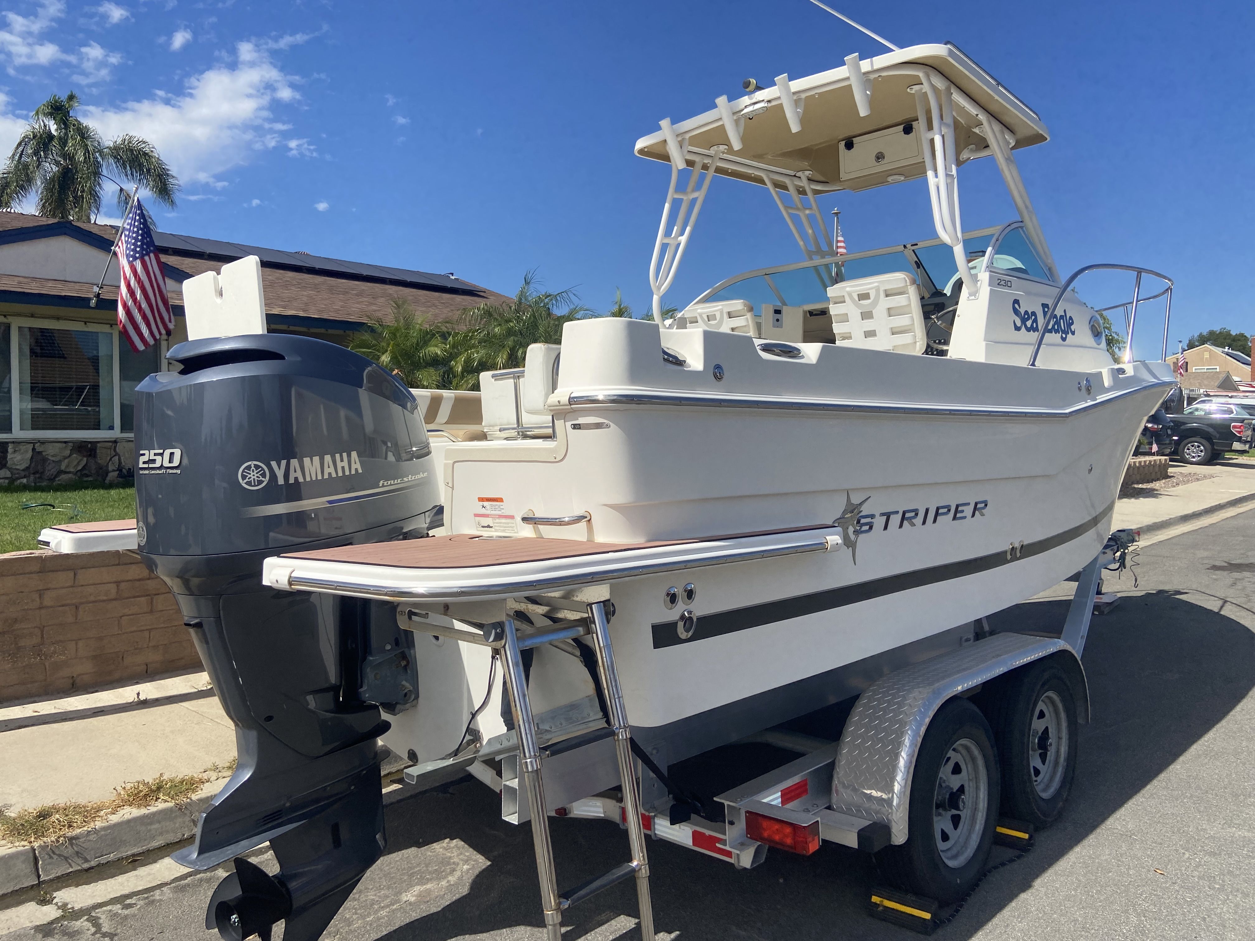The moment you step aboard this 23-foot walk-around fishing boat, you'll think to yourself, This is exactly the layout I need. That's because the designers are die-hard anglers first, and engineers second. The attention to fishing detail has made the 230WA immensely popular for offshore and inshore fishing on both coasts, and on the Great Lakes too. Less than 300 hours on the Yamaha OB, serviced at the 20 hour break-in and then every 100 hours thereafter. Boat runs and looks brand new! Equipped with Garmin electronics, bluetooth stereo, trim tabs, 2 live wells and fish boxes. Trailer is in flawless like new condition!
