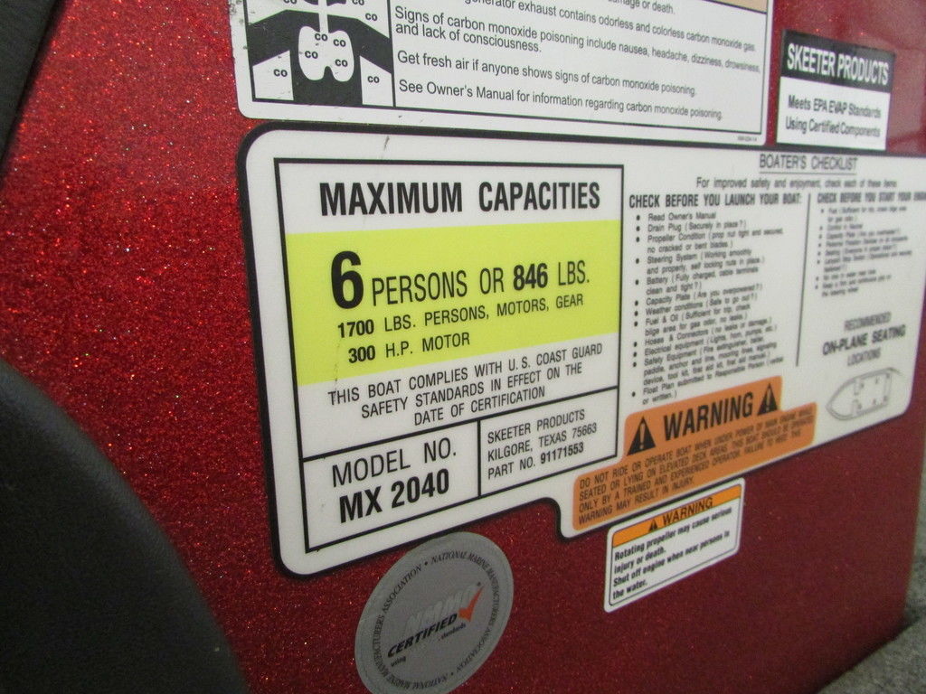 CLEAN 2016 SKEETER MX 2040! This fiberglass deep-V fishing boat is powered by a 250 hp Yamaha V-Max SHO 4-stroke outboard w/Yamaha Saltwater Series II stainless prop. Features include: strap-on travel cover, MinnKota Ultrex iPilot 112 lb thrust 36-volt trolling motor w/recessed trolling motor foot pedal, MinnKota MK440PC on-board 4-bank battery charger, bow and helm Lowrance HDS 9 GPS/fish finders, SeaStar hydraulic tilt steering, dry dock ventilation system, Hamby’s keel protector, Lenco trim tabs w/helm switch, Jensen AM/FM Bluetooth stereo w/(2) speakers, dual consoles w/full walk-thru windshield and under storage, passenger console glove box, gauges including; fuel, voltmeter, trim, tachometer, and water pressure; 12-volt power outlet, electric horn, navigation/anchor lights, circuit breakers, courtesy lights, bilge pump, lighted electronic helm switches, cockpit stainless grab rails, bow trim switch and trolling motor plug, bow traction mat, (2) large bow storage compartments, bow center rod storage box, bow starboard top deck Rod Buckle, cockpit snap-in carpet w/no-slip floor, cockpit in-floor battery storage, driver and passenger swivel fishing chairs w/sliders and WavePro pedestals, butt seat w/Springfield Power-Rise Air-Ride pedestal, (2) swivel fishing chairs w/(5) in-floor bases, beverage holders, bow and stern livewells/baitwells including; independent fill, recirculating, lights, Flow-Rite drain plugs, and insulated livewell lids; port cockpit rod storage box, cockpit starboard side storage, raised stern fishing platform w/(2) battery/storage compartments, removable stern fishing deck extension, (4) flip-up stainless mooring cleats, passenger safety handles, composite construction w/Torque Transfer System, fire extinguisher, (3) deep-cycle trolling motor batteries, marine cranking battery, 51-gallon fuel capacity, and 6 person carrying capacity. Also included is a custom tandem axle E-Z Loader bunk trailer including; surge disc brakes, torsion axles, swing tongue, LED lights, 14” aluminum wheels, matching spare tire w/mount, Tuff Coat trailer finish, walk-up bow stand, diamond plate fender steps, Fulton swivel jack, Fulton winch, bearing buddies, and Boat Buckle ratcheting tie-down straps. The boat package is in excellent overall condition with minimal wear and has 587 engine hours (see pics). The trailer tires are worn and could be replaced. Trades will be considered and delivery is available. Competitive financing rates and terms are also available. Approximate payment of $383/mo. w/20% down for 180 mo. (WAC). Leaders RPM is one of the largest marine and powersports dealers in the Midwest with over 70,000 sq ft of showroom, parts, and service under one roof located in Kalamazoo, MI. Price sales tax/fees and is subject to change without notice. Price includes all rebates to dealer. Contact Us with questions or to request more information.
