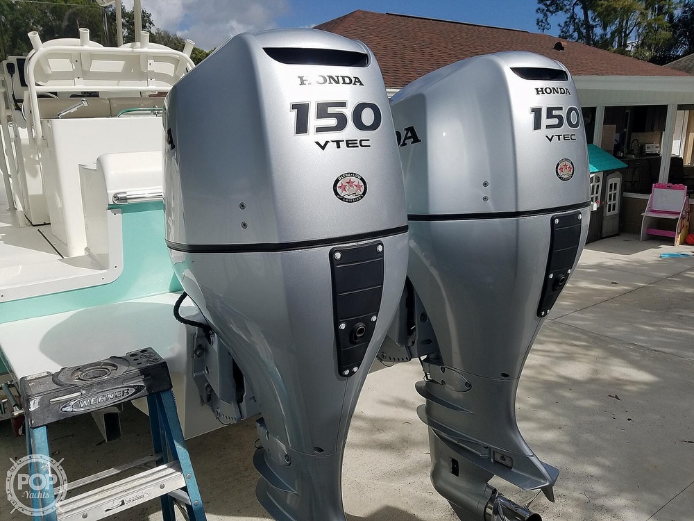 This boat is located in Tampa, Florida and is in great condition. She is also equipped with twin Honda engines that have 356 hours.