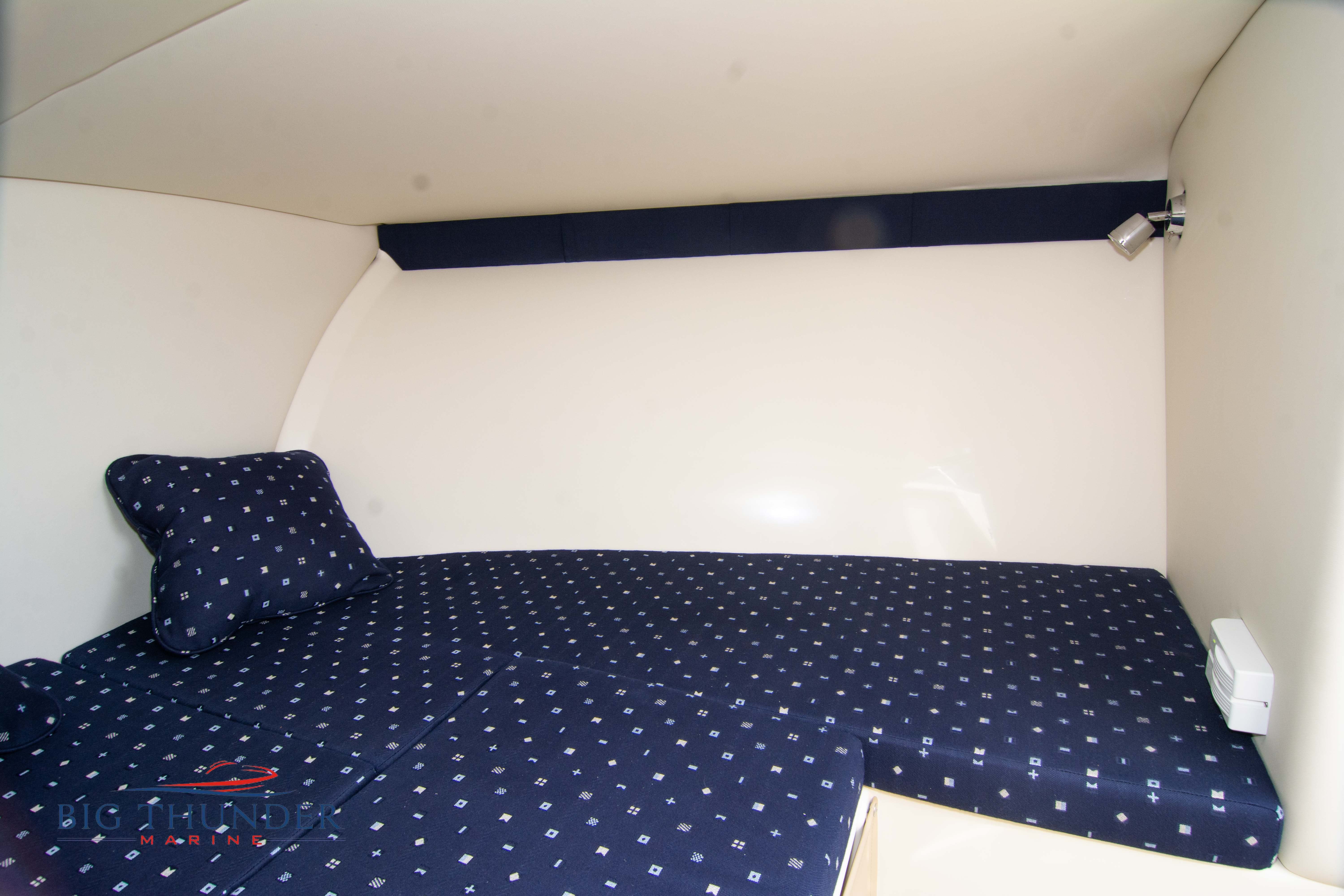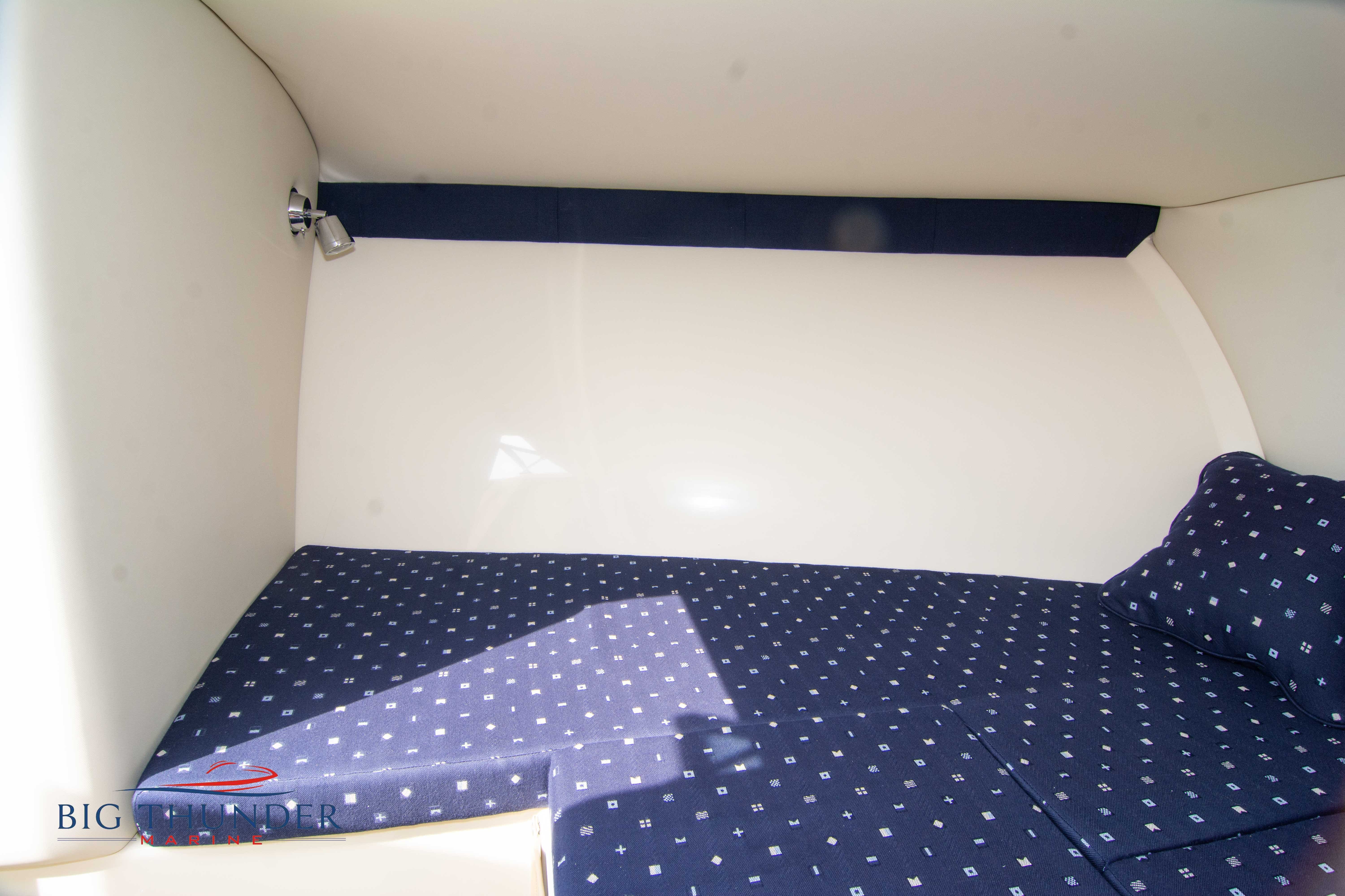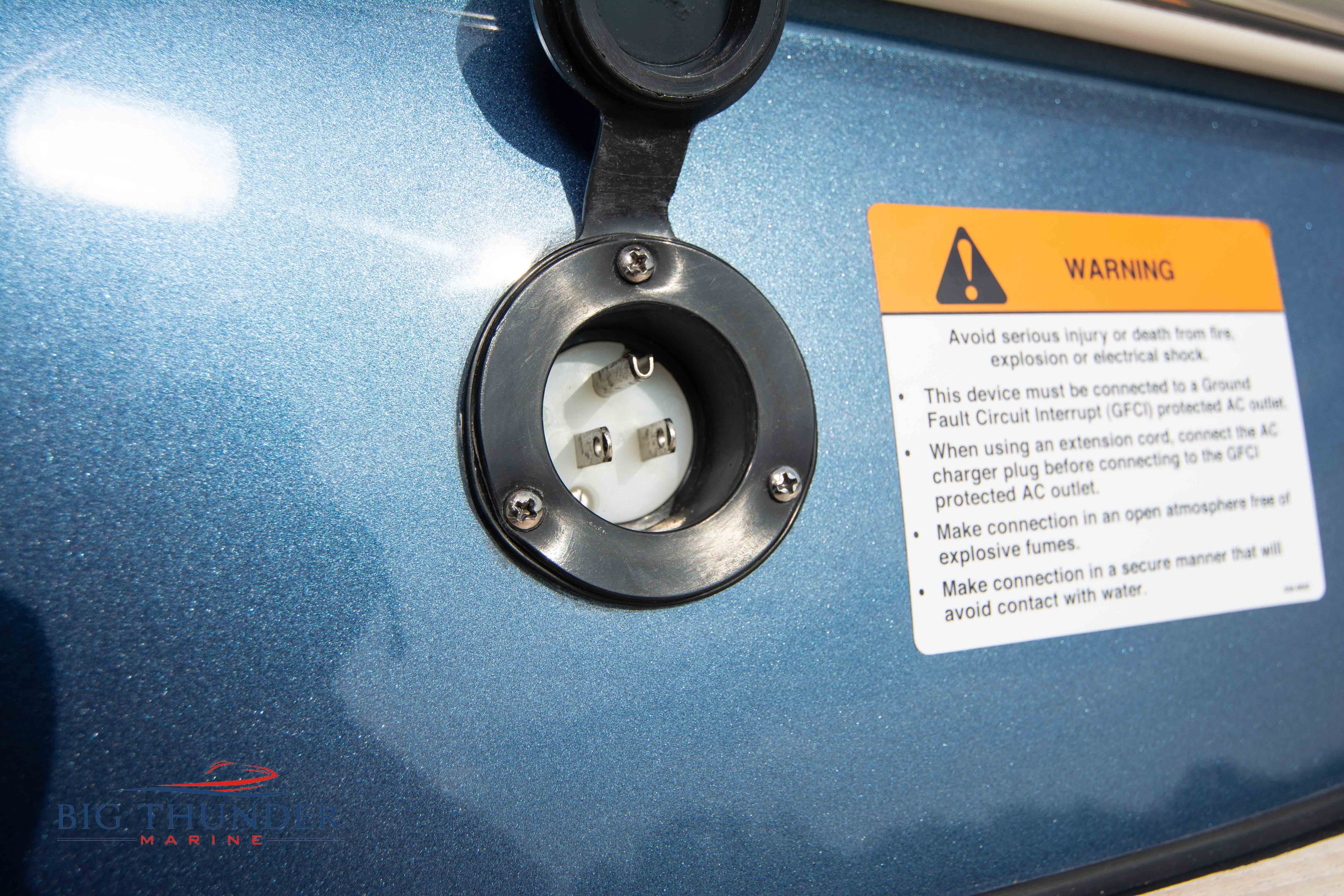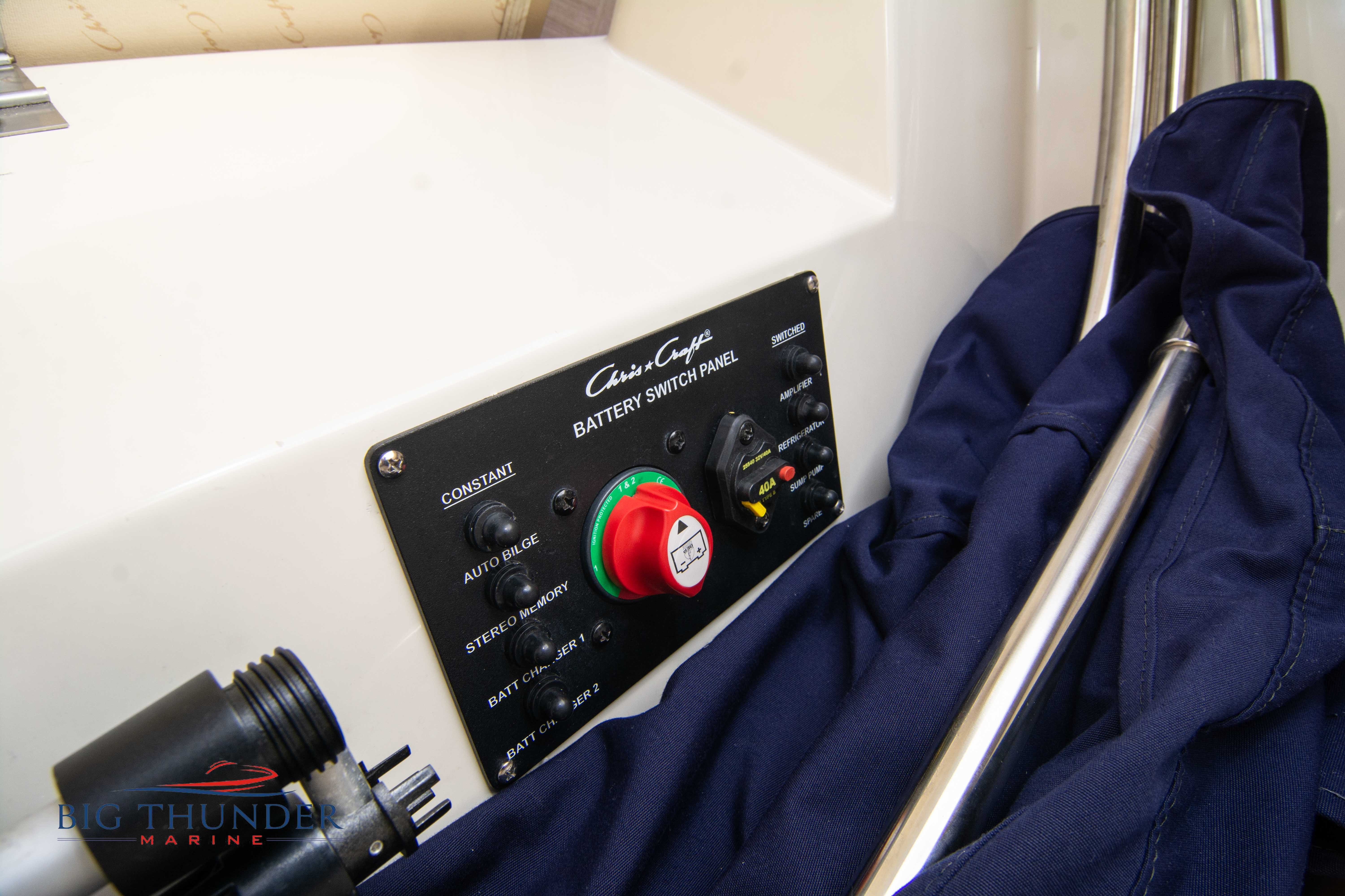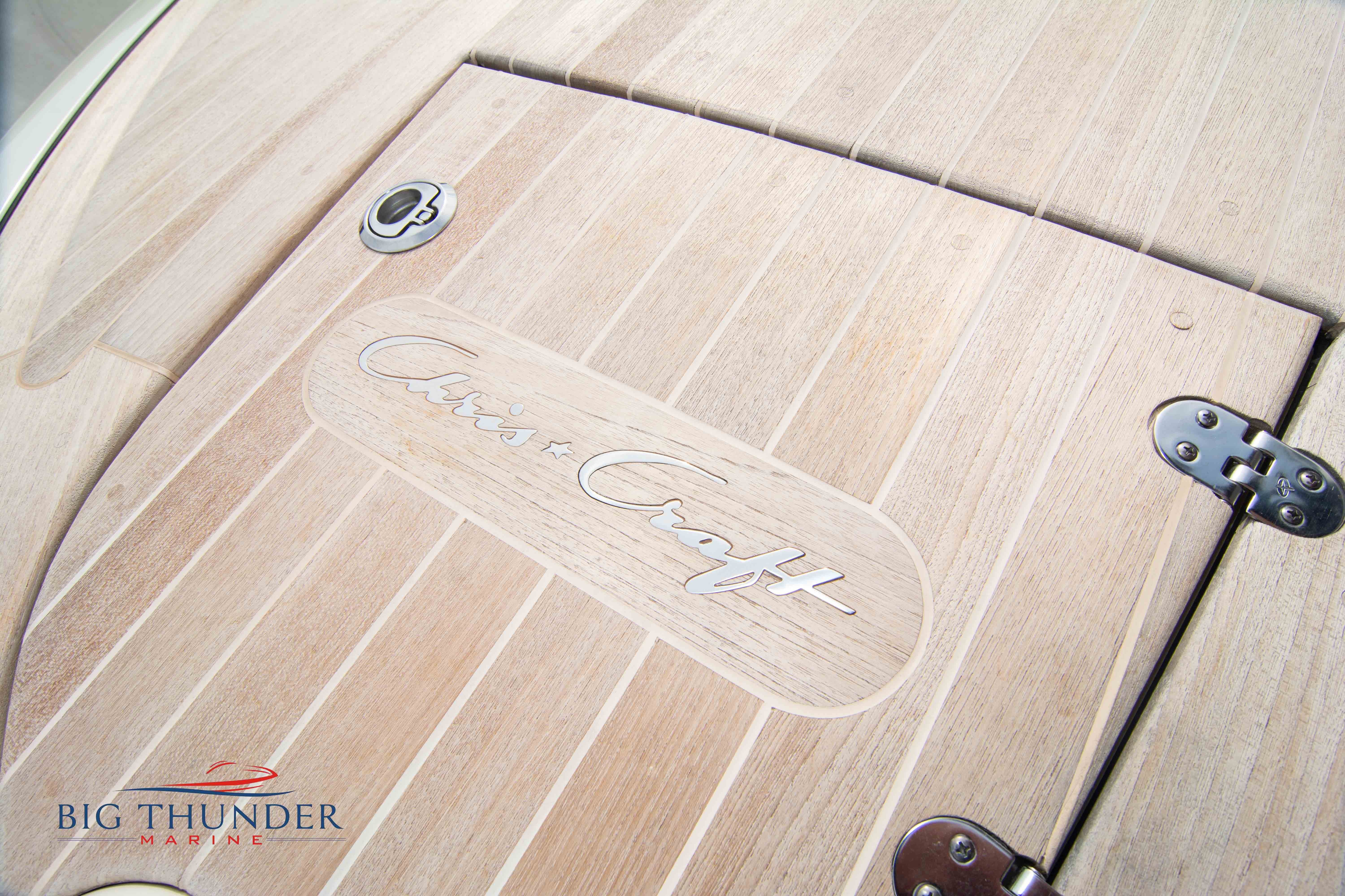 Volvo-Penta 6.0L DP FWC (33.3 hours on meter) Volvo Duoprop drive. Digital throttle & shift w/ Trim Assist. Trim tabs. Volvo engine monitoring system. Captain’s call exhaust. Auto fire extinguishing system. Shore power plug in. Dual batteries w/ switch. Transom shower. Walk-thru transom. Bimini top. Heritage teak trim pkg. Port & starboard side fold down cockpit tables. Pump out Porta Potti. Woven snap in cockpit flooring. Premium JL audio system w/ Fusion Bluetooth stereo. Interior courtesy lighting. Underwater lighting. Nav/dock lights. Speedo & tach w/ digital readouts. Volt meter, fuel gauge, trim gauge, & compass. Garmin GPSmap xs color touchscreen display/GPS. Bilge blower. Flip up bolsters. Windlass w/ line & chain. Mooring cover.